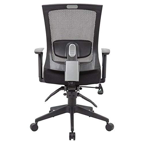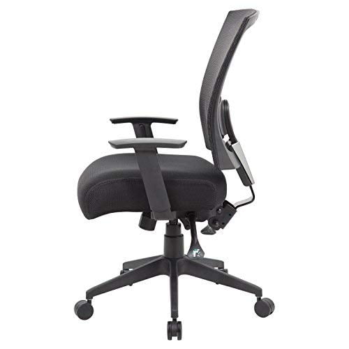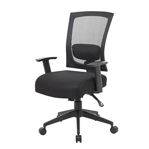 Contemporary chair upholstered in Black mesh material, which allows air to pass through, adding to long term comfort by preventing body heat and moisture build-up. Breathable 5″ mesh fabric seat. Ratchet back height adjustment. Lumbar adjustment. Adjustable height armrests. 3 paddle multi-function tilting mechanism, which allows the seat and back to be independently adjusted and locked in position. Pneumatic gas lift seat height adjustment. Adjustable tilt tension control. 25″ nylon high crown base. Hooded double wheel casters. Seat Slider included Features: Finish: Black Seat Size 19.5″W x 19″D Material: Fabric Seat Height 20.5″ – 23.5″H Breathable 5″ mesh fabric seat Ratchet back height adjustment Lumbar adjustment Adjustable height armrests Specifications: Product Dimensions: 44″H x 25″W x 26″D Product Weight: 45 lbs