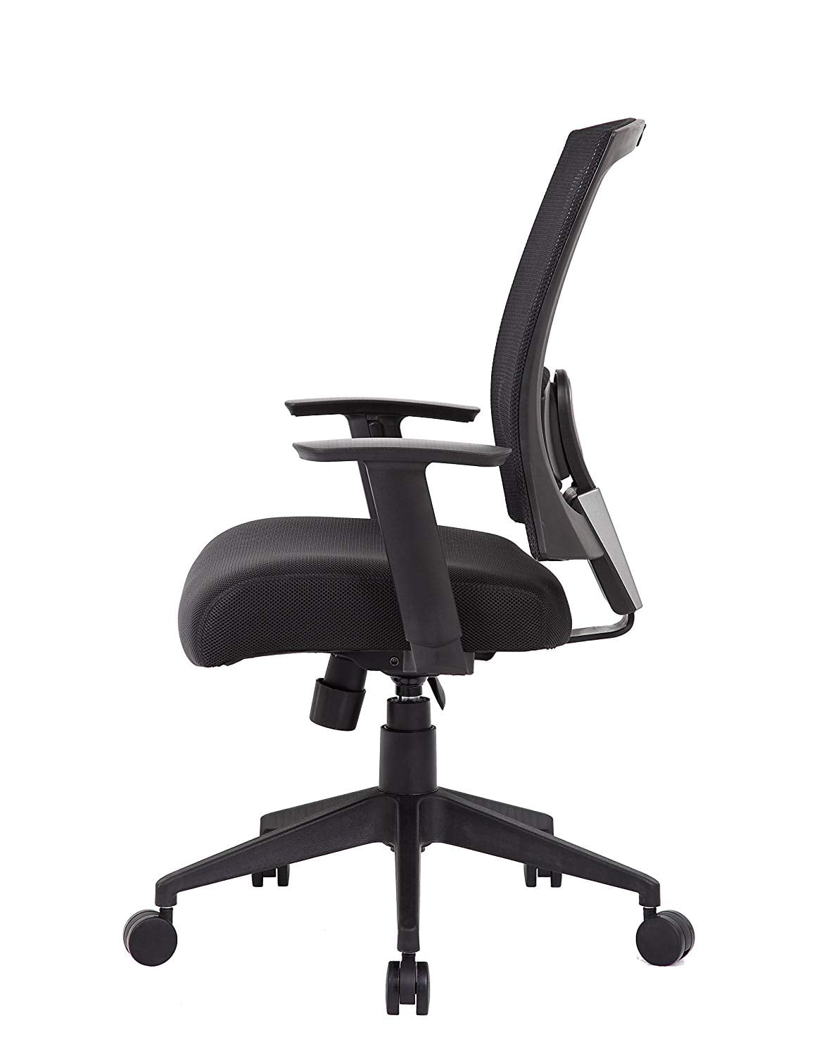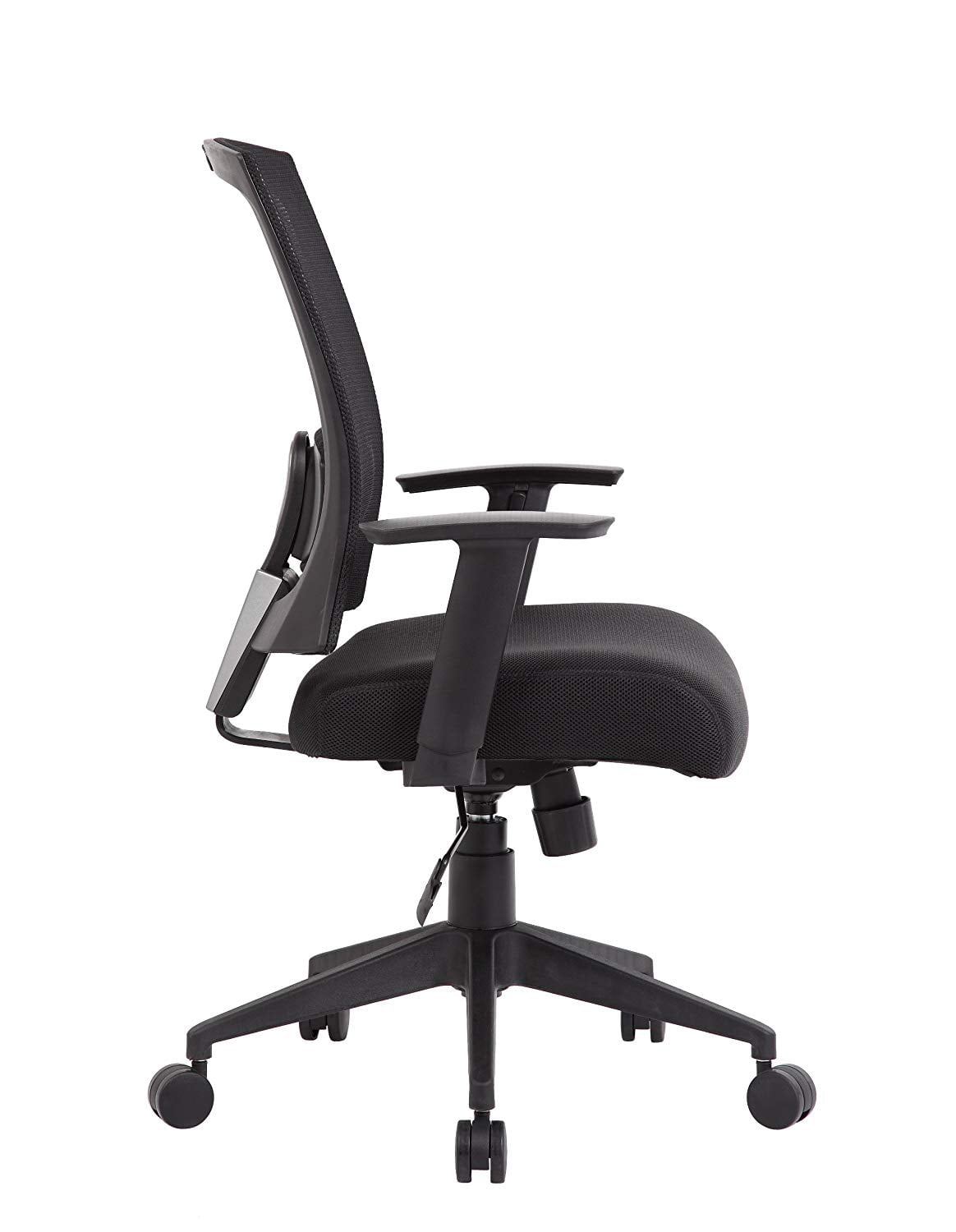 Contemporary chair upholstered in Black mesh material, which allows air to pass through, adding to long term comfort by preventing body heat and moisture build-up. Breathable mesh fabric seat. Adjustable height armrests. Spring-tilt mechanism. Pneumatic gas lift seat height adjustment. Adjustable tilt tension control. 25″ nylon high base. Hooded double wheel casters. Features: Contemporary chair upholstered in Black mesh material Seat Size: 19″ W x 19″ D Breathable mesh fabric seat WT. Capacity: 250 lbs. Adjustable height armrests Spring-tilt mechanism Pneumatic gas lift seat height adjustment Adjustable tilt tension control 25″ nylon high base Hooded double wheel casters Specifications: Product Dimensions: 38″H x 25″W x 27″D Product Weight: 30lbs Seat Height: 19″ – 22″ H Arm Height: 25″- 32″ H