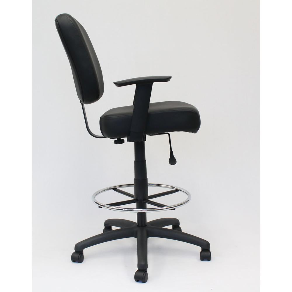 Hard hat required. Not quite, but sometimes jobs and life calls for some extra support. Whether you find yourself spending hours at a computer desk or a kitchen counter, in the shop or the studio, the Boss heavy duty drafting stool can help. Specifically constructed with increased foam cushioning on a larger proportioned seat, the adjustable height stool from Boss guarantees comfort for your biggest jobs. Upholstered in care soft plus vinyl, which has the look and feel of leather but is low maintenance and breathable, it wipes clean easily and stays looking new for years. Built to stay working like new for years too, the high-capacity gas cylinder can support up to 250 lbs and enables a smooth seat height adjustment from 26.5″ – 30″ with a strong 20″ diameter removable chrome foot ring provides an optional footrest for added comfort. Supported by our widest, most stable five-star 27″ base and heavy-duty dual-caster wheels, the Boss drafting stool is designed with a sturdy framework to support users of all sizes whether rolling over concrete flooring in a garage, assisting patients or clients, or maneuvering linoleum and low-medium pile carpet at home. Features: Finish: Black Material: Vinyl, Nylon Oversized cushions Pneumatic gas lift seat height adjustment Hooded double wheel casters Large nylon base for greater stability Specifications: Product Dimensions: 43″ – 46.5″ H x 27″ W x 27″ D Product Weight: 33 lbs Seat Dimensions: 26.5″ – 30″ H x 19″ W x 19.5″ D Weight Capacity: 250 lbs