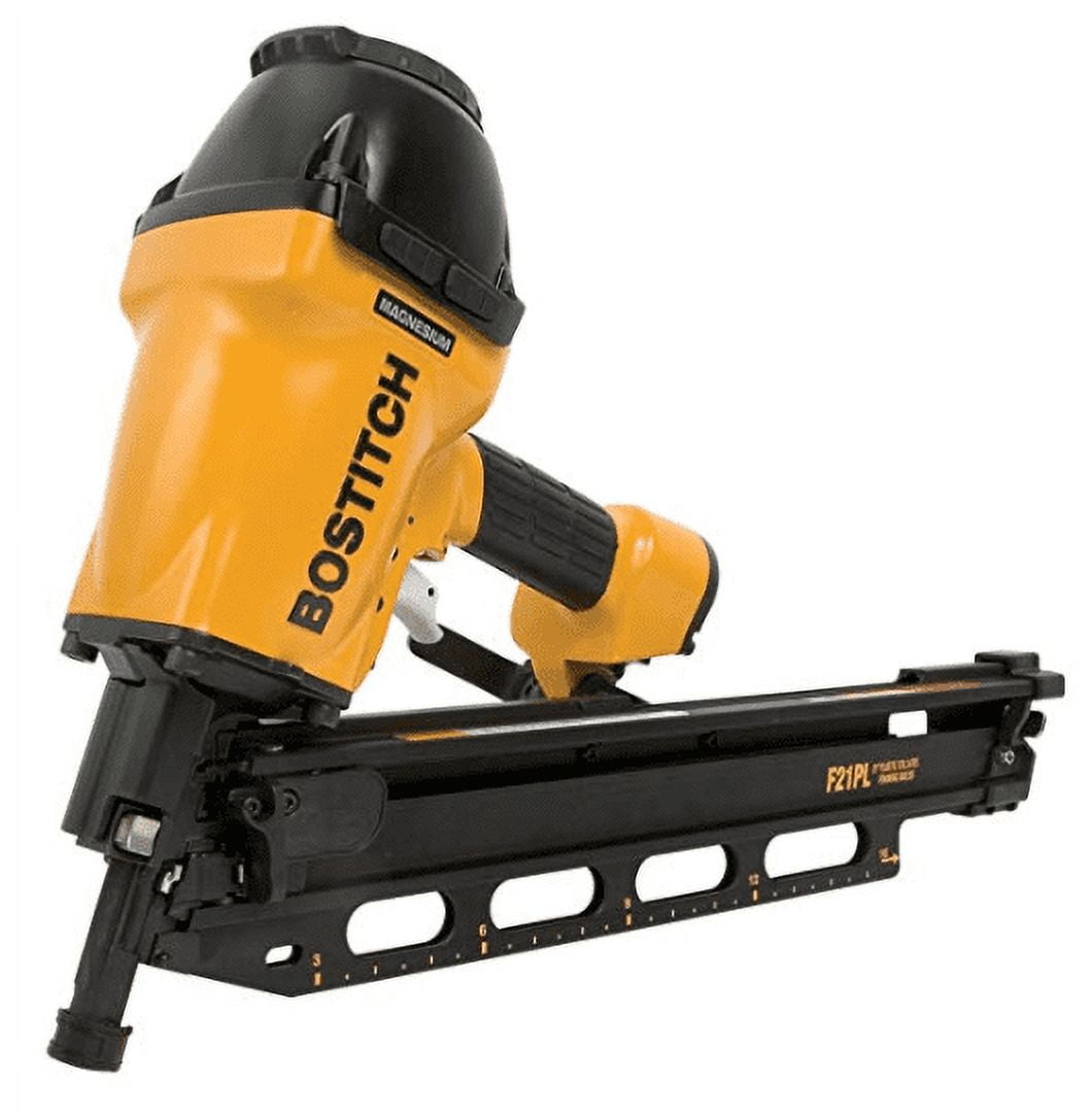 BOSTITCH F21PL 21 Degree Round Head Air Framing Nailer: Item type: air framing nailer Brand: BOSTITCH Manufacturer part number: F21PL This product is yellow in color also includes a metal nose connector. Drives plastic collated 1.5″ and 2.5″ metal connector nails (.131″ – .148″ diameter)