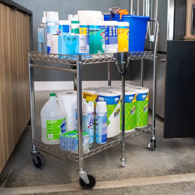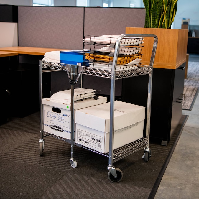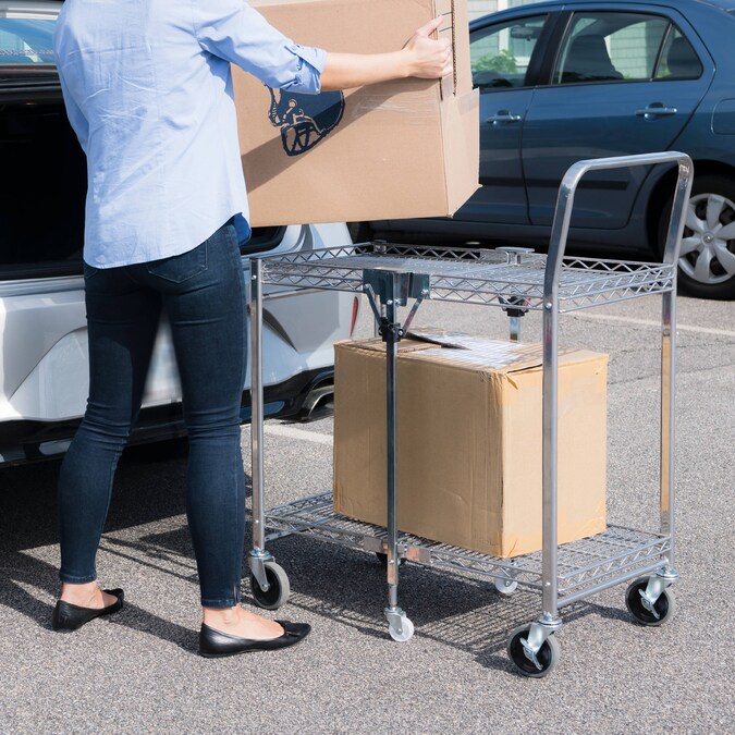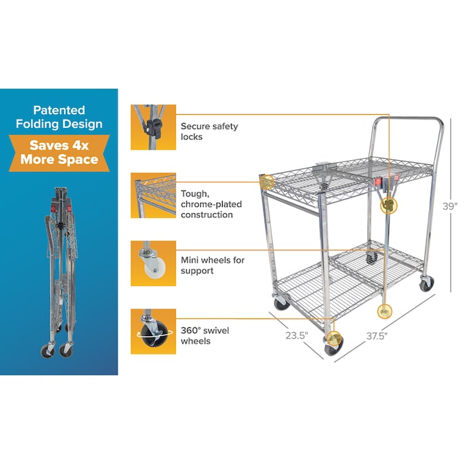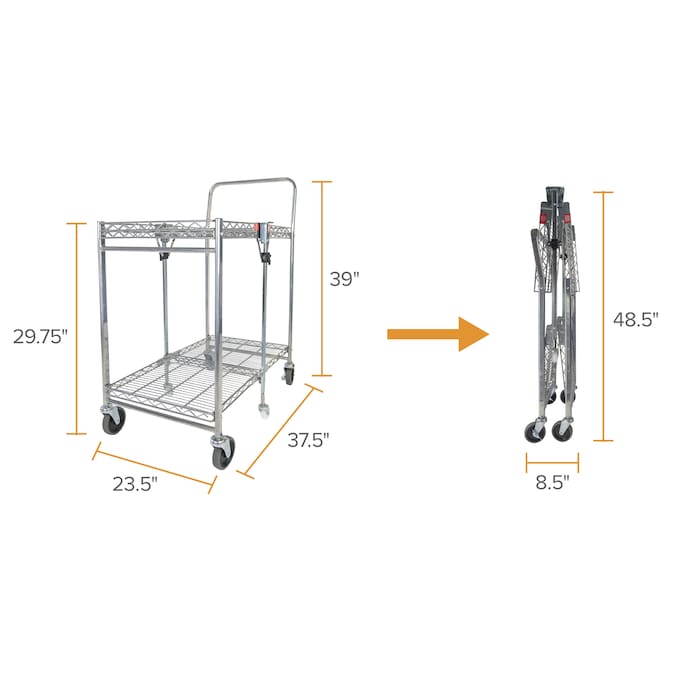 Storage space and location is the number one user issue with current cart designs. Our Bostitch® stowaway™ folding carts have a patented folding design that stores away in 4x less space! An optional wall mount bracket allows for easy storage behind a door or in an open space. It folds and unfolds in a fraction of a second with secure safety locks for the strongest durability. Dual shelves provide 1300+ square inches of storage space and can hold up to a massive 500 pounds of storage capacity. Durable, double chrome coated finish for easy cleaning and lifetime durability with six, medical style no-mar swivel wheels for quiet operation and easy maneuverability.