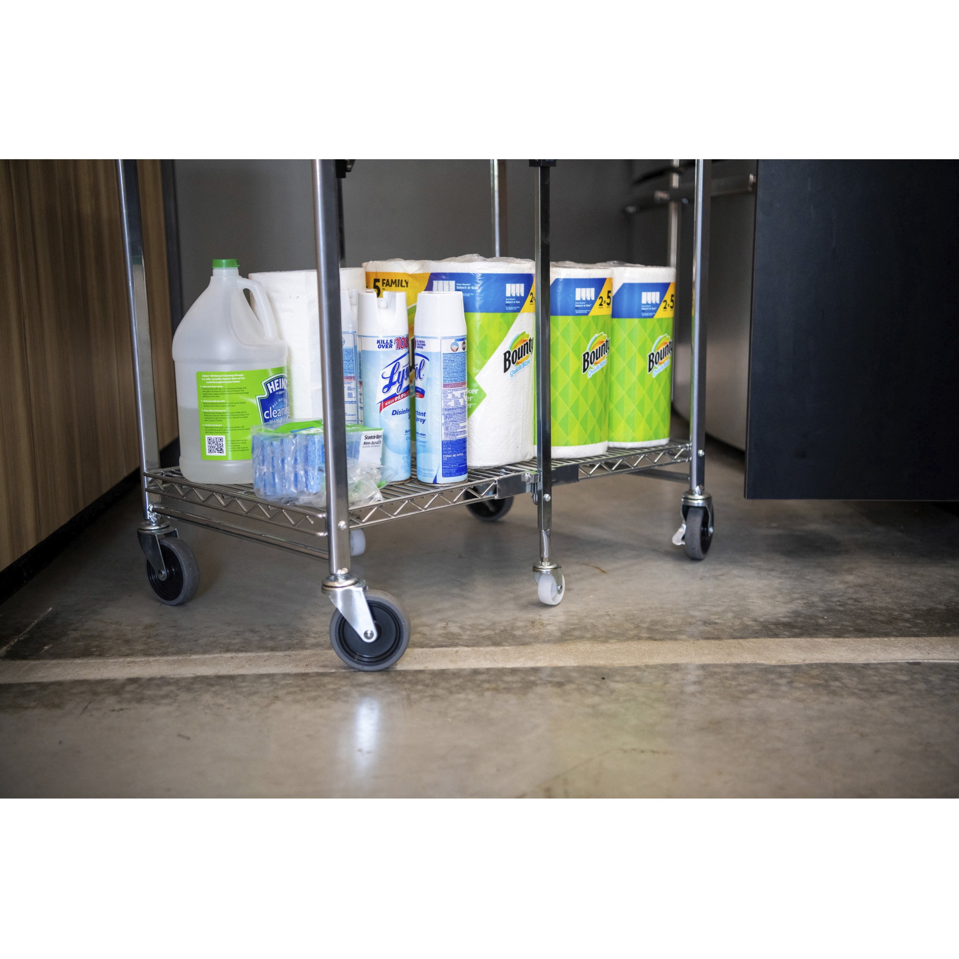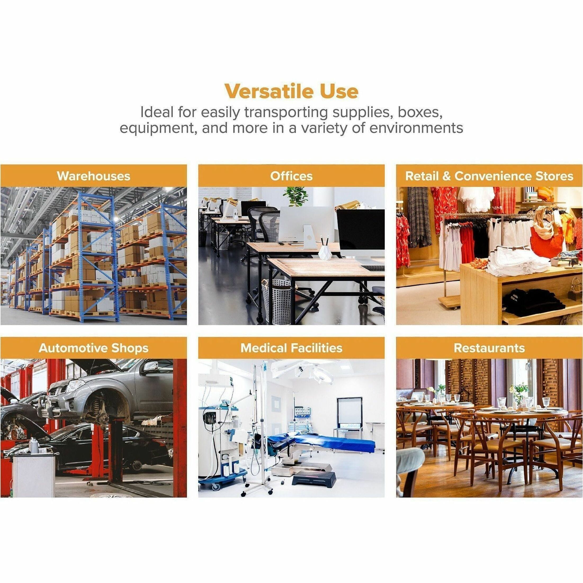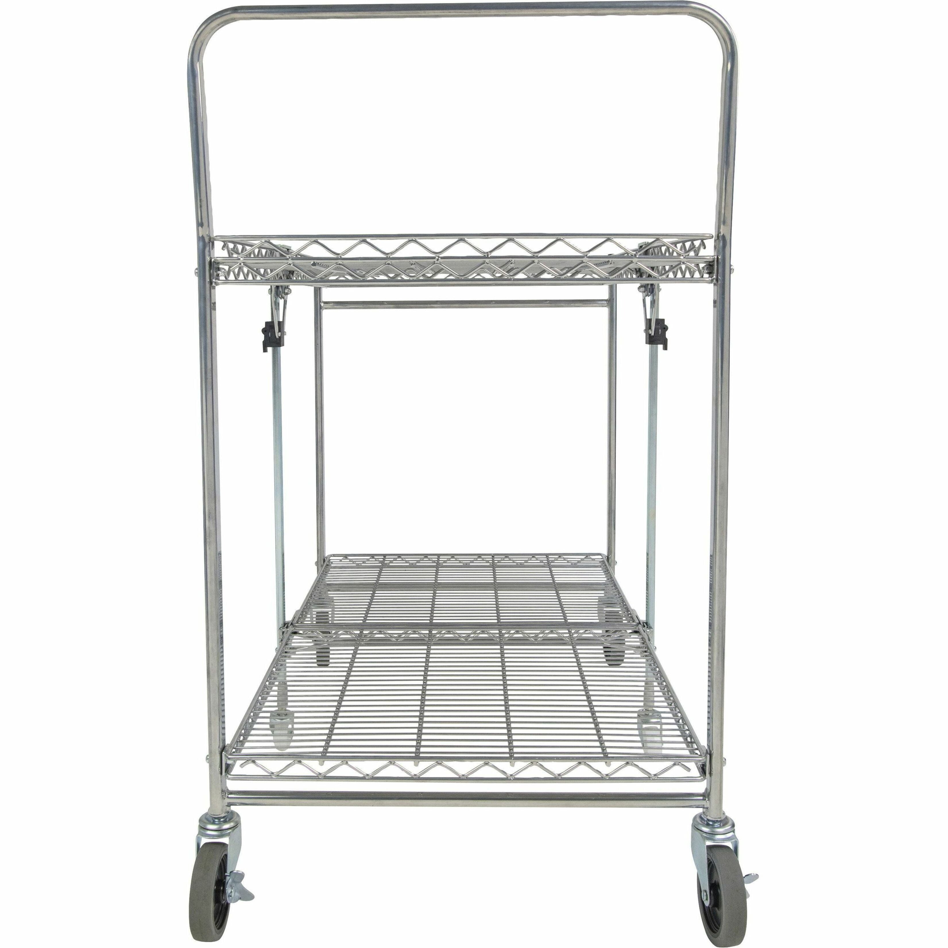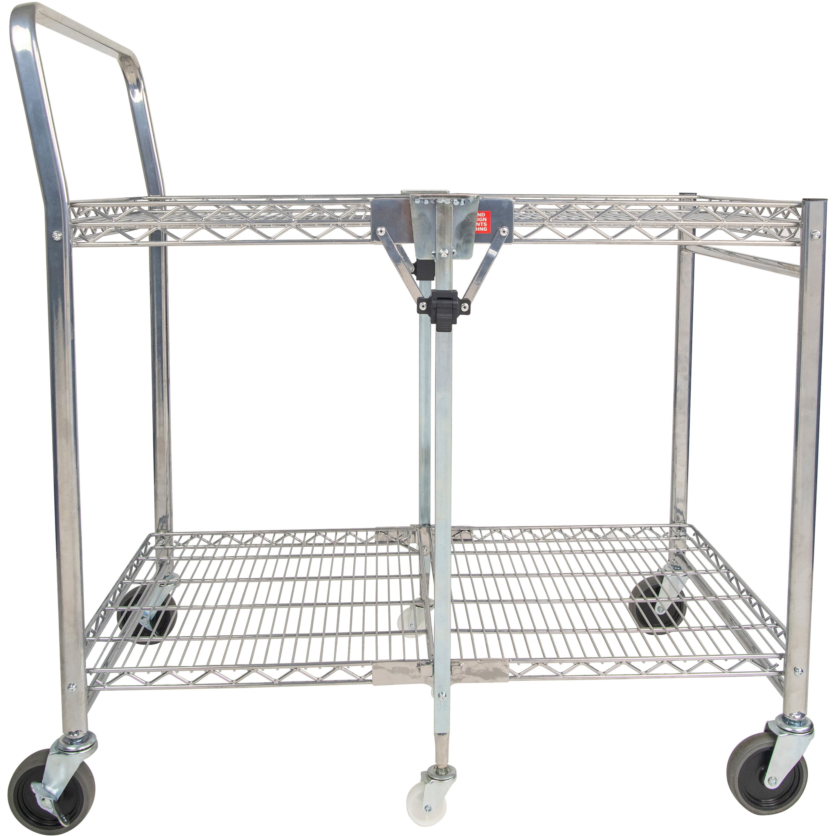 Ideal for use in retail stores, offices, garages, hospitals and more Patented folding design takes up 4x less space Handles a maximum capacity of 500 lbs. Dual shelves provide 1300+ square inches of storage space Double chrome coated construction for ultimate durability