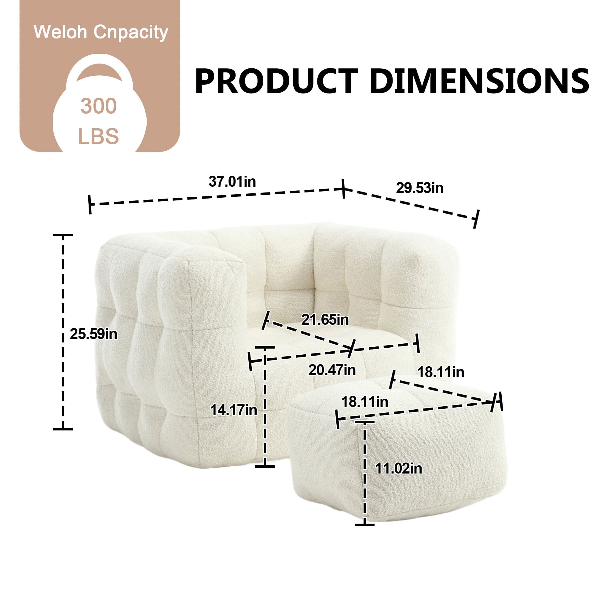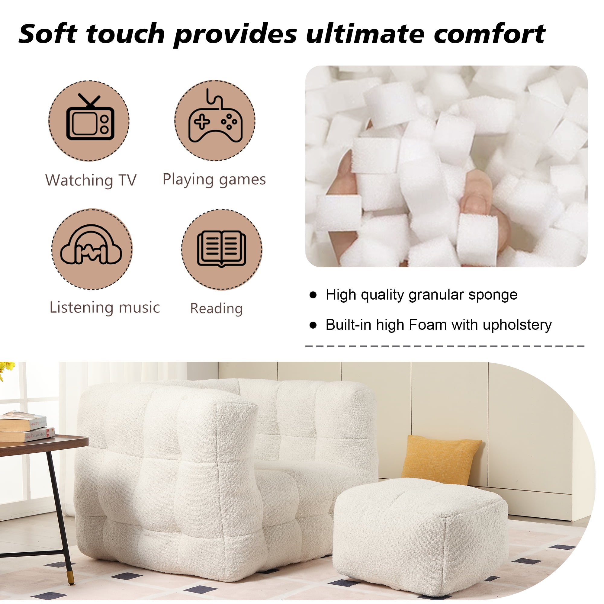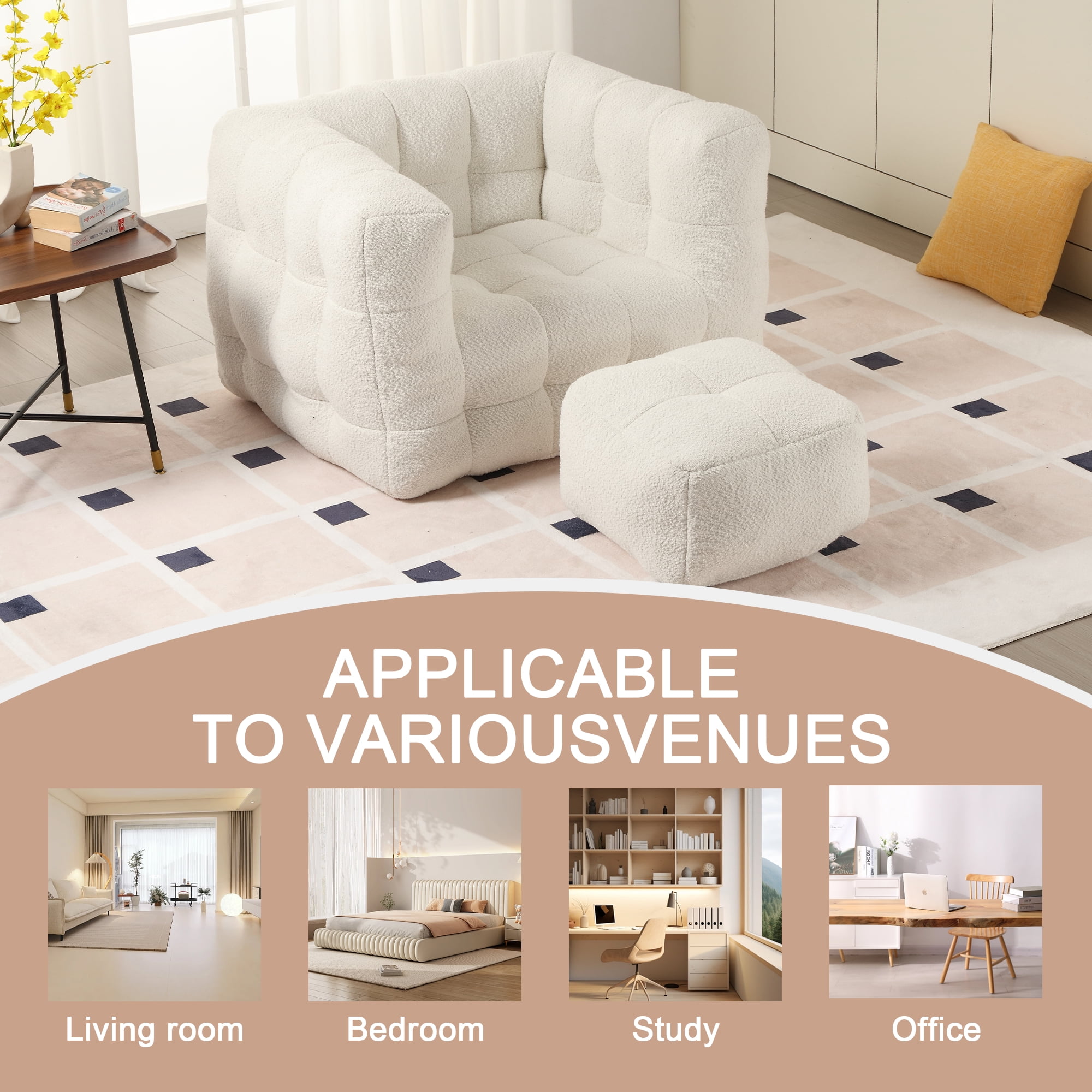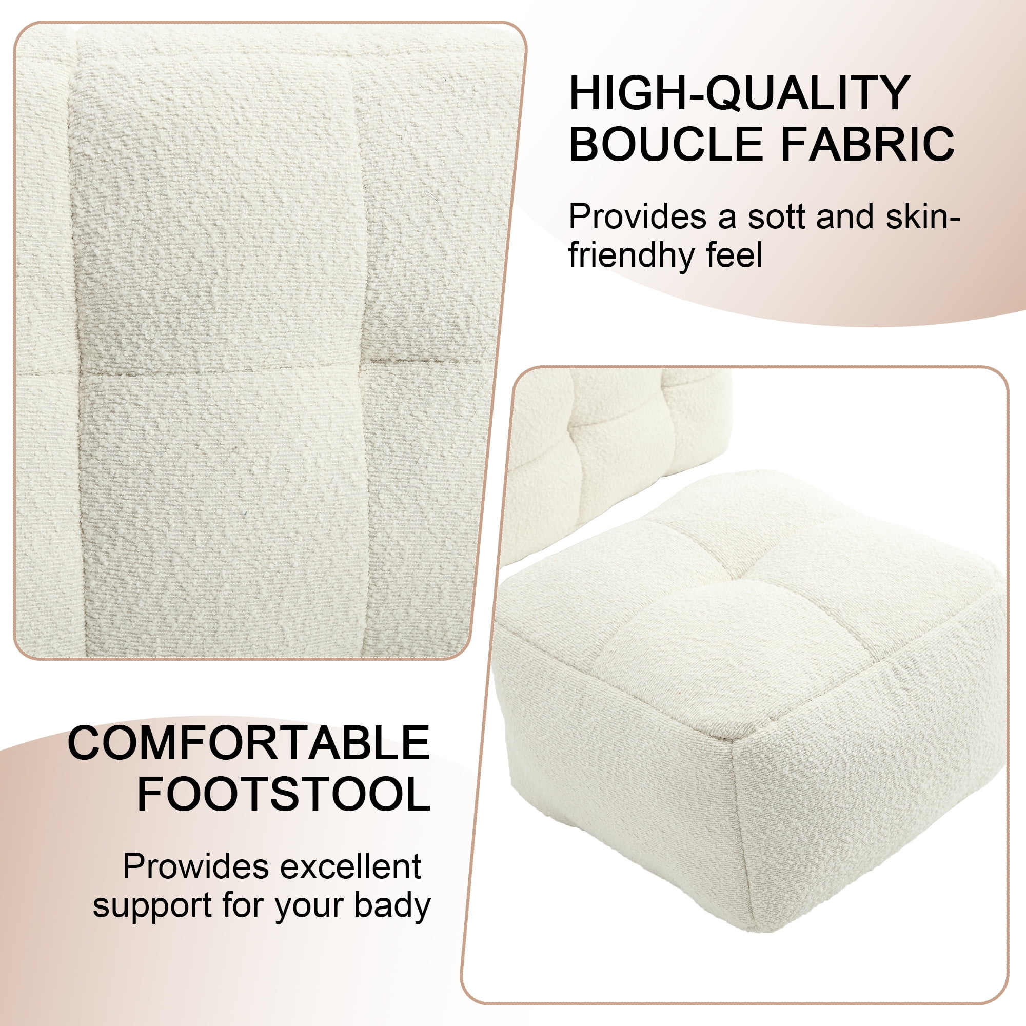 Boucle Upholstered Tufted Modern Single Sofa Chair with Ottoman-Beige