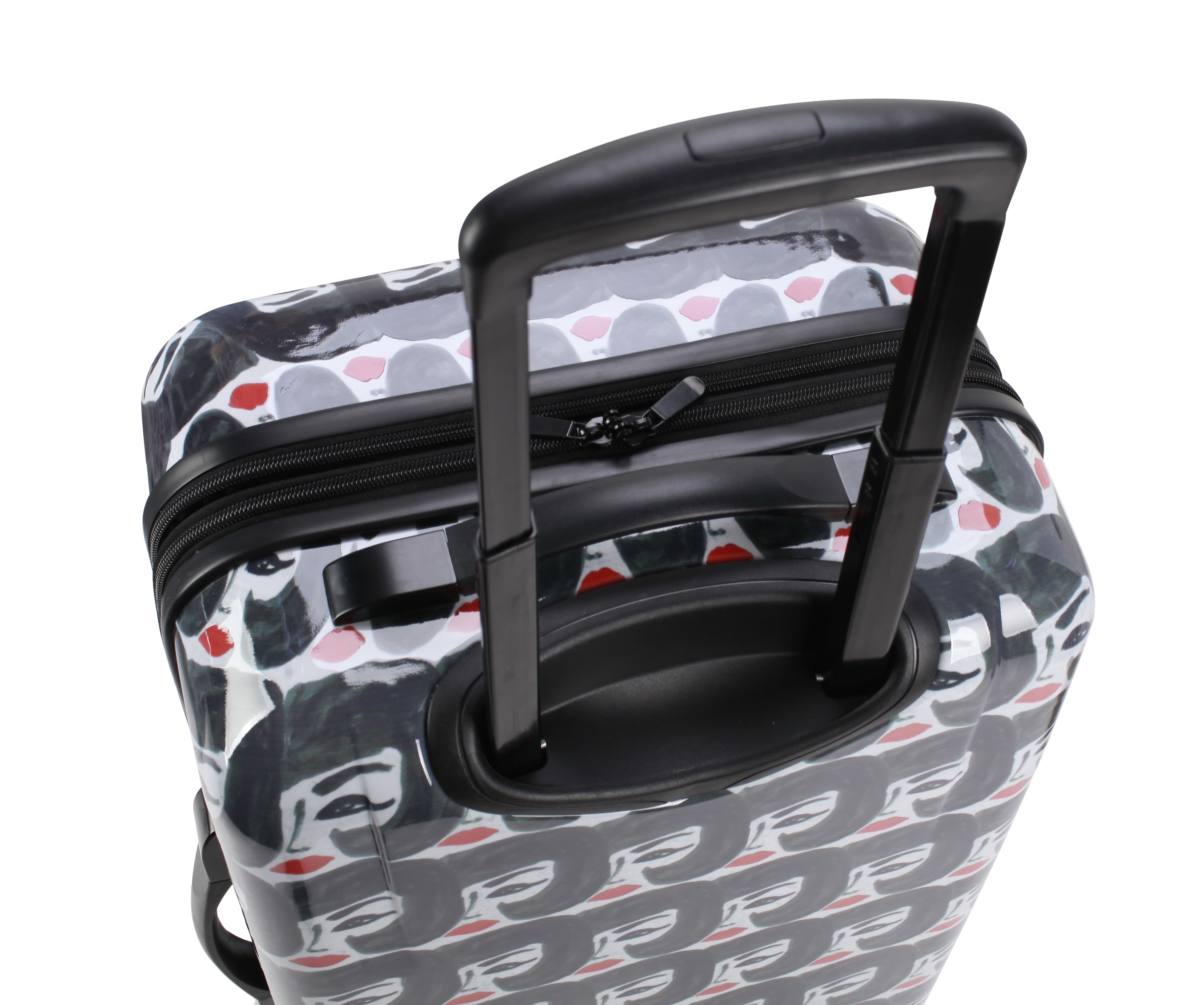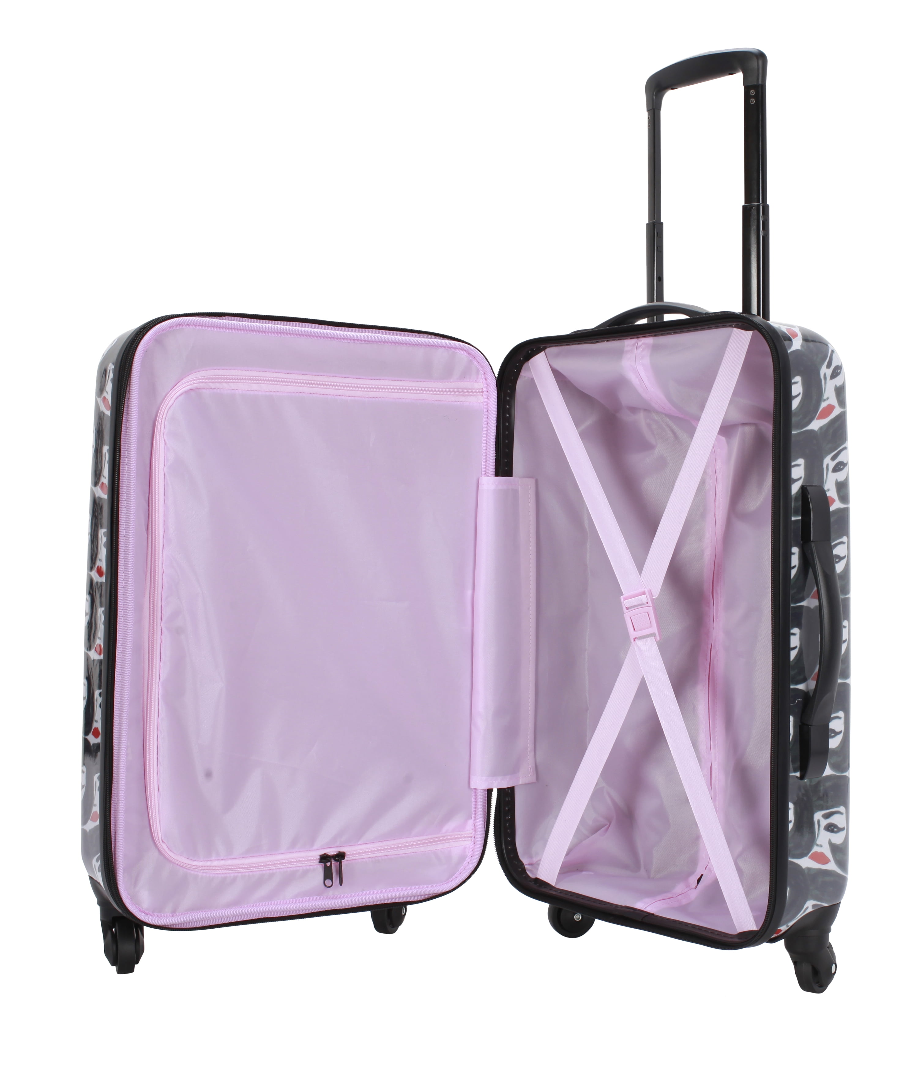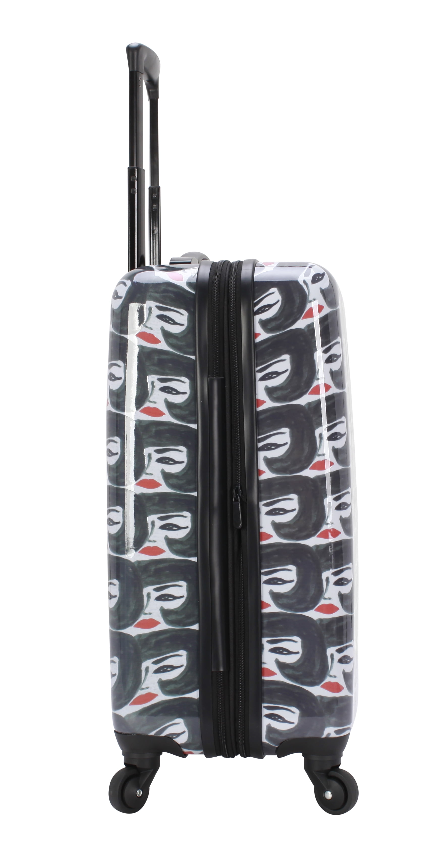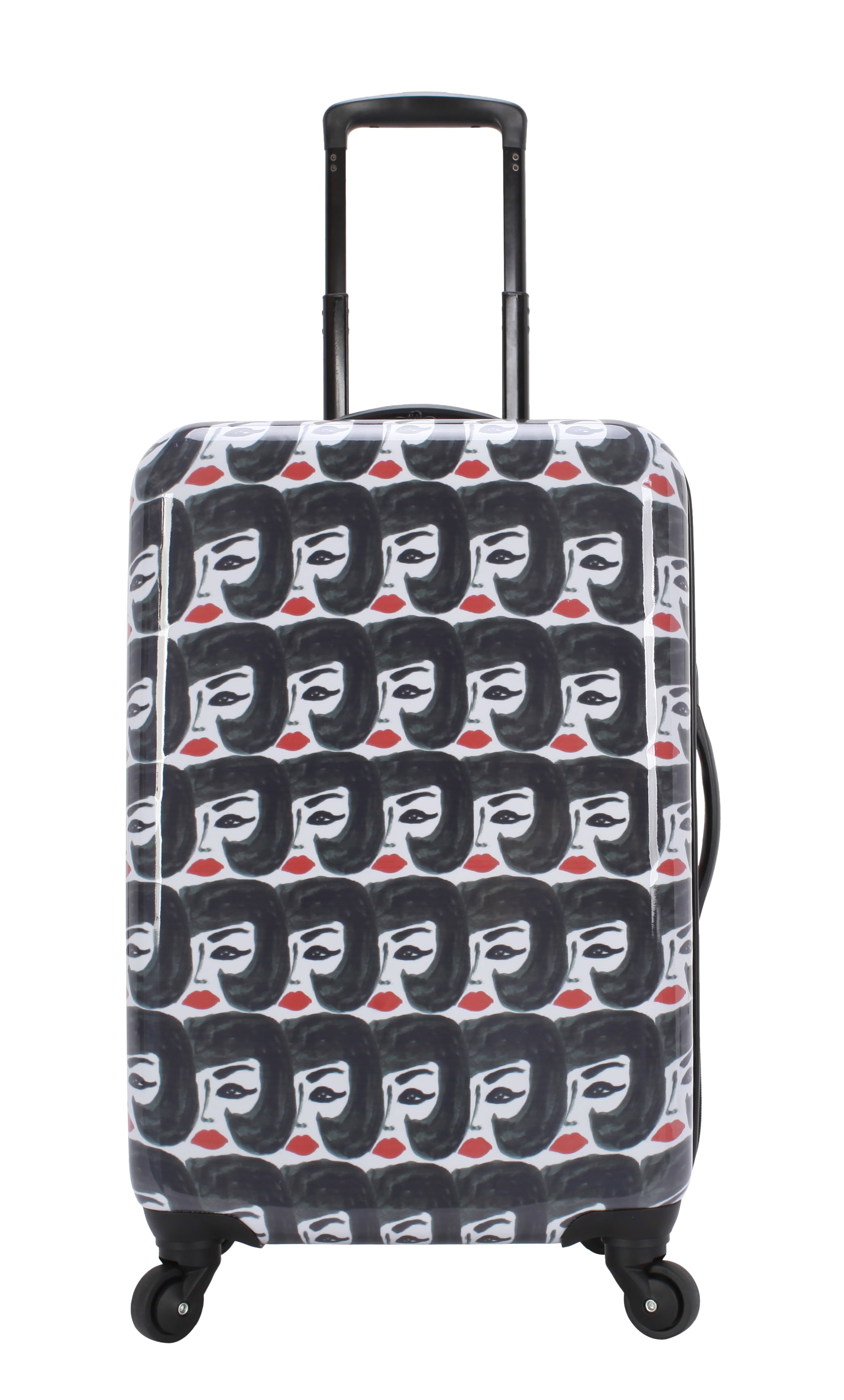 Bouffant & Broken Hearts Carry-on luggage set in Party Mix Print 6-piece set includes: 21″ Hardside luggage, coordinating 18″ backpack, 16.50″ duffel and matching 3 sizes in packing cubes The backpack includes 2 zippered outside pockets, 2 mesh side pocket and an inside laptop sleeve. The duffel includes a trolley sleeve and inside pocket Carry-on luggage has an inside zippered compartment, along with 2 compression straps, 4 – 360 spinner wheels for easy transport, a telescopic handle, top carry handle and a side handle Weekender has 2 top carry handles, an adjustable shoulder strap and an inside zippered pocket Dimensions for each: 21″ Hardside carry-on luggage 10″ L x 14.6″ W x 23″H with wheels, Weekender duffel 9″ L x 26″ W x 16″ H, Backpack 5.50″ L x 13.50″ W x 18″ H, packing cubes (3 pc set) Large 2.50″ L x 18″ W x 11″ H, Medium 2.50″ L x 13″ W x 9″ H, Small 2.50″ L x 10″ W x 6″ H