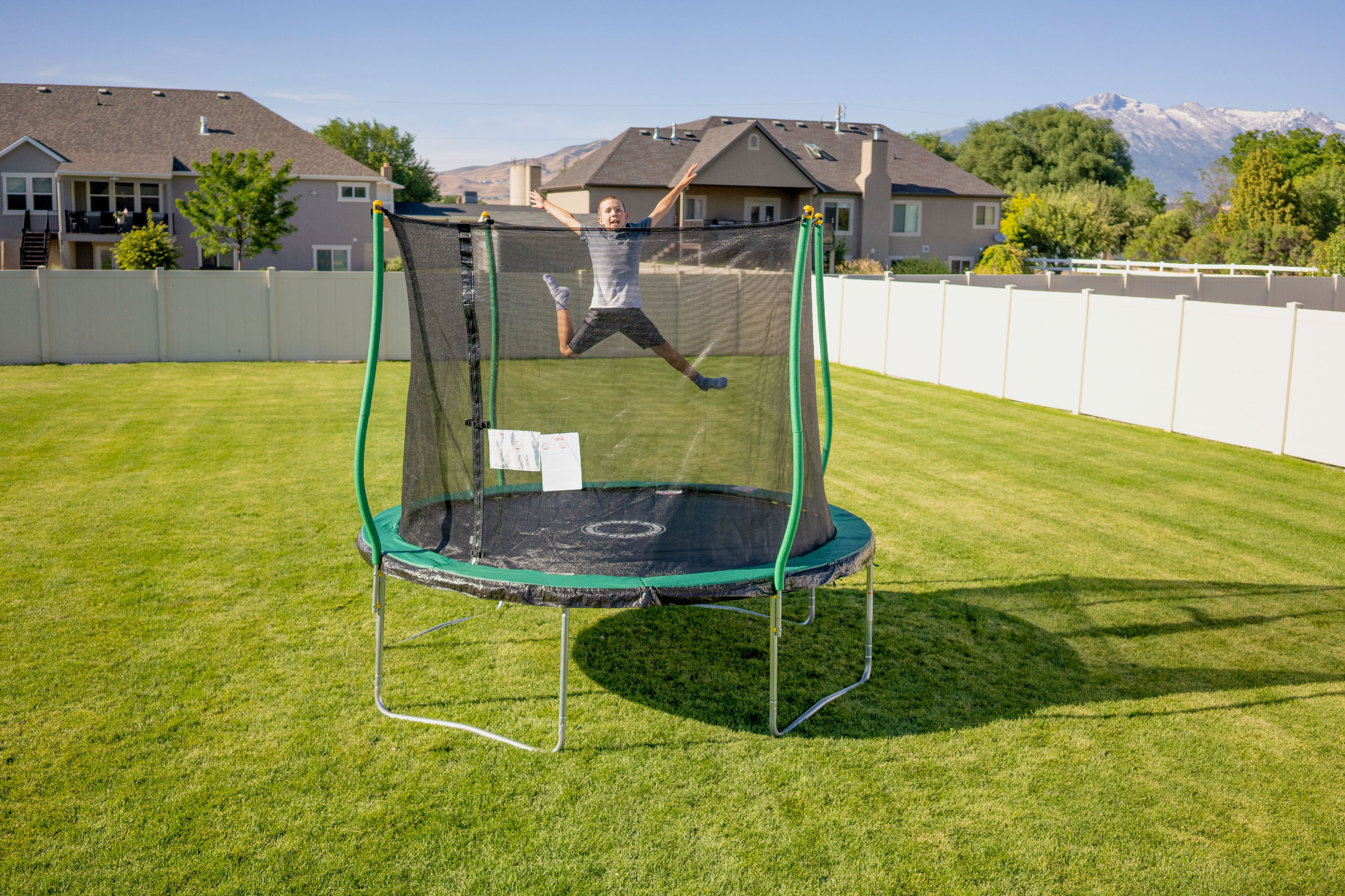 Bounce Pro 10′ Trampoline, Flash Light Zone, Classic Safety Enclosure, Green/Black