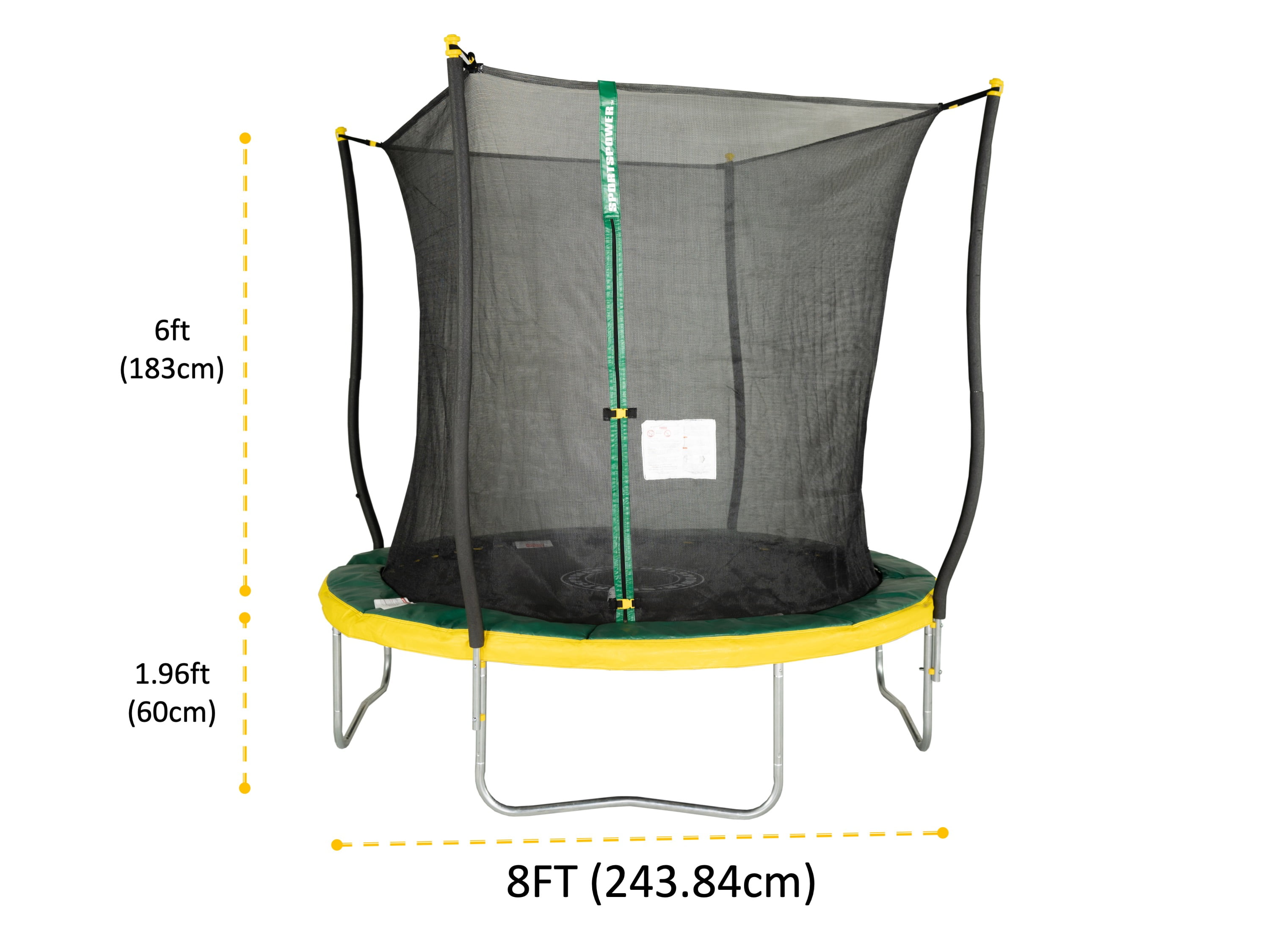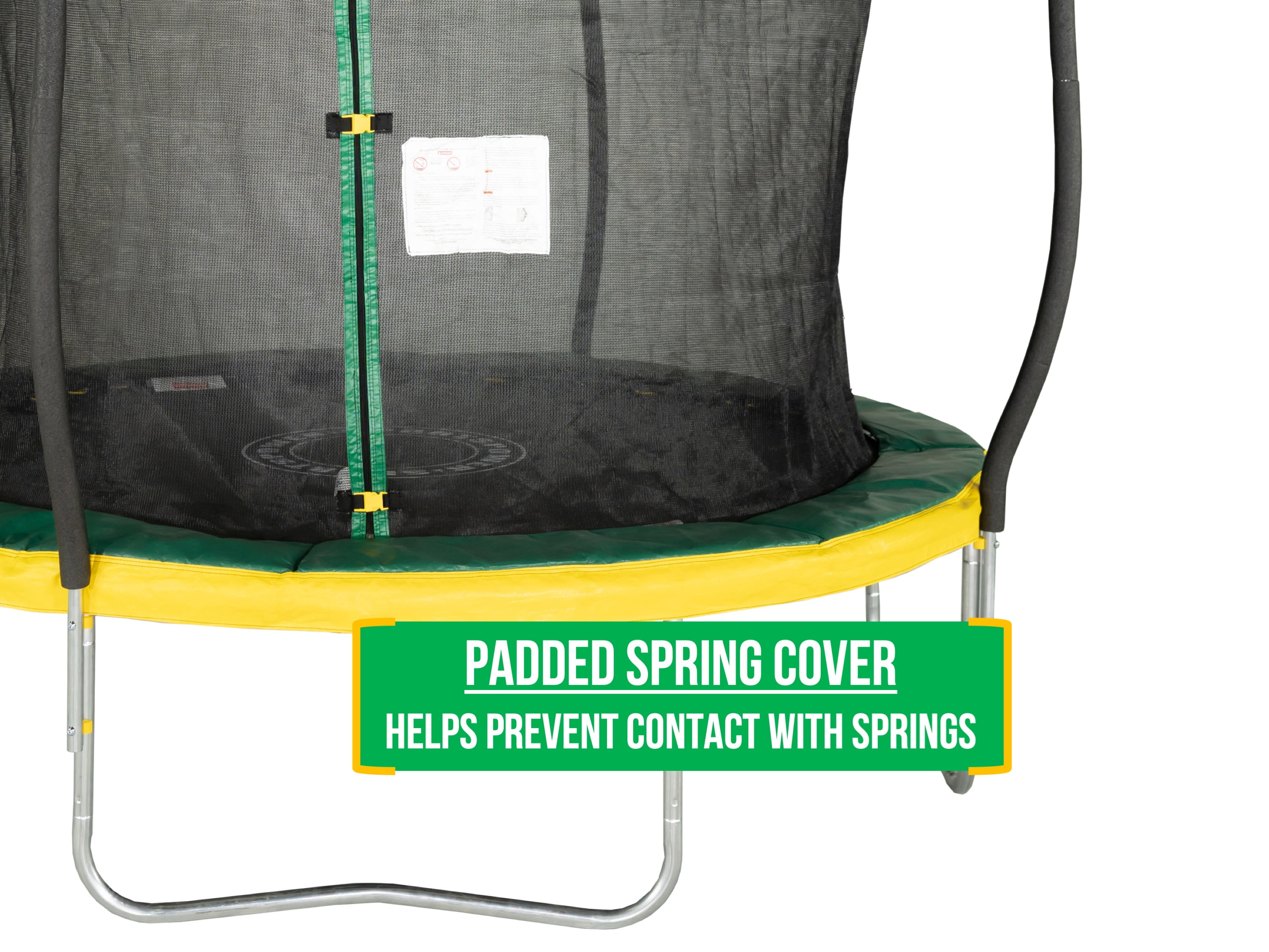 Bounce Pro 8′ Trampoline, Flash Light Zone, Classic Safety Enclosure, Green/Yellow