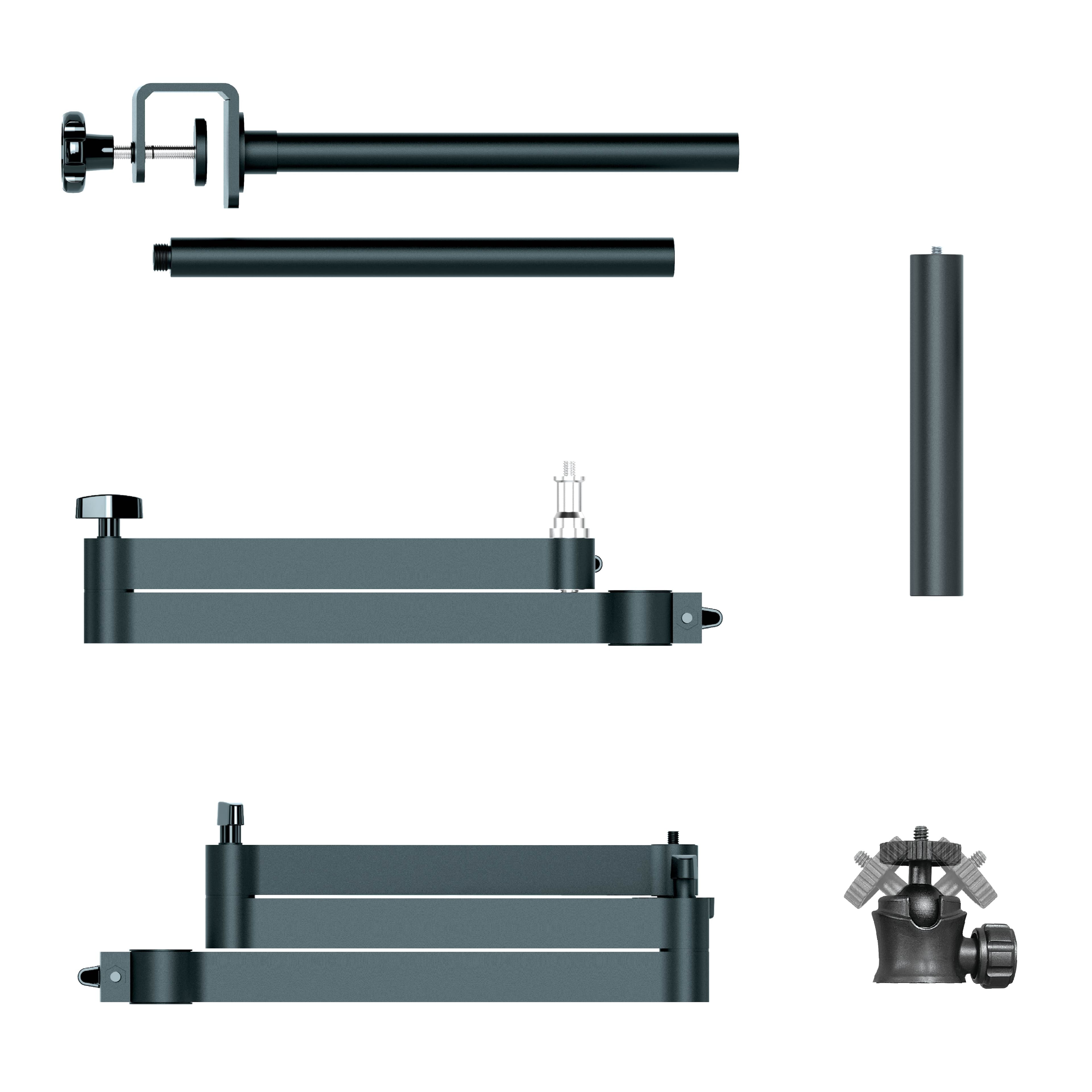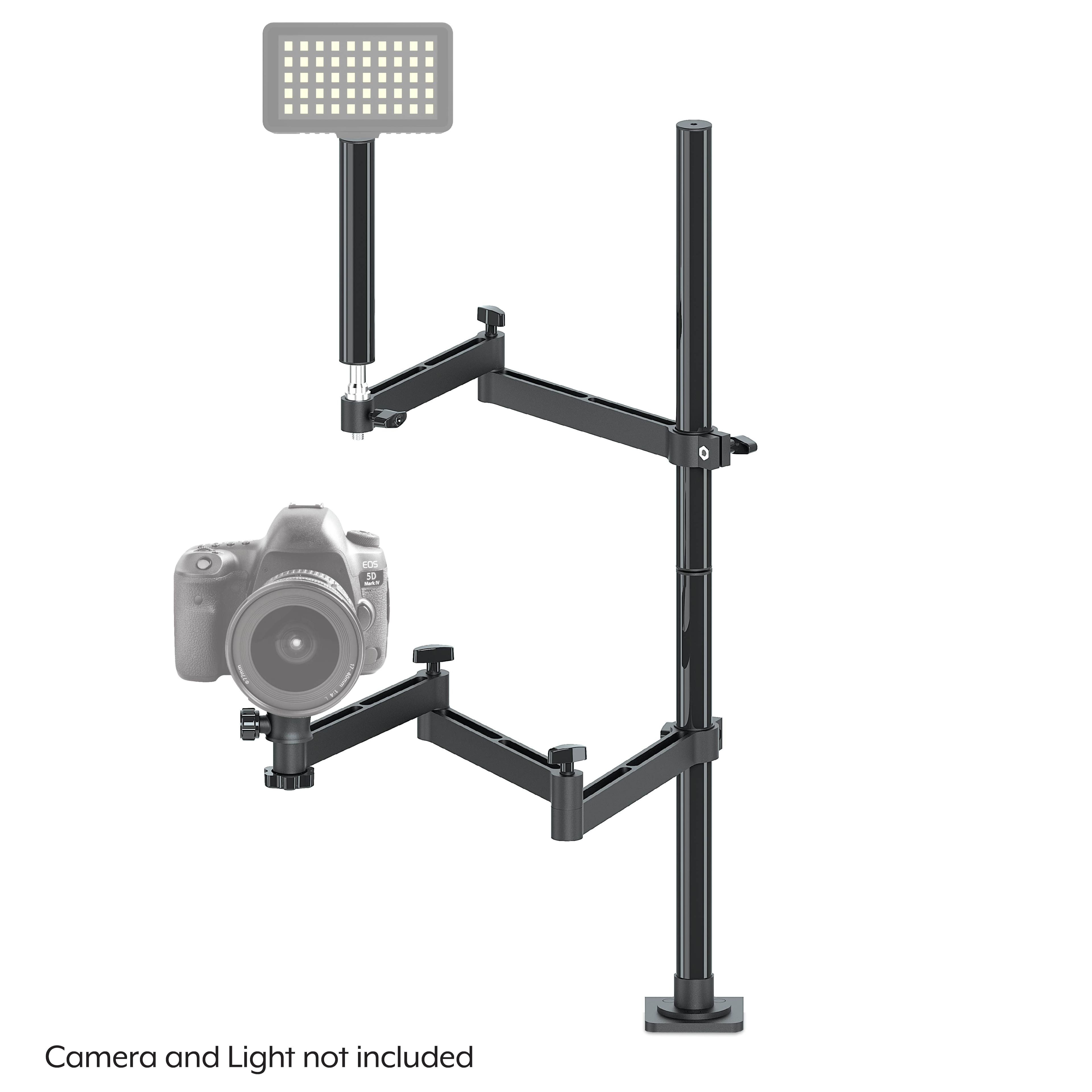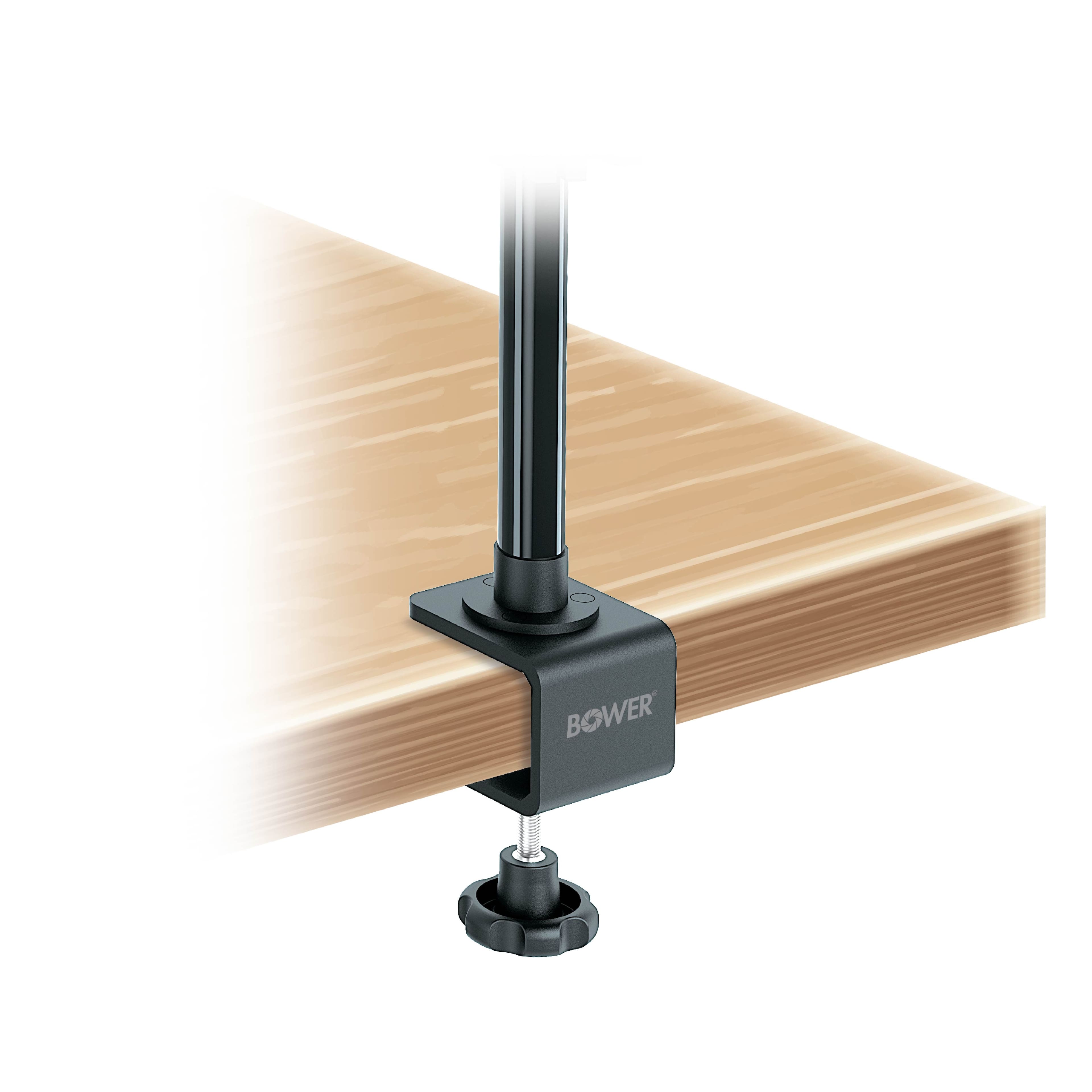 Experience the versatility of the Bower Desk Mount Stand, an adjustable, multi-purpose mount designed for various equipment such as DSLR cameras, mirrorless cameras, smartphones, LED lights, and microphones. Crafted from robust aluminum, it guarantees stability and durability, easily mounting on most desks via an adjustable clamp. Its adaptable nature, featuring a 27.7-inch center column, 360-degree ball head mount, and multiple extendable arms, provides the flexibility to achieve the optimal angles for your needs.