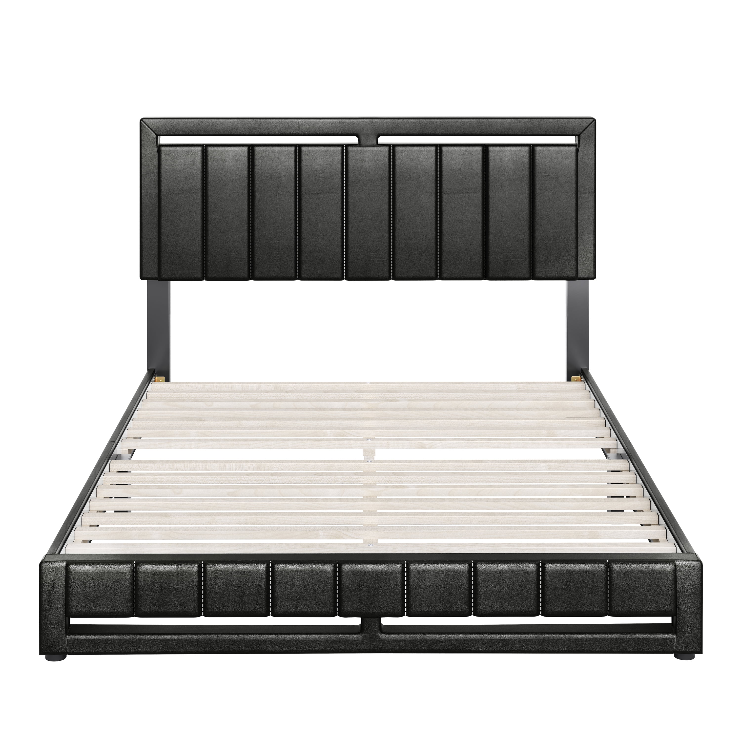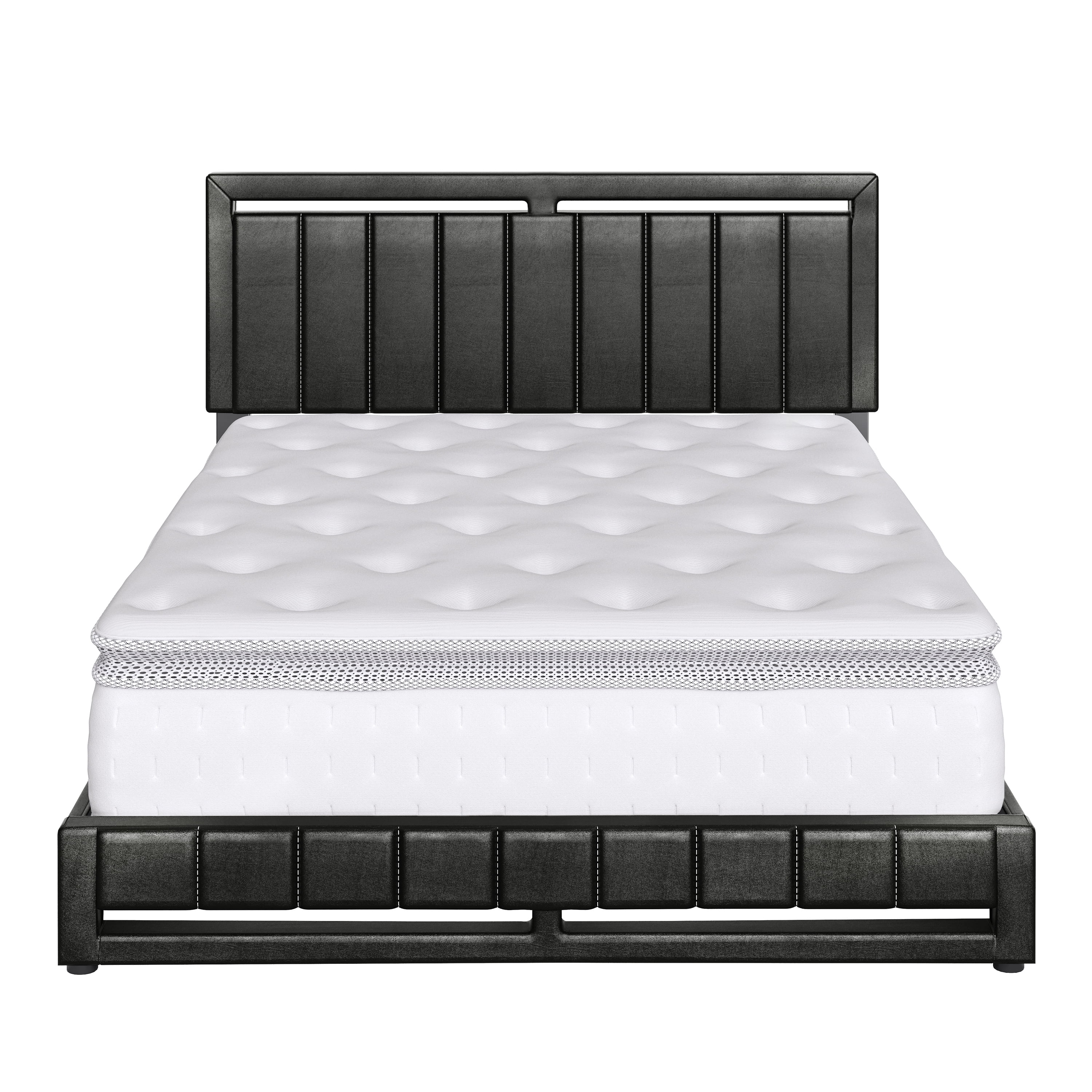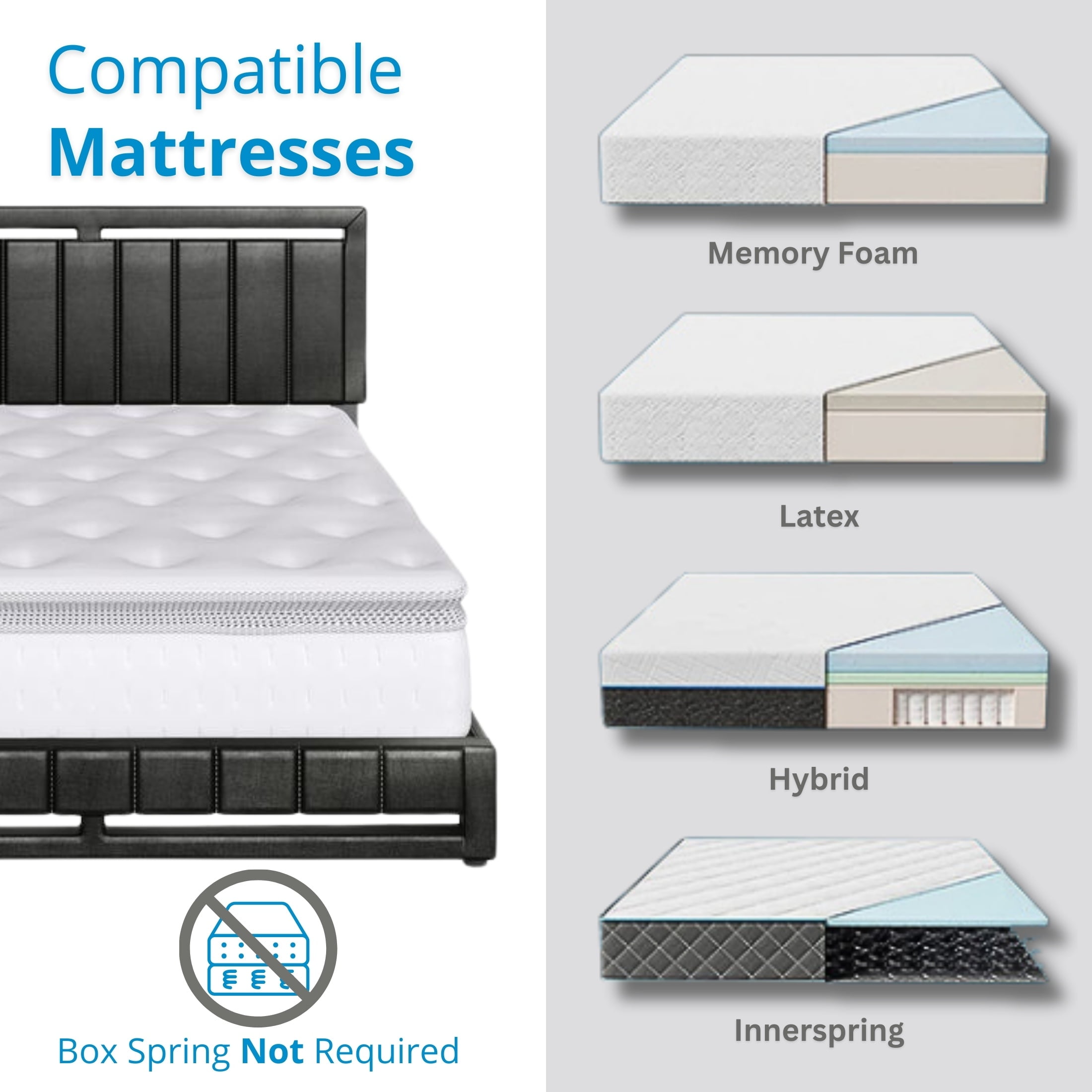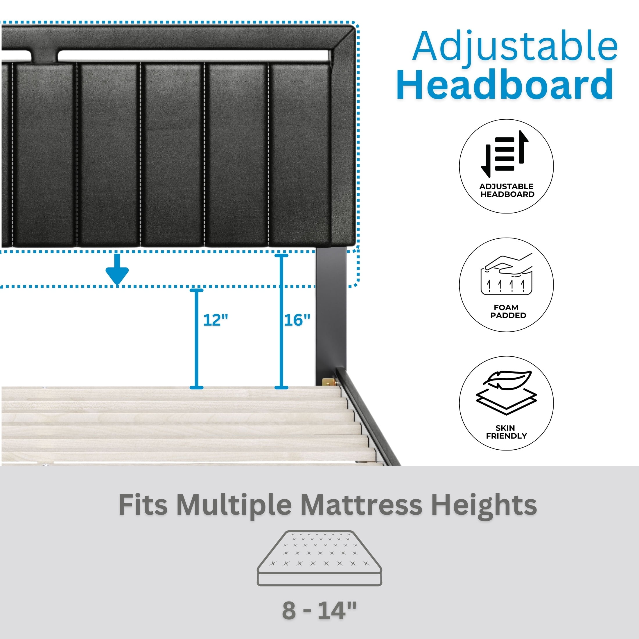 Boyd Sleep Beaumont Black Faux Leather Queen Size Fully Upholstered Platform Bed Frame with Adjustable Headboard