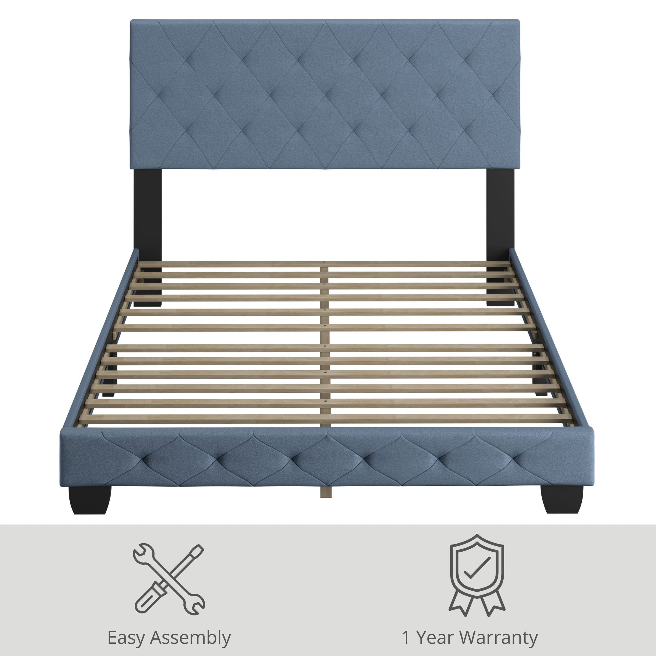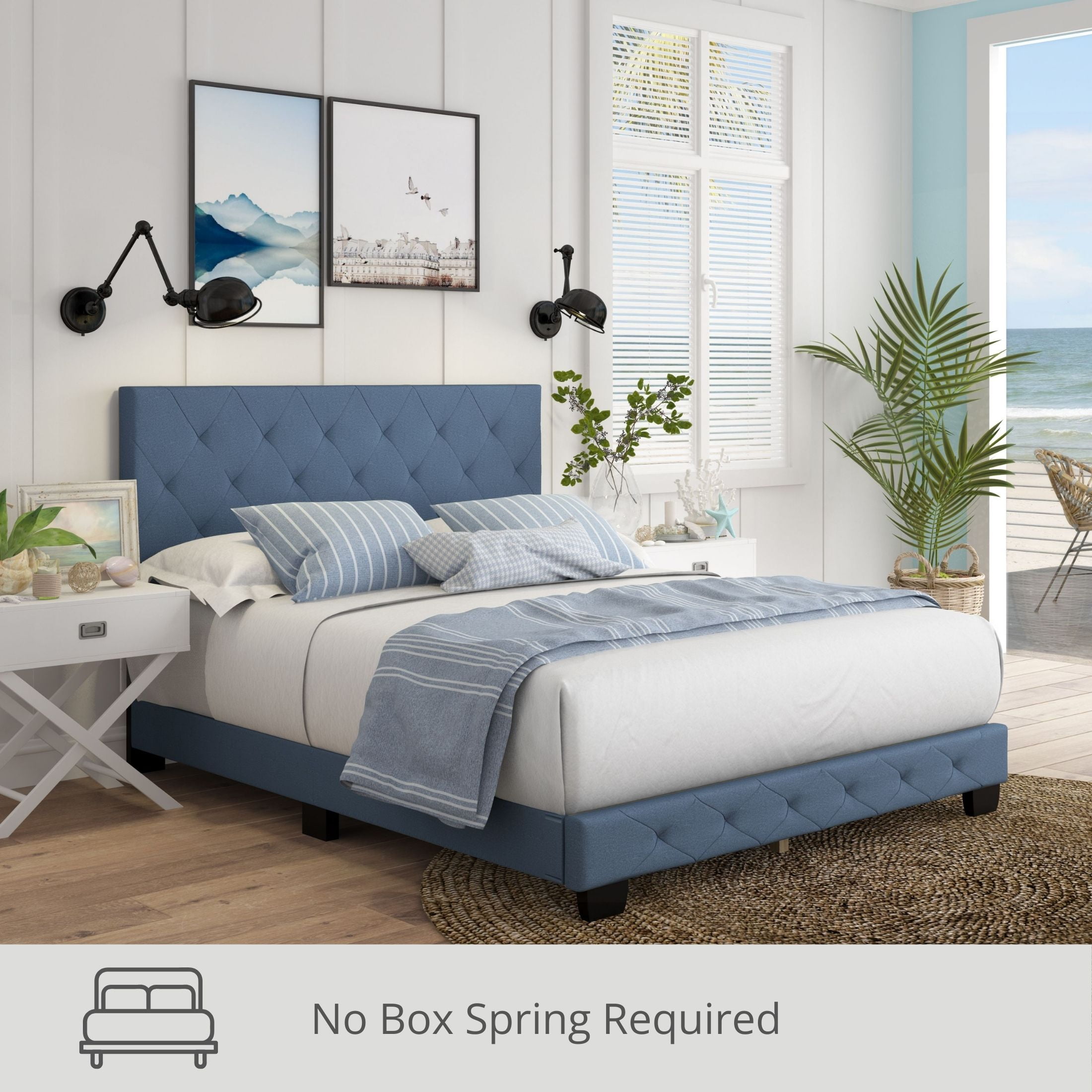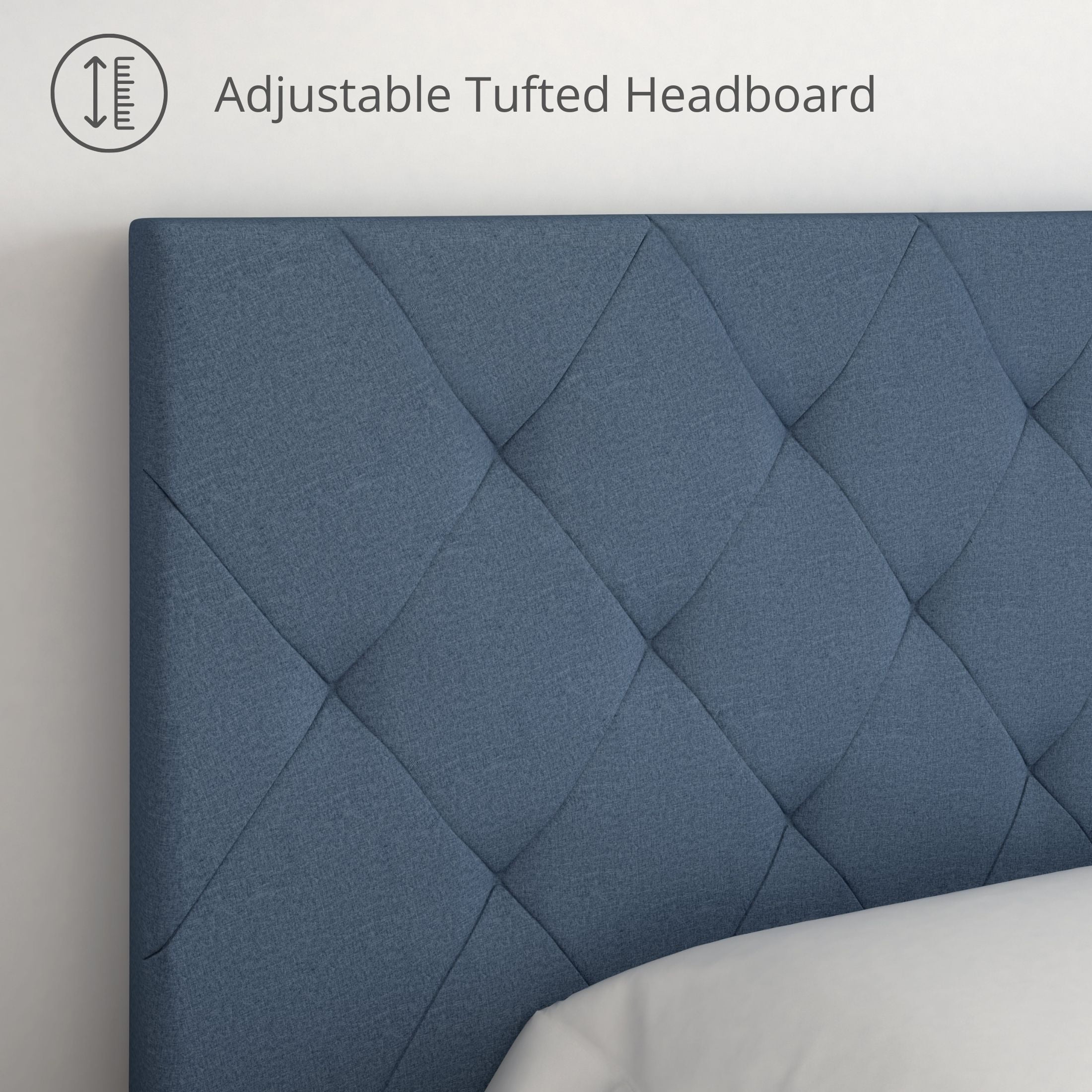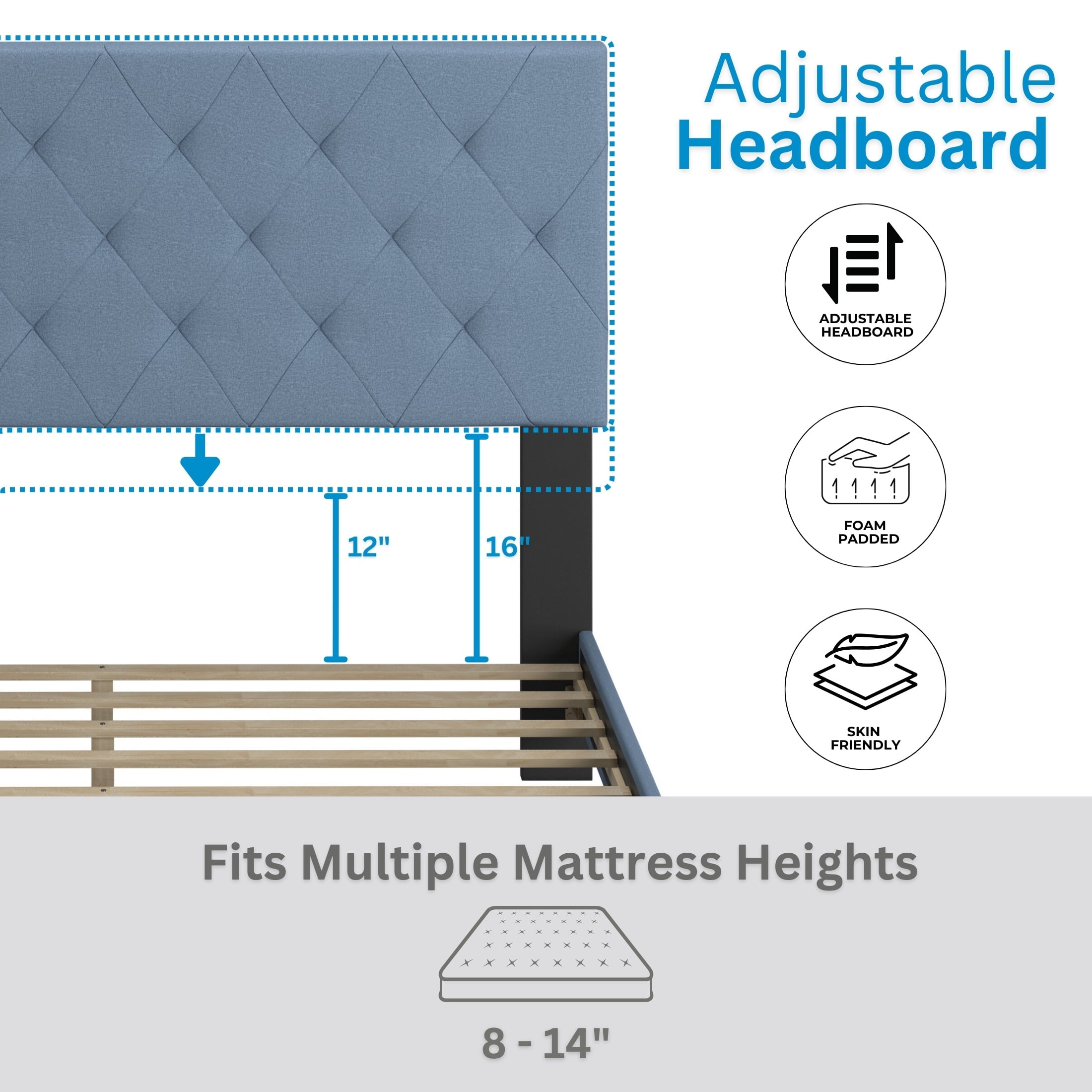 Boyd Sleep Chloe Blue Linen Full Size Fully Upholstered Platform Bed Frame with Adjustable Headboard