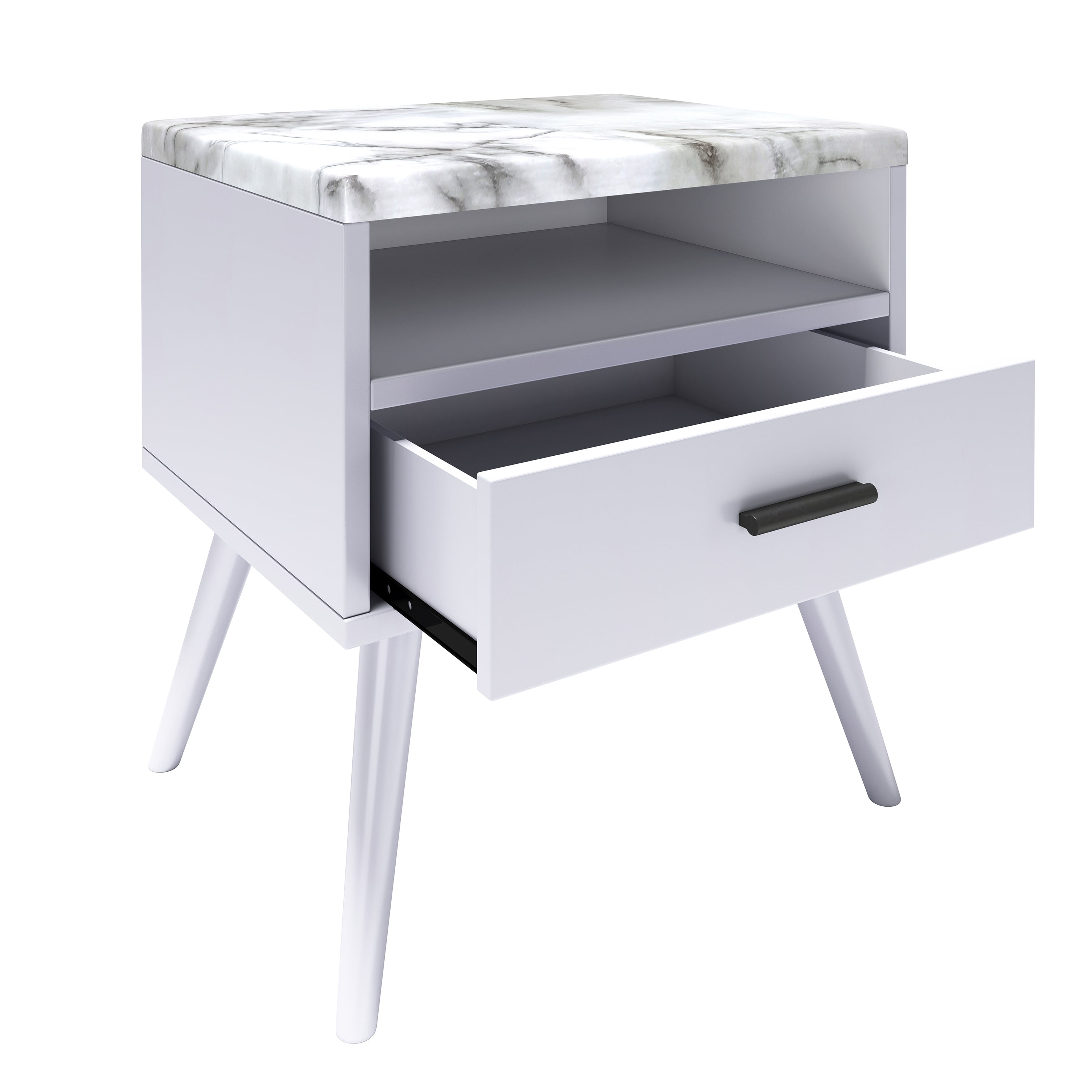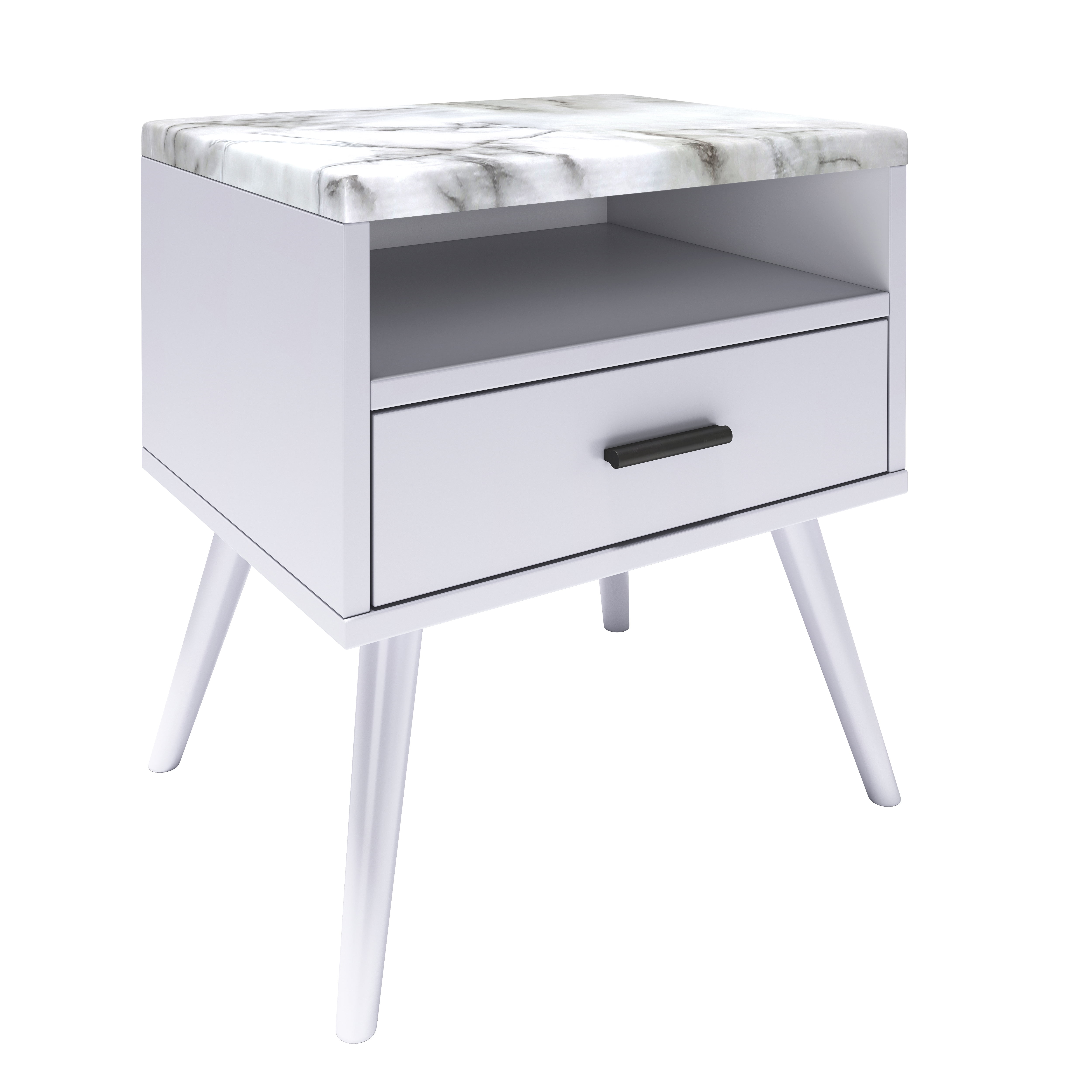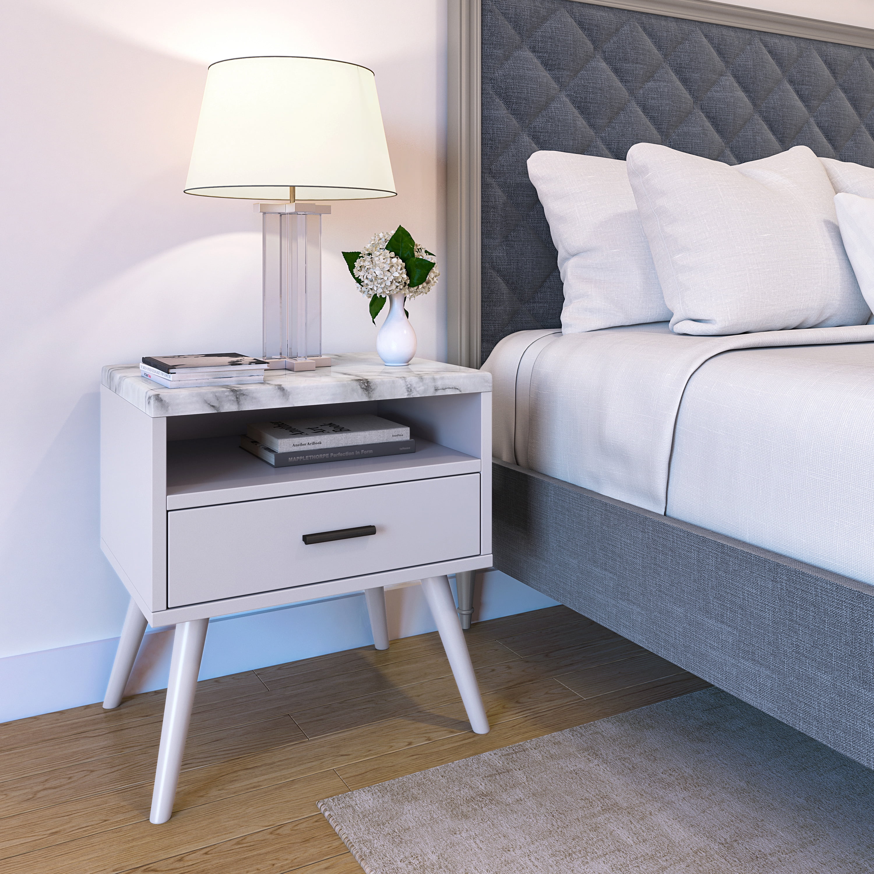 Boyd Sleep Marcello Mid Century Modern Faux Marble One Drawer Nightstand, White