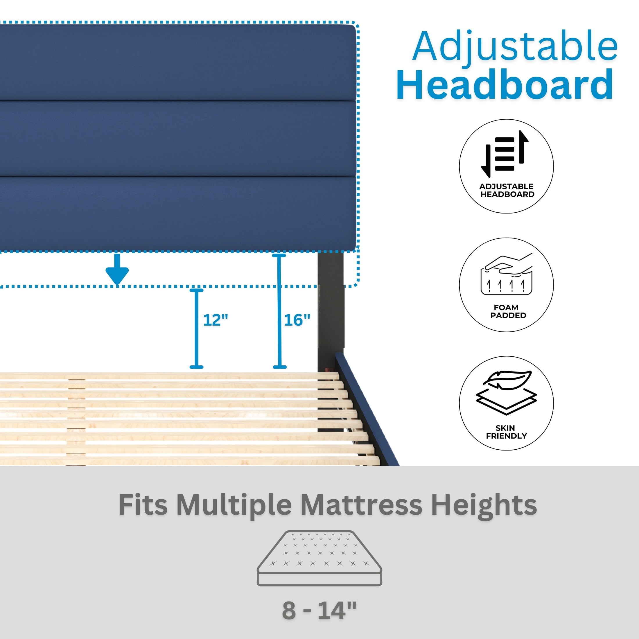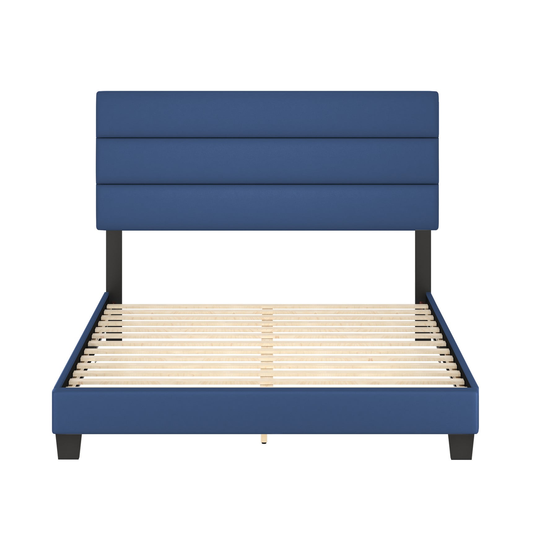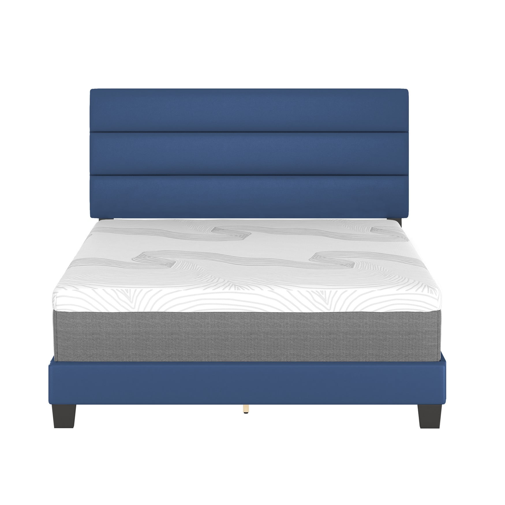 Boyd Sleep Piedmont Blue Faux Leather Queen Size Fully Upholstered Platform Bed Frame with Adjustable Headboard