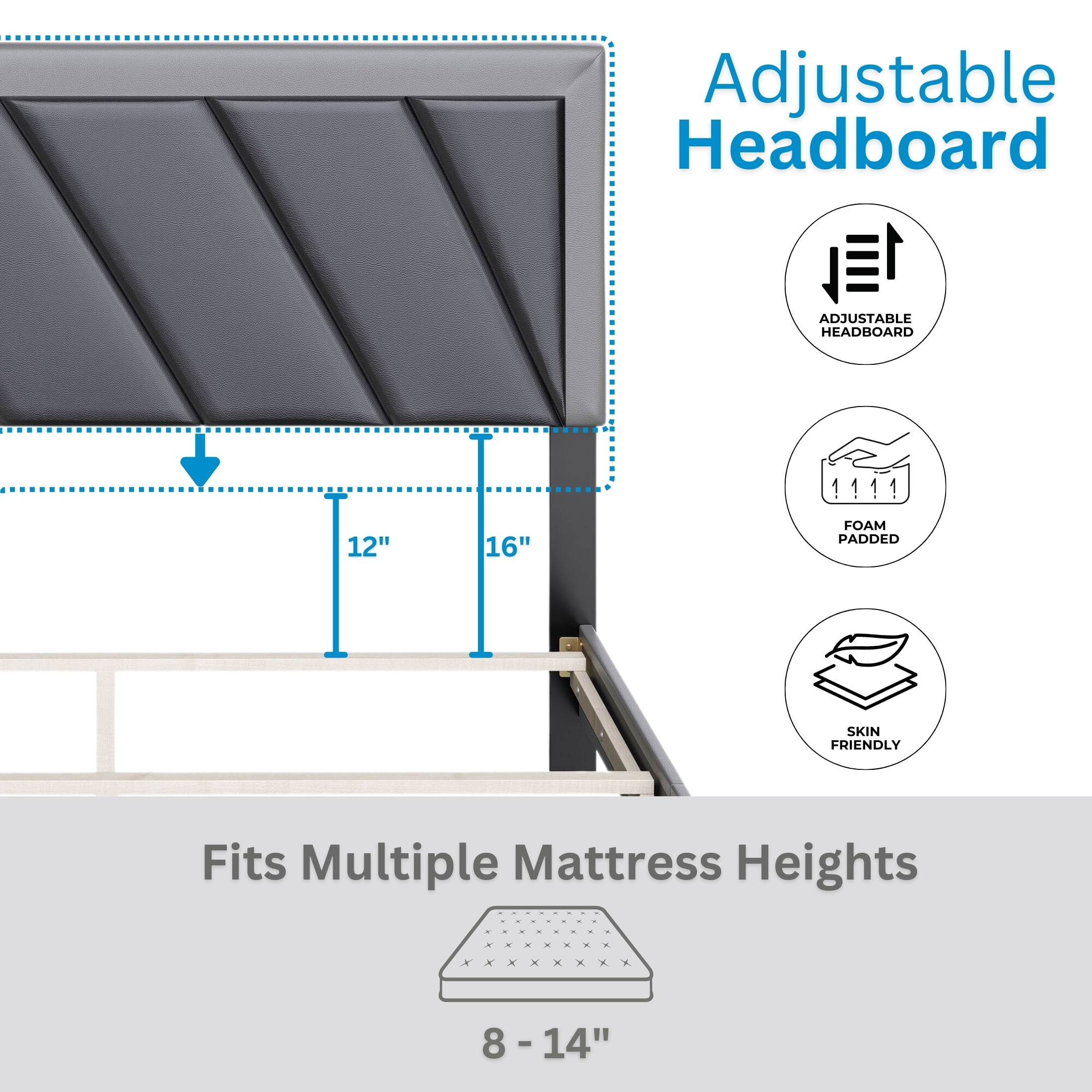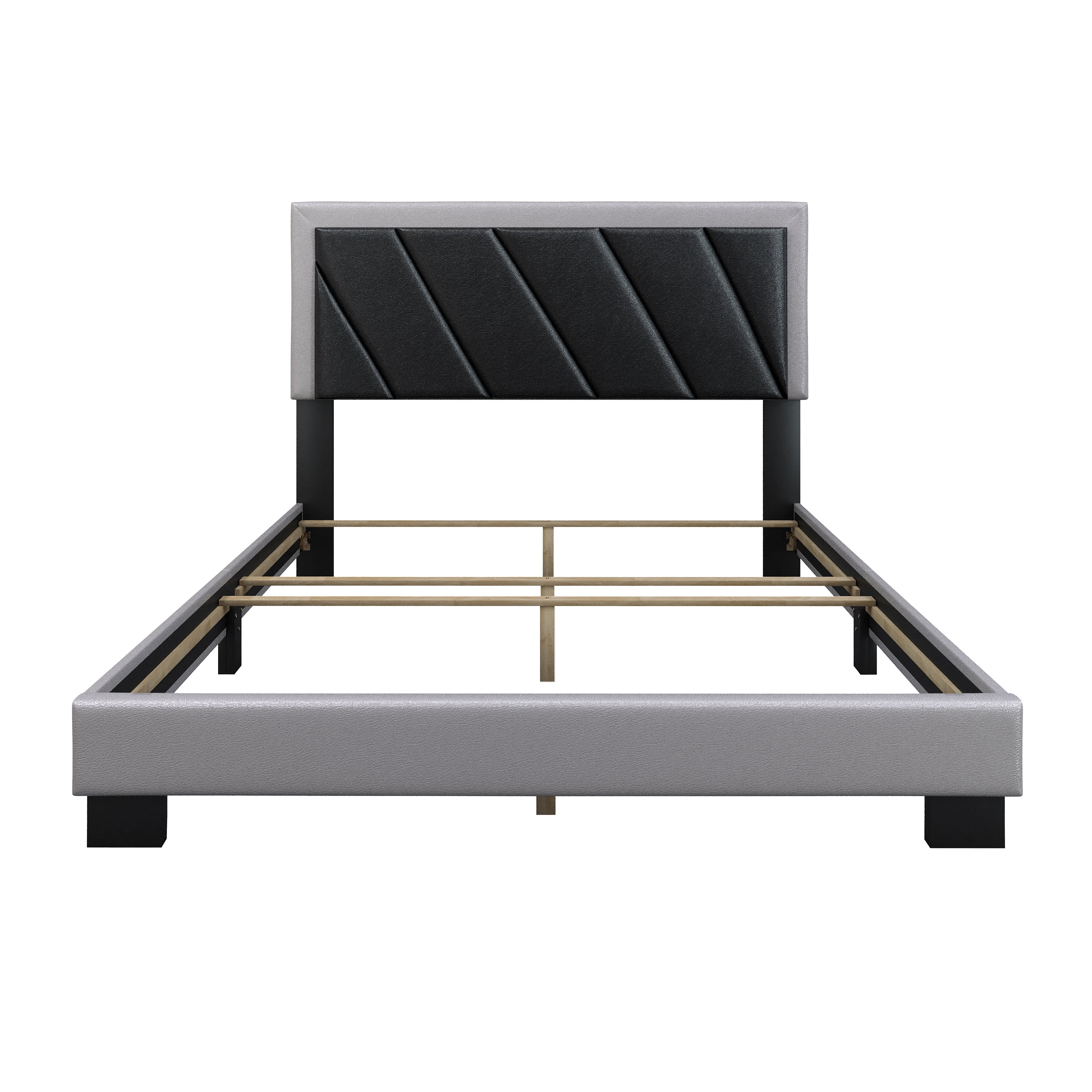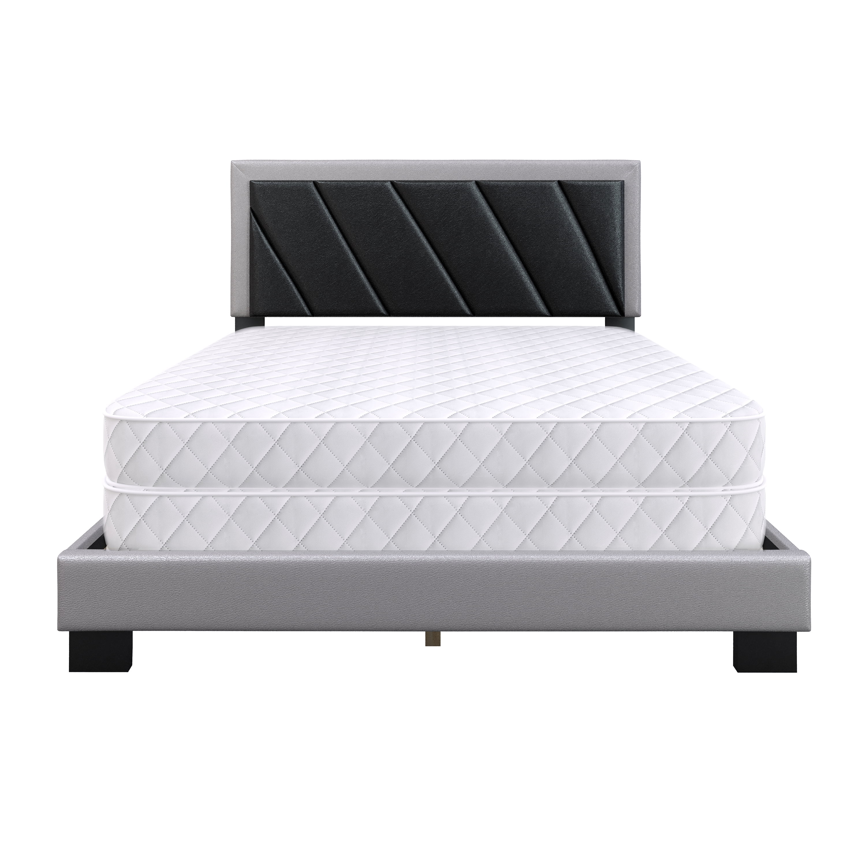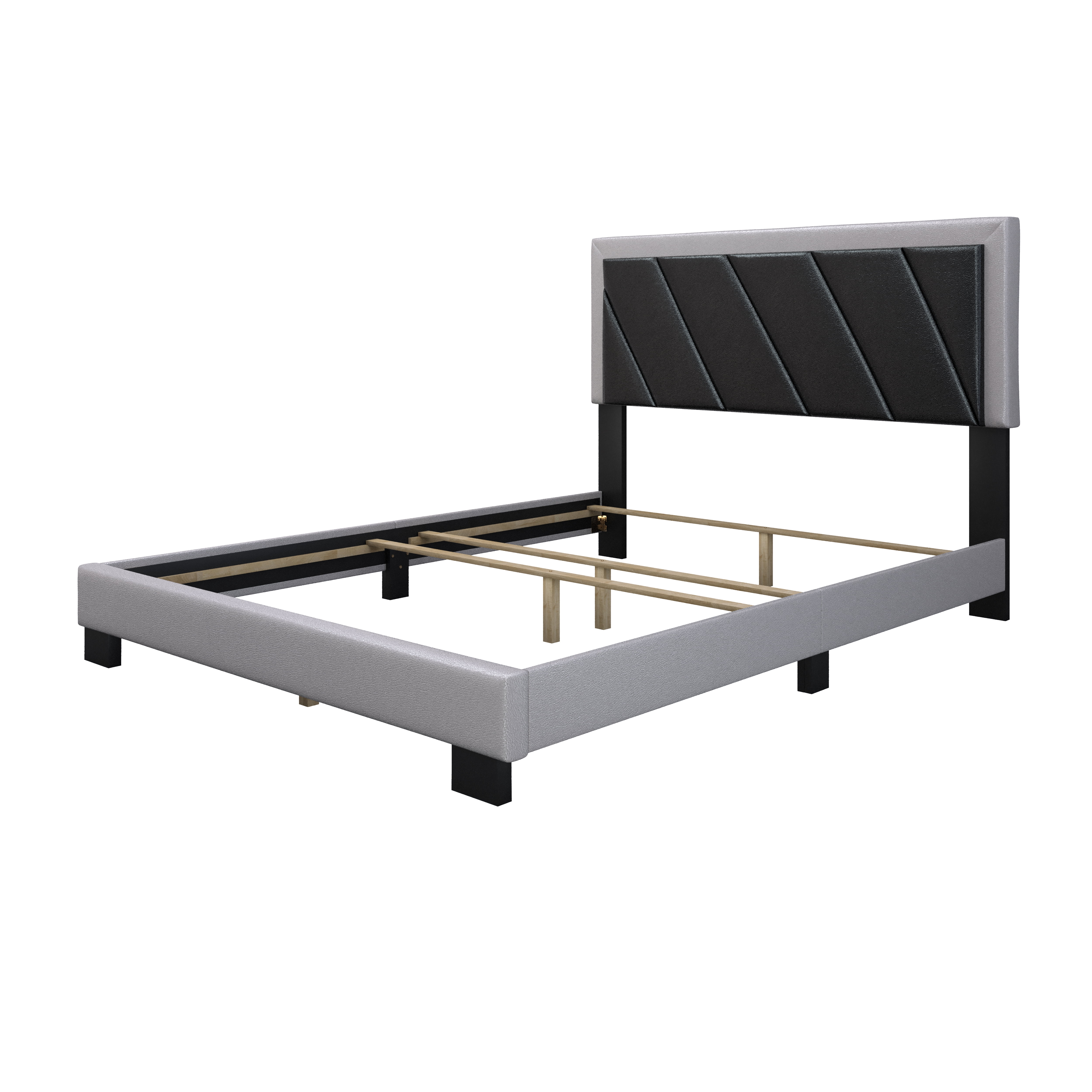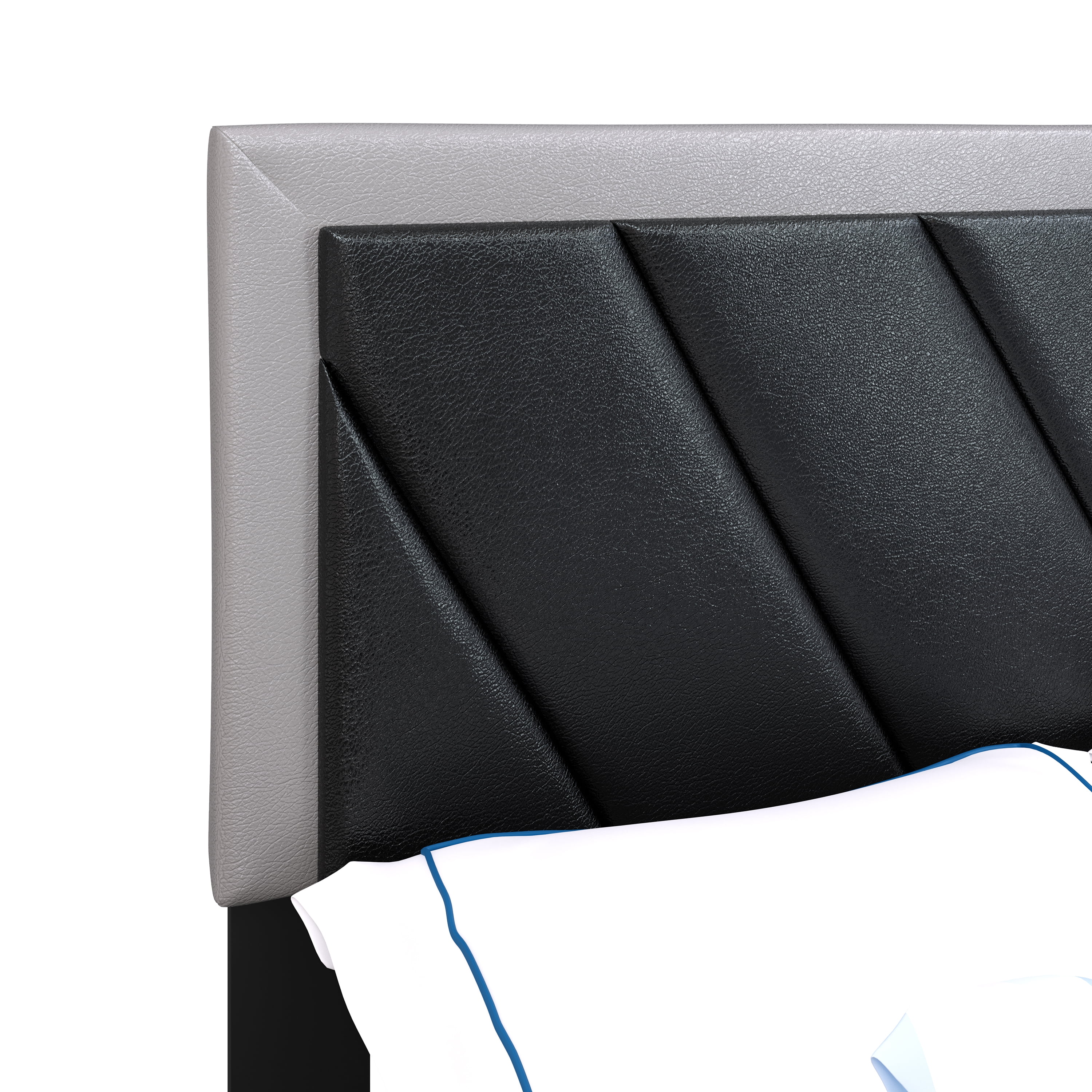 Boyd Sleep Savona Black/Gray Faux Leather King Size Fully Upholstered Platform Bed Frame with Adjustable Headboard, Qualified Box Spring or Foundation Required for Use