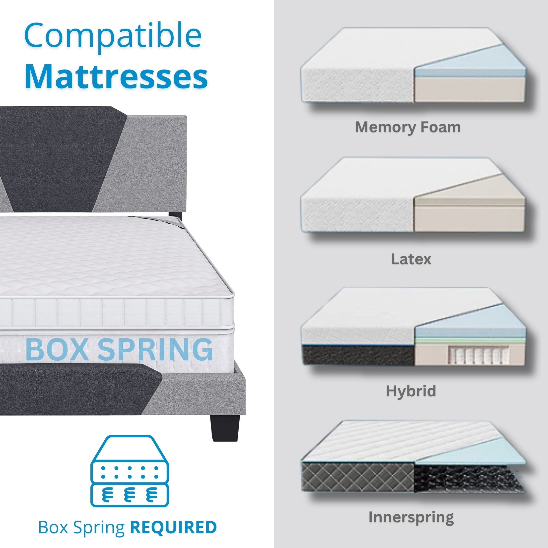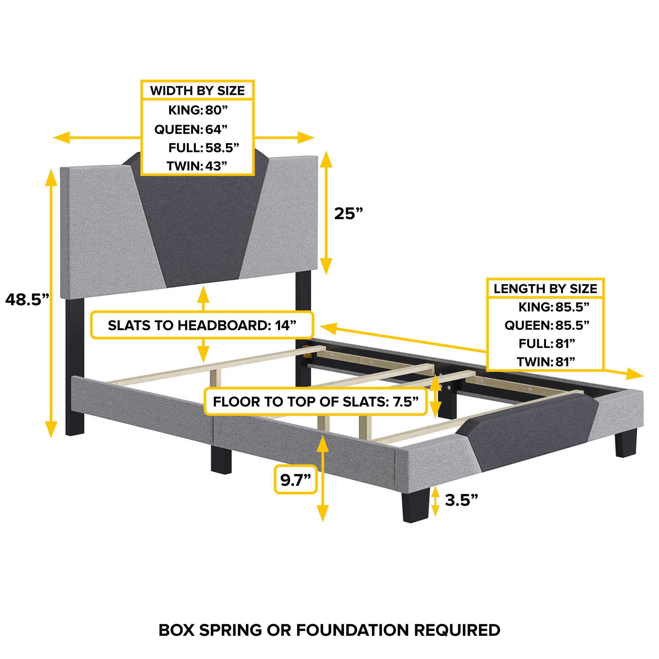 Modern Upholstered Platform Bed: The Boyd Sleep Tuscany bed frame features a linen upholstered adjustable headboard, ensuring a tailored fit to a variety of mattress thicknesses. Qualified Box Spring Required for Use: Must be paired with a qualified foundation or box spring (not included). Durable, Noise-Free Support: Crafted with a quiet, heavy-duty frame and strong wood slats, this platform bed provides sturdy support for your mattress and prevents sagging over time. Quick and Easy Assembly: All parts and tools ship zipped into the headboard to make assembly straightforward and hassle-free, completed in under 30 minutes. Versatile Compatibility: Compatible with adjustable bases, and with memory foam, hybrid, innerspring, and latex mattresses, making it a versatile choice for any sleep preference. Assembled Size: King: 48.5″ H x 80″ W x 85.5″ L, 70 lbs, Queen: 48.5″ H x 64″ W x 85.5″ L, 59 lbs, Full: 48.5″ H x 58.5″ W x 81″ L, 55 lbs Box Dimensions: King: 3.75″ H x 28.4″ W x 82.7″ L, 77 lbs, Queen: 3.75″ H x 28.4″ W x 66.5″ L, 66 lbs, Full: 3.75″ H x 28.4″ W x 61″ L, 62 lbs