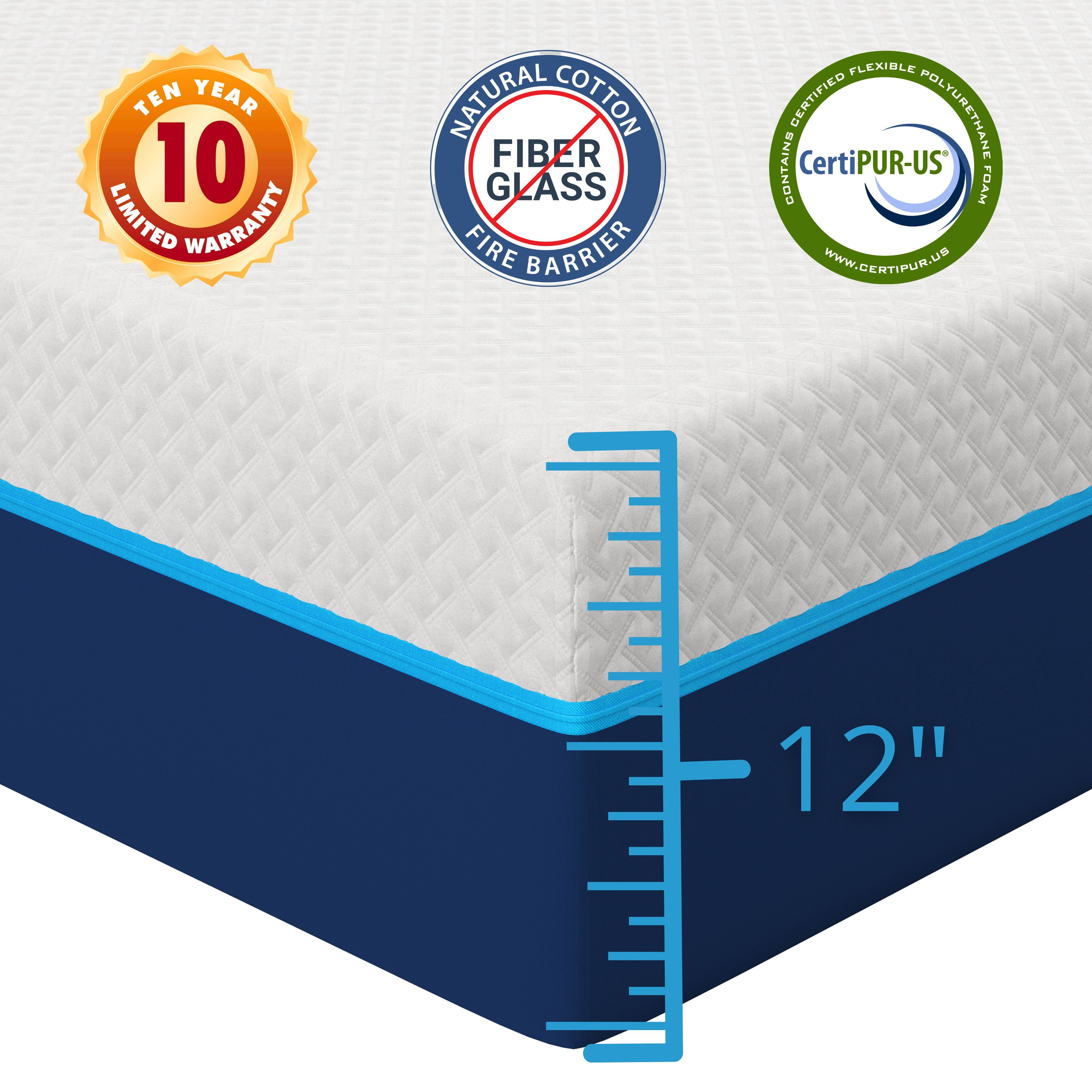 12″ hybrid innerspring mattress provides contouring posture support with pressure relief memory foam and wrapped pocket springs Pressure-sensitive memory foam molds to your body for the perfect combination of comfort and support. Targeted pressure relief gives you optimal spinal alignment, regardless of your sleeping position. Independent Tri-Zone Pocketed Springs are wrapped in fabric to provide consistent distribution of support as well as reducing motion transfer from your partner. High-density foam base provides long-lasting posture support, reducing wear and tear and preventing sag to ensure you wake up feeling refreshed every morning. Resilient Engineered Latex foam helps your mattress bounce back night after night. Heavier gauge springs in the lumbar area provide extra back support. Thicker gauge springs along the left and right sides prevent roll off and edge sag. CertiPUR-US Certified and Fiber Glass Free foams: Made from CertiPUR-US certified foams that surpass rigorous standards for flammability, VOCs, and overall foam manufacturing processes. Arrives conveniently compressed in one box, making it easy to carry inside and maneuver between rooms. Simply unpack, unroll, and expand. Please allow 24-48 hours for your mattress to fully decompress before use. Worry-free 10 years limited manufacturer’s warranty. All mattress sizes support a maximum weight of 700 lbs. Medium plush feel suits back, side, and stomach sleepers Removable and washable knit fabric cover Made In Kosovo