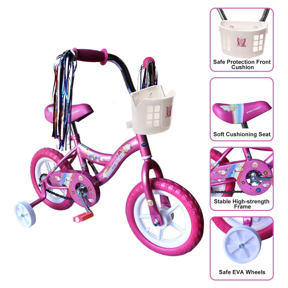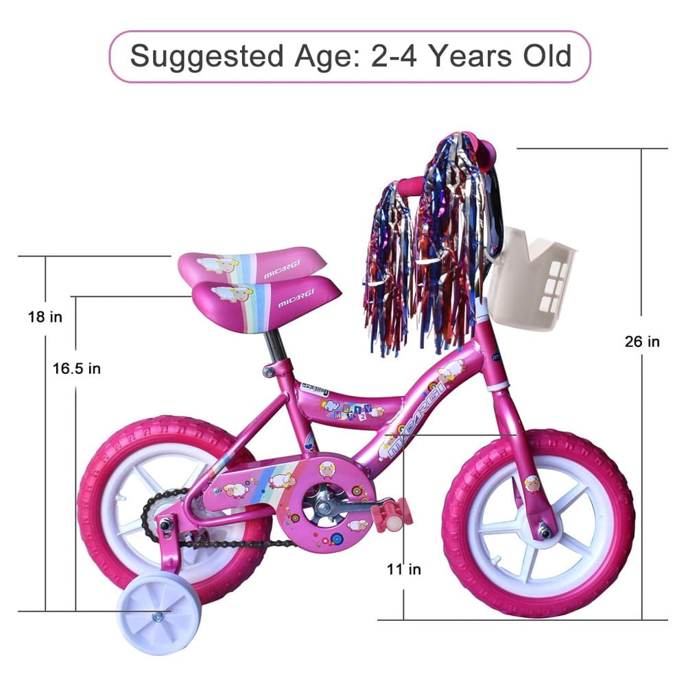 EASY TO INSTALL : Easy Assembly- 80% of the bike has been installed, you just need to put the rest of 20% parts together. Generally, it will takes 30 minutes to finish the whole installment. DURABLE & SAFE : Mainly Consist of 2 training wheels, EVA tires, cushioning padded seat, Hi-tensile steel frame and fork. Also come with two flexible pedals. CUTE & ATTRACTIVE : Shining outlook attract kids easily, come with different colors and a little different parts for boys and girls. Your kids will be more willing to ride it out and be stand out among others. BEGINNER-FRIENDLY : Easy to handle, the rear coaster brake makes it easier and safer to ride and learn; The 12? fashionable bike ideal for kids aged from 2-4 year old. GREAT GIFT IDEA : Color Pink and Purple are generally for girls, so they included a basket in front to store girl?s little things, convenient and easy-access. Great choice as a Christmas or Birthday gift for kids aging 2-4.