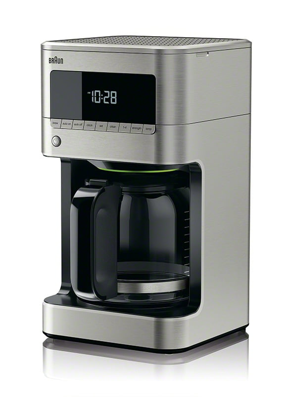 THE PERFECT CUP OF COFFEE Braun’s PureFlavor technology ensures your coffee is made at the right temperature and brewing time to extract the best coffee flavor and aroma. Expect excellent results, whether you brew a full pot or choose the 1–4 cup setting. WAKE UP TO A FRESH POT A programmable 24-hour timer means your coffee will be ready when you are. The auto shutoff feature will turn it off automatically. And the easy-to-read clock is visible from anywhere in your kitchen. RICH FLAVOR ANYTIME The Brew Pause system lets you pour a cup anytime during the brew cycle without dripping. Plus, the 12-cup FlavorCarafe seals in the fresh flavor by minimizing air exposure. YOUR COFFEE YOUR WAY A unique water level indicator lets you brew an 11-oz. mug or up to 12 cups of coffee. Choose “regular” or “bold” on the brew strength selector to savor optimal flavor in every cup SMARTER BY DESIGN The sleek, elegant design features a smaller footprint and lower profile, easy-access control panel and convenient cord storage. PURE PLEASURE WITH EVERY SIP The Braun gold-tone filter, unlike paper, enhances the flavor of your coffee by allowing essential oils to reach your cup. A charcoal filter purifies brewing water, and a cleaning feature can be customized to different water hardness levels.