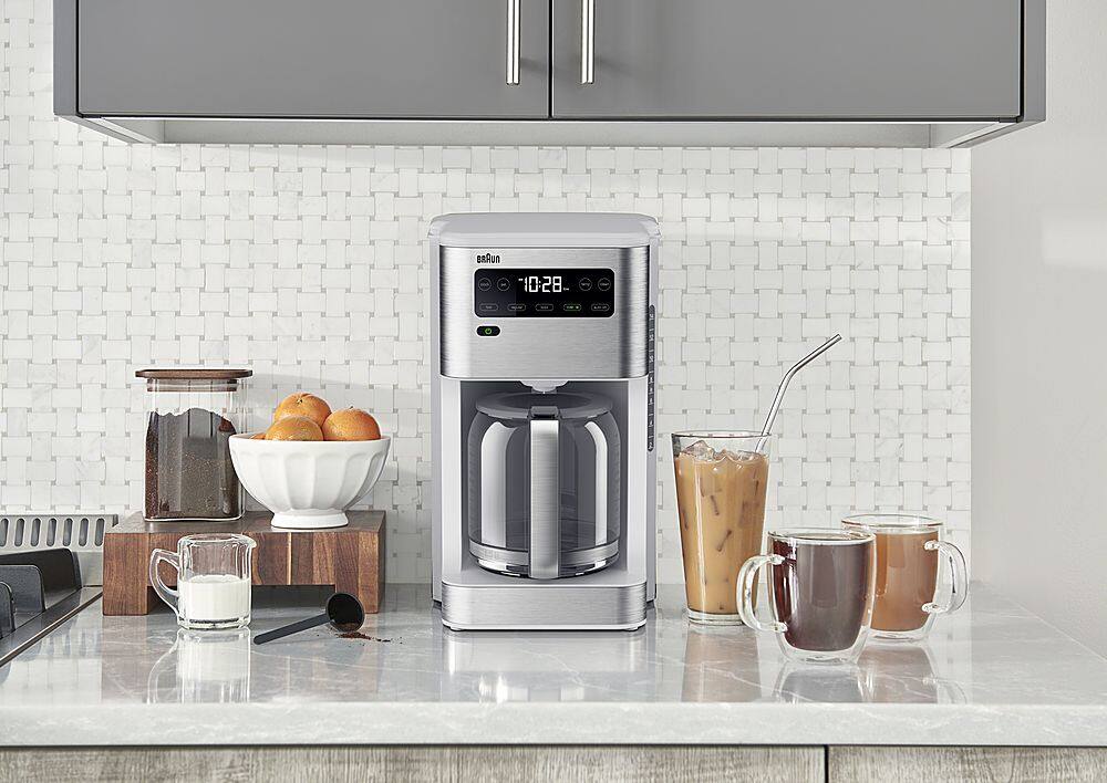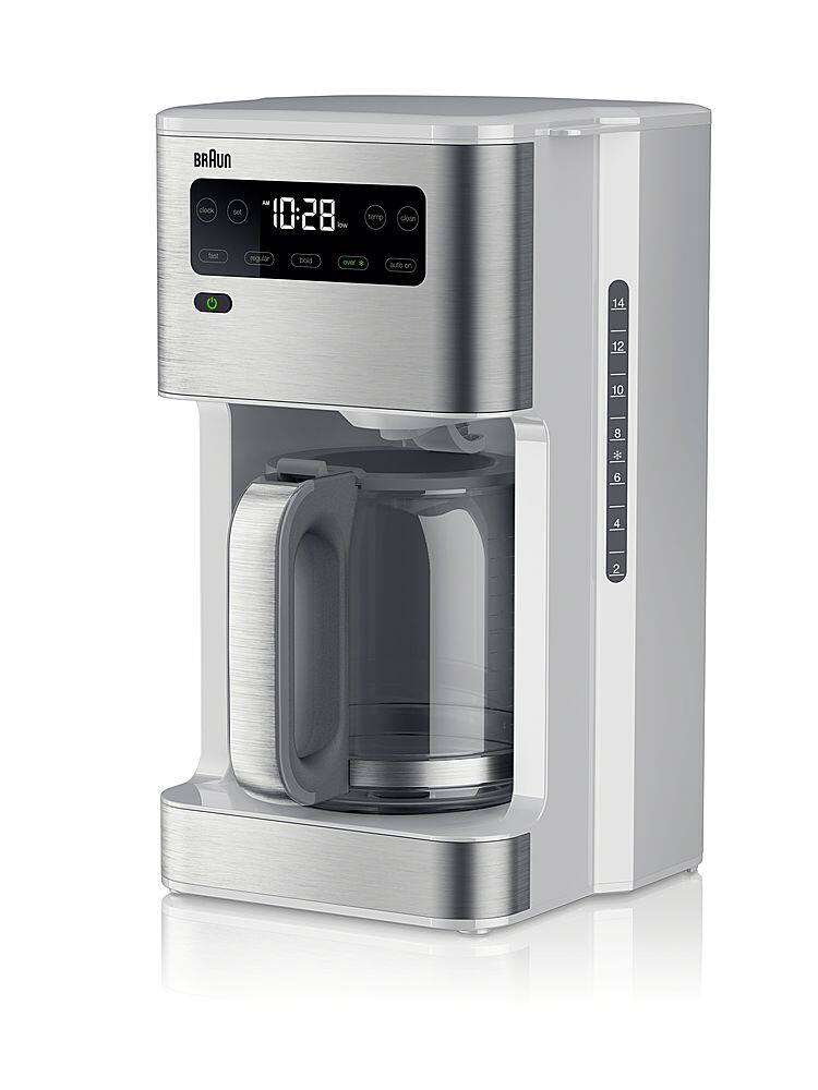 Introducing the all-new PureFlavor 14-cup Coffee Maker by Braun. Powered by innovative Fast Brew technology, the machine rapidly brews 14-cups of coffee up to 20% faster.* The intuitive display features a simplified touch-screen interfaces for all four brewing options—fast, regular, bold or over ice. The refined brewing process retains the coffee’s full-bodied aromas even when poured over ice, so no sip ever tastes watered down. The stainless steel accented FlavorCarafe seals in the flavor while keeping warm for up to 4 hours on the warming plate. When it comes to coffee, the PureFlavor Coffee Maker is truly exceptional in every way. *Compared to Braun KF7170 on Bold