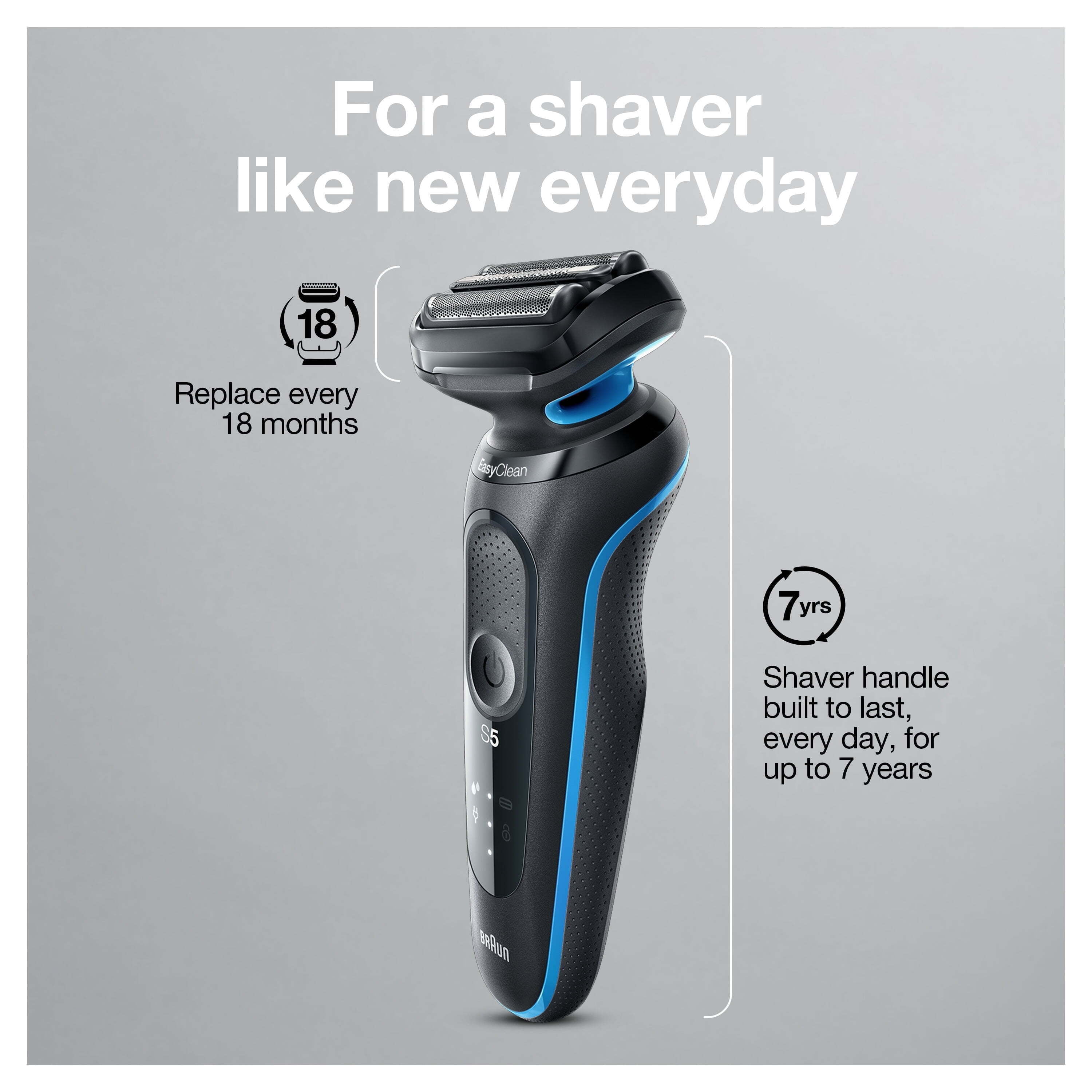 Braun Series 5 5018s Men’s Electric Shaver with Precision Trimmer Attachment, Cleaning Brush and Smart Plug Designed with 3 flexible blades that adapt to your facial contours for a close shave made easy AutoSense technology reads and adapts to your beard density to ensure a powerful shave on even the densest beards EasyClick compatible with multiple trimmer attachments so you can upgrade your face and beard shaver for more grooming needs Battery on rechargeable shavers for men lasts for up to 3 weeks of shaving (50 minutes) or you can quick-charge for one shave in only 5 minutes Wet and dry men’s electric razors are 100% waterproof; easy to clean; and can be used with foam, gel or even under the shower This electric razor features a new ergonomic handle with a slim design and a soft grip for an effortless shave