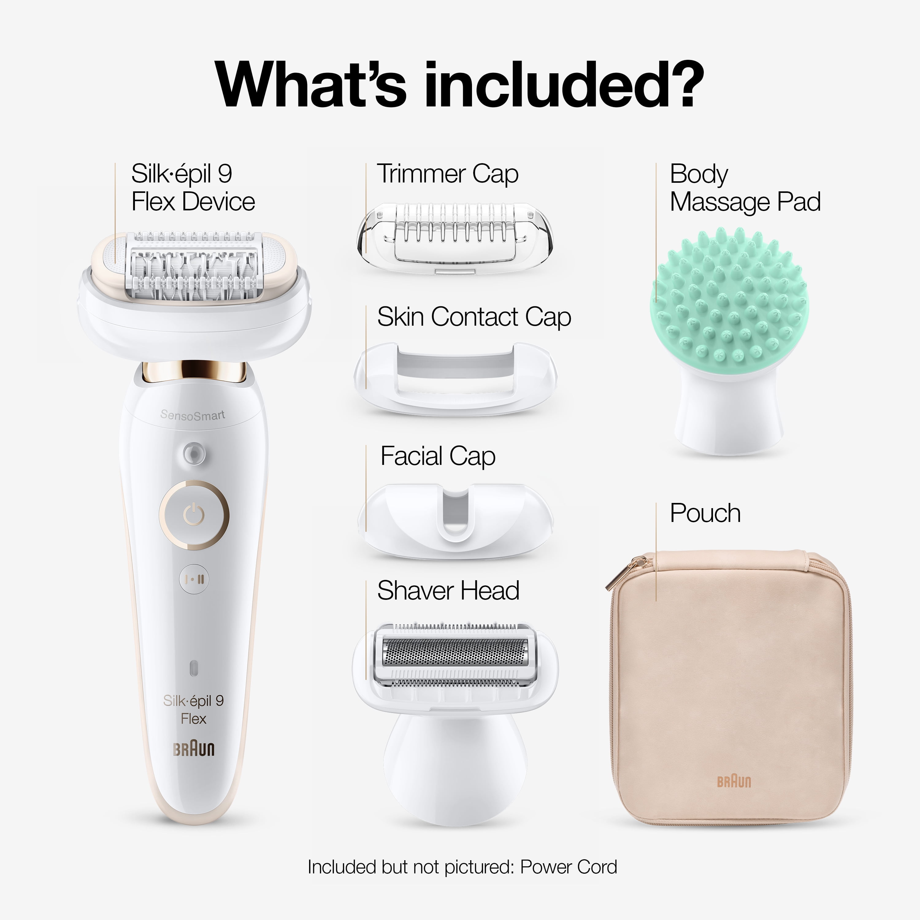 The Braun Silk-epil 9 Flex 9-020 is the world’s 1st epilator for women with a fully flexible head, for effortless hair removal. Enjoy weeks of salon-smooth skin thanks to Micro-Grip technology and a 40% wider head that removes even the shortest hairs, down to 0.5mm. Includes additional shaver and trimmer head and massage cap for fewer skin impurities.Box includes: 1 X Epilator1 X Shaver Head1 X Trimmer Head1 X Body Massage Pad1 X Pouch1 X Cleaning Brush1 X Charger