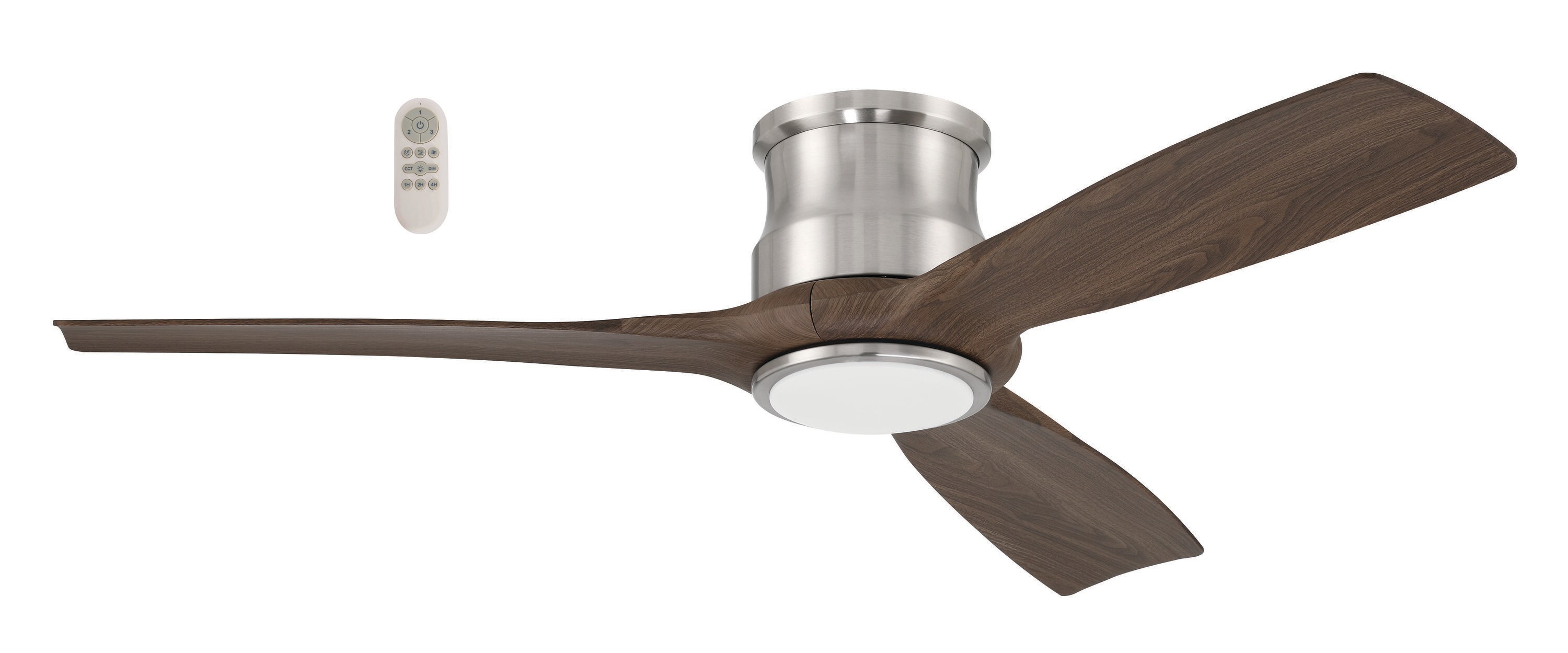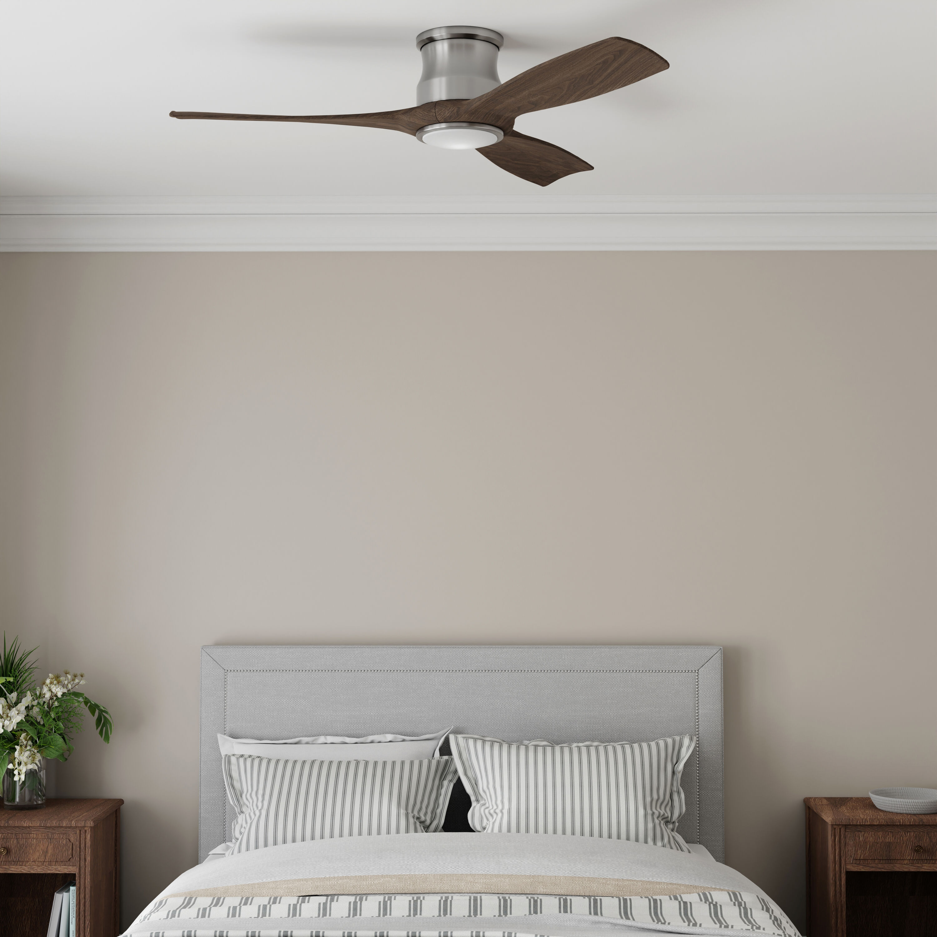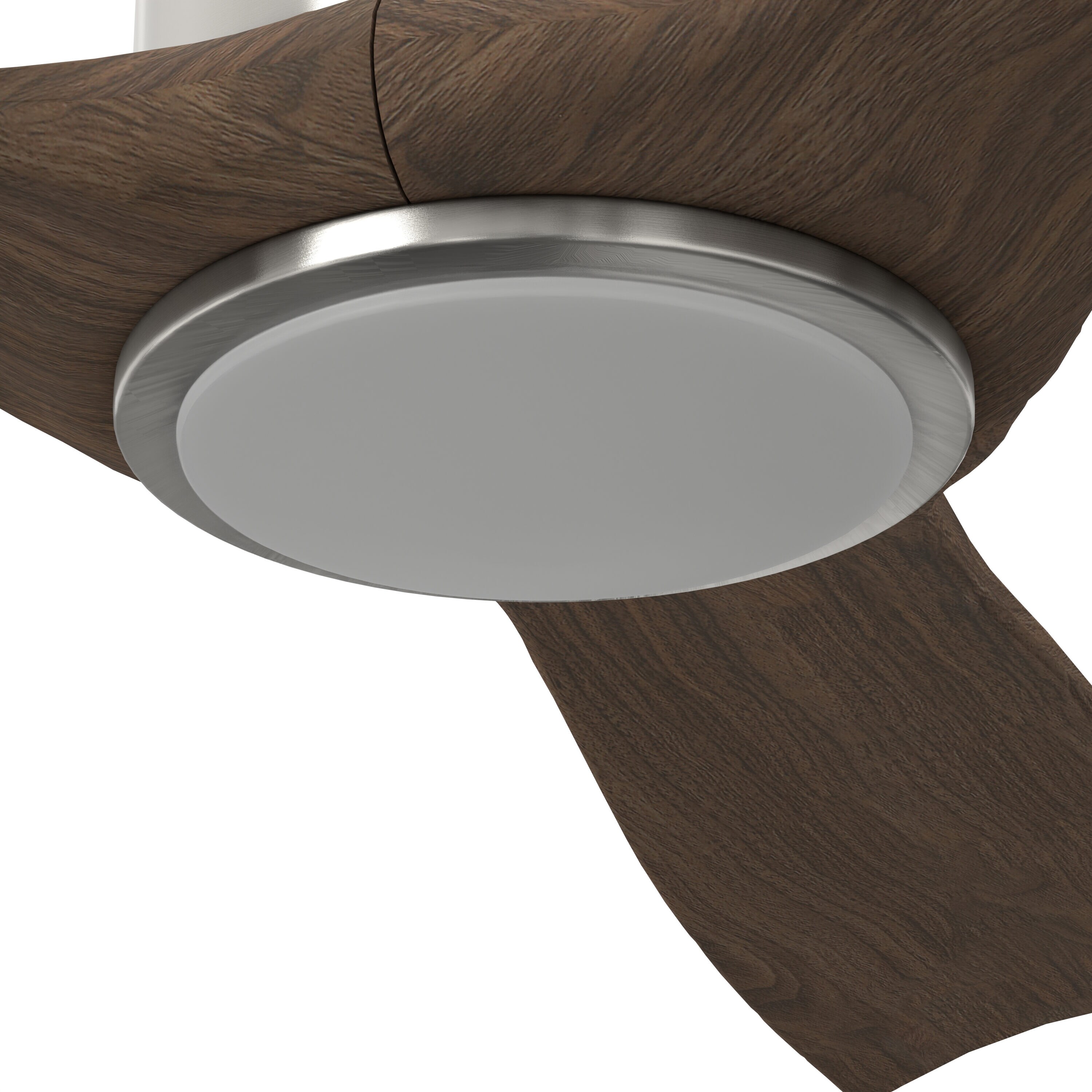 This brushed nickel ceiling fan with a propeller silhouette, brings a unique modern style. The included remote allows for easy and convenient control from anywhere in the room.