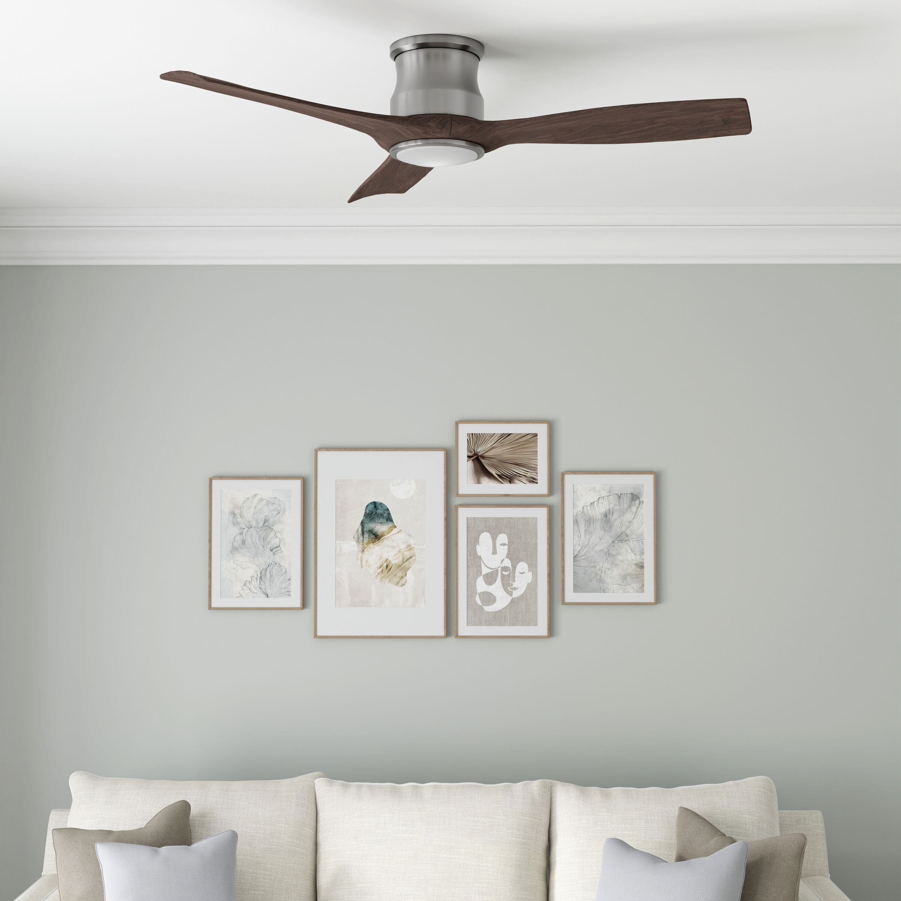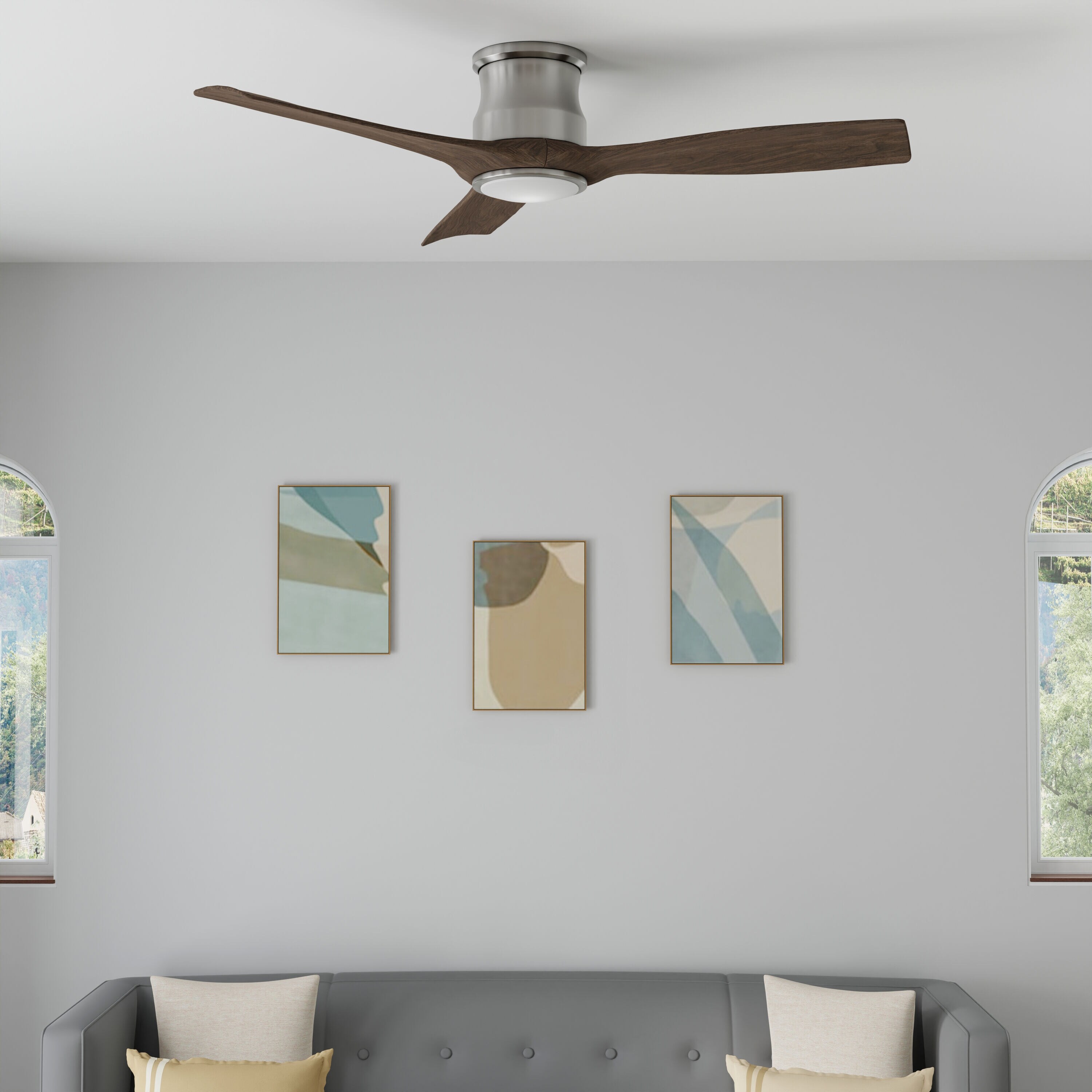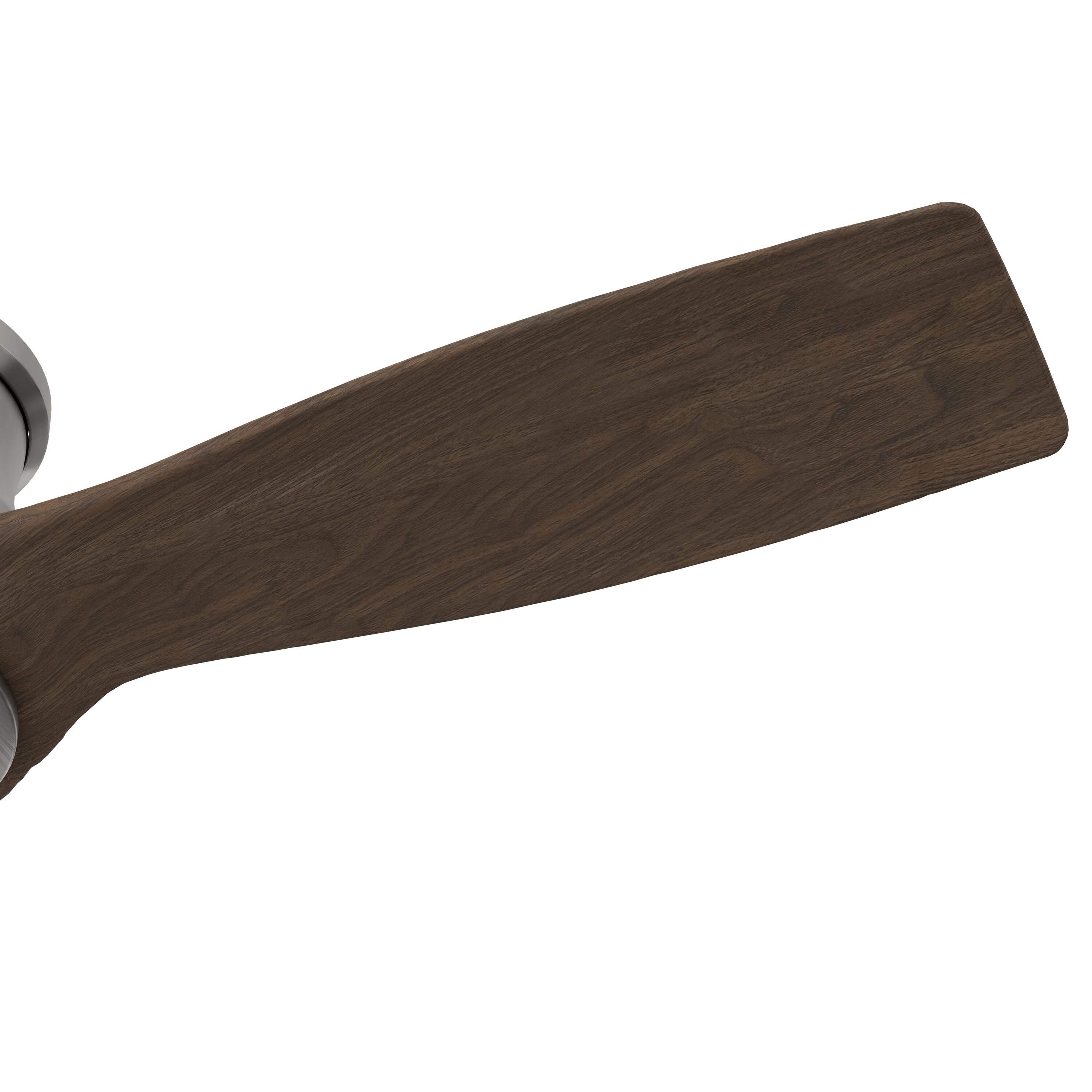 This brushed nickel ceiling fan with a propeller silhouette, brings a unique modern style. The included remote allows for easy and convenient control from anywhere in the room.