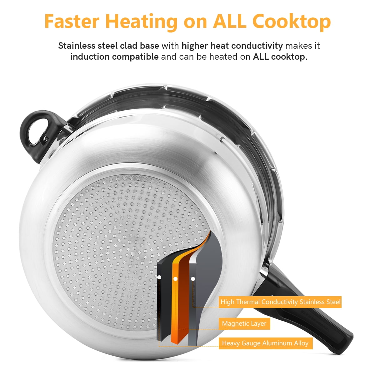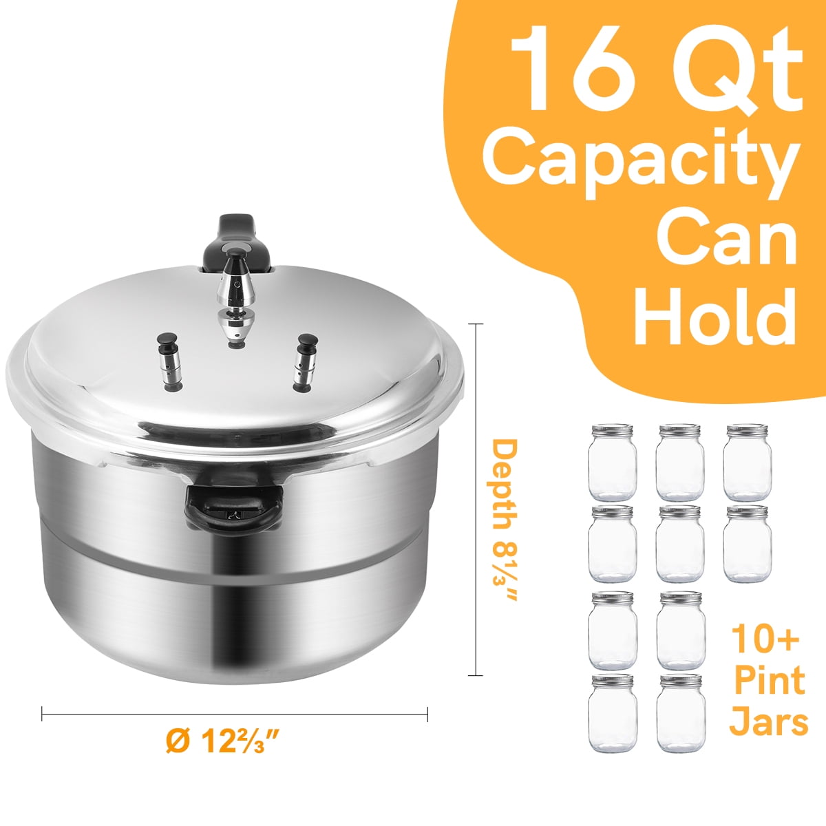 BreeRainz 16 qt Aluminum Stovetop Pressure Canner High-density aluminum alloy construction for enhanced durability and heat conductivity Designed for stovetop use; reaches over 240℉ for efficient cooking 16 Qt capacity accommodates 10+ pint jars for canning Multiple safety features ensure practical and controllable pressure cooking Long handle for easy maneuverability during routine cooking and canning Cooks ingredients 70% faster than traditional cookware, saving time Maintains a steady 10 PSI pressure for optimal cooking of roasts, soups, stews, and beans Equipped with dual float safety valves for added protection against overpressure Features a triple protection system with a float valve, safety valve, and unique self-locking mechanism Made from food-grade aluminum alloy for superior heat conductivity and resistance to corrosion and deformation Induction compatible with a stainless steel clad base for even heat distribution Includes an exclusive anti-block cover to prevent valve obstruction from food particles Auto-lock system prevents lid opening until internal pressure has safely dropped Safety window design allows gasket to pop out during extreme overpressure, aiding in pressure release