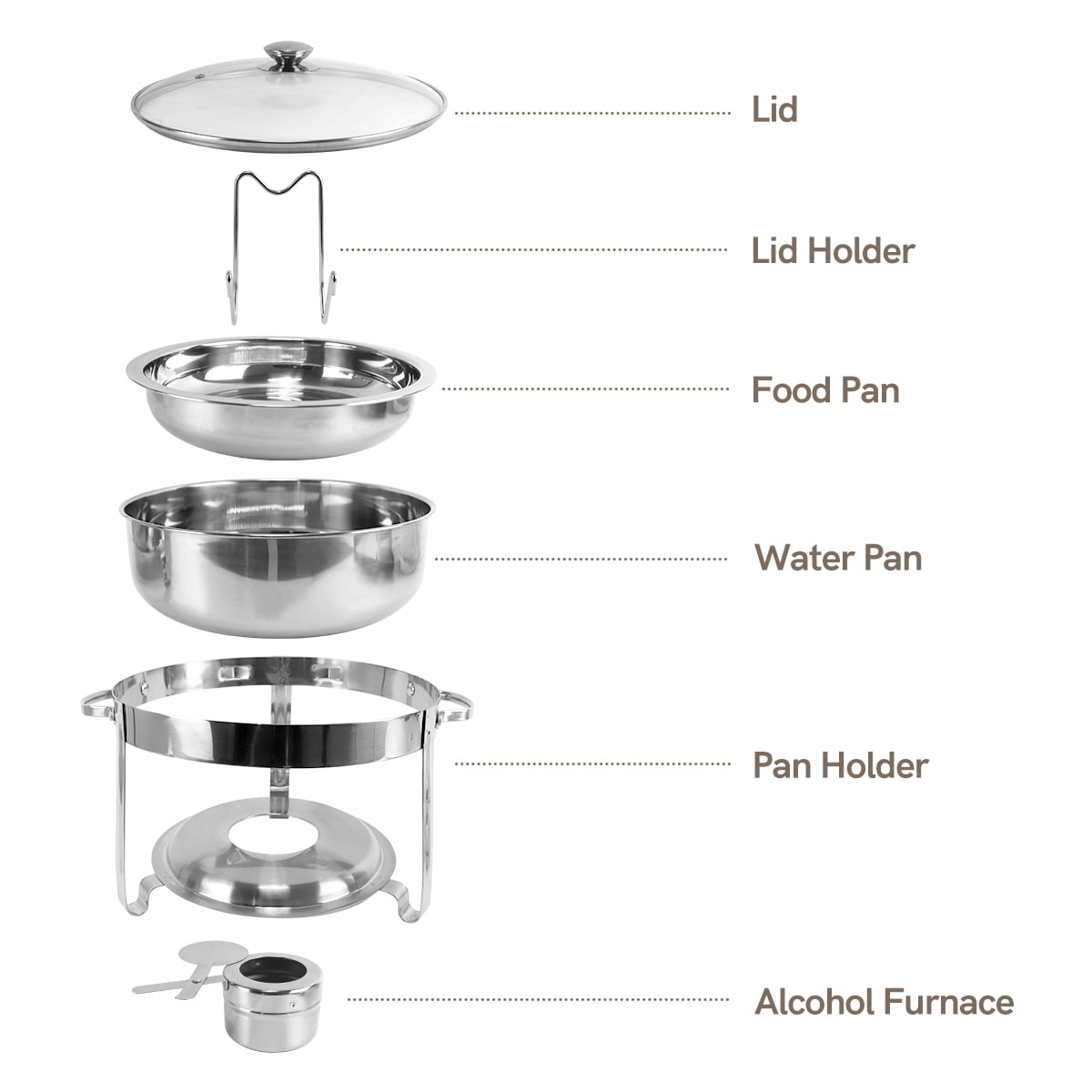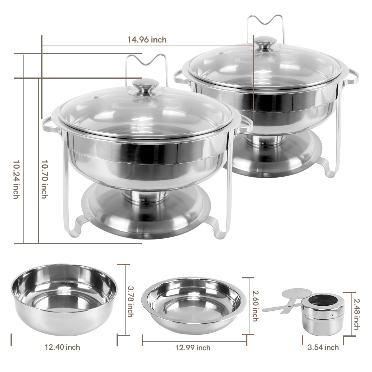 BreeRainz 2 Packs 4 QT Round Chafing Dish Buffet Set, Stainless Steel Buffet Server and Warmer