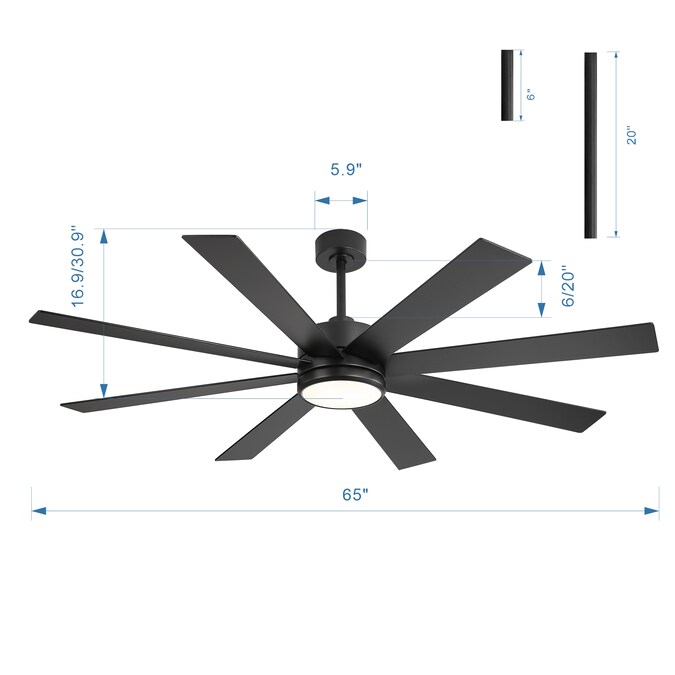 - Includes 6 in” and 20 in” downrod to ensure proper ceiling clearance and optimize airflow.