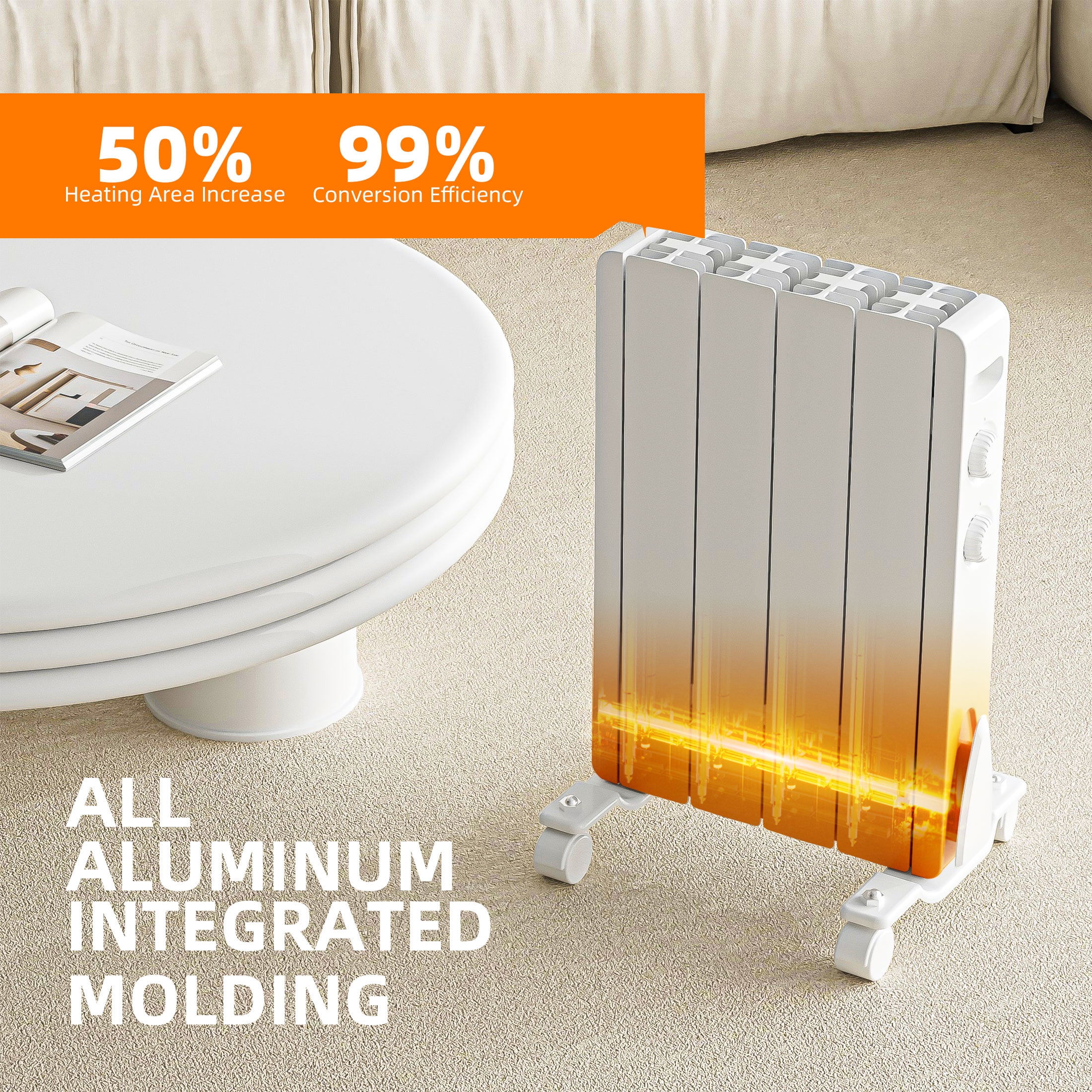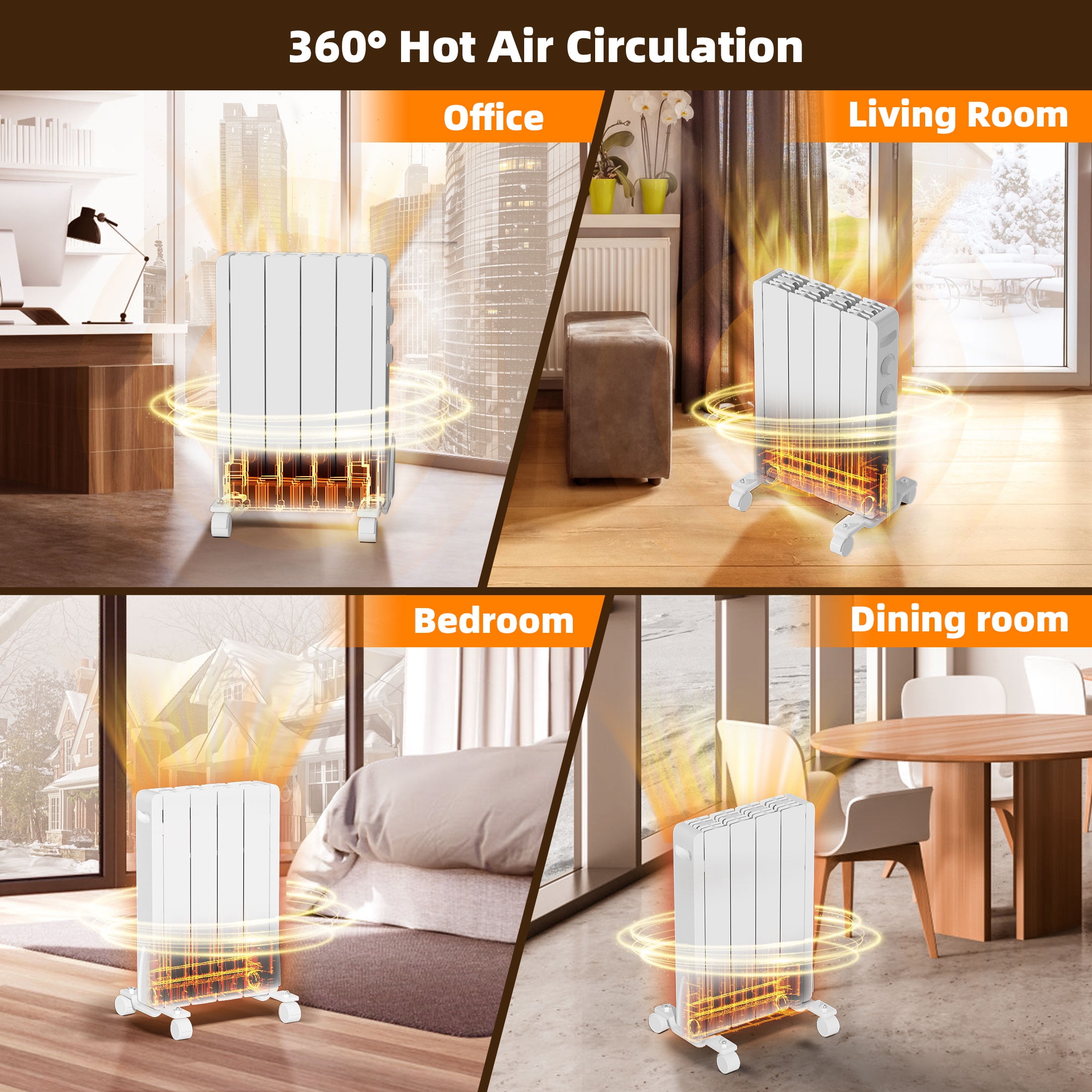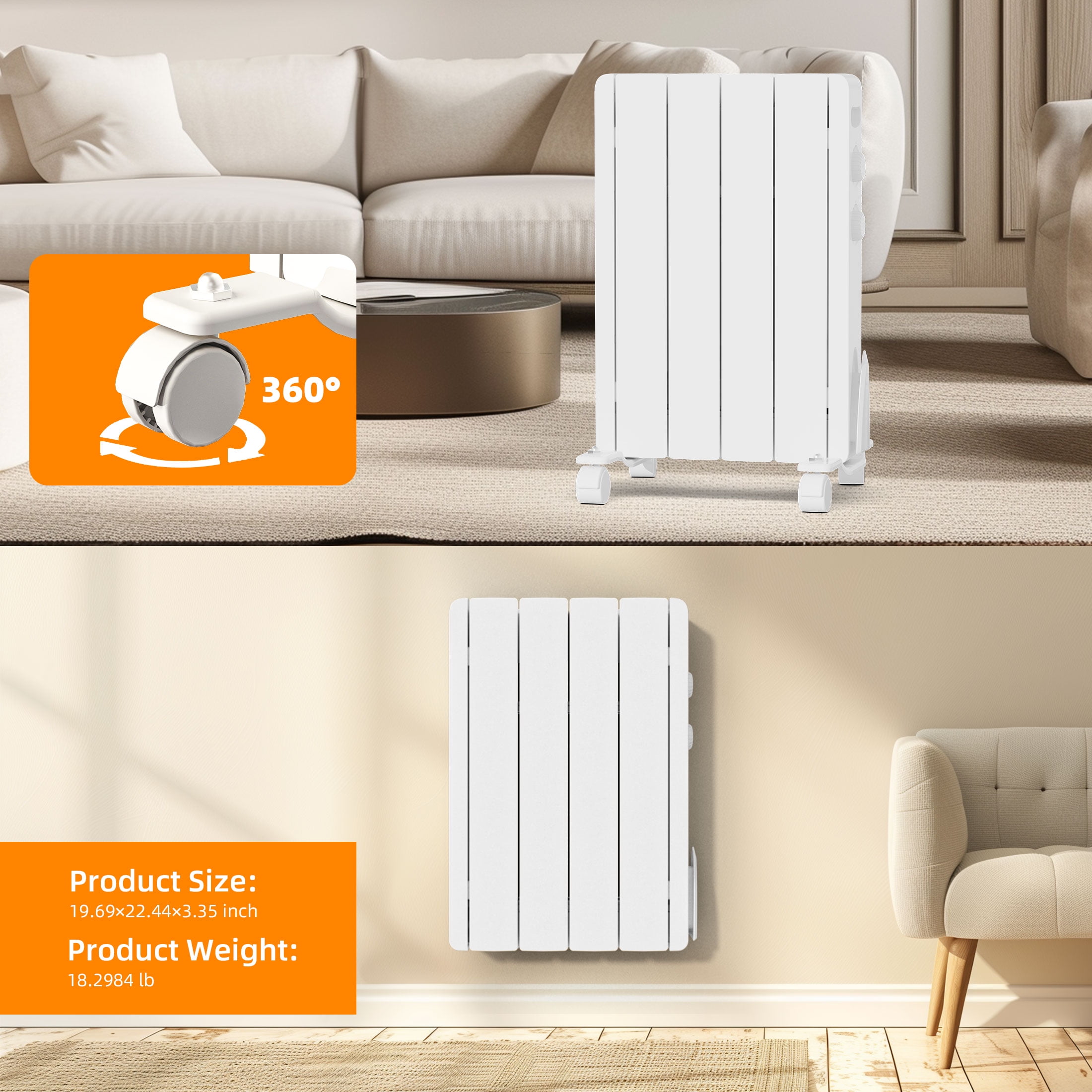【Safety Guaranteed】Stay warm and safe approved BREEZEHEAT. It has tip-over and overheat protection, V0 flame-retardant materials, and a child lock function to prevent accidents and fires. Enjoy the cozy heat without any worries. 【Quiet and Efficient】Experience quiet and comfortable warmth in a 350 square foot space, without any noise interference, and operate at 0 decibels. Very suitable for bedrooms or offices, the ultra-thin and compact design ensures that it does not take up much-needed space. 【Easy-to-Use】The user-friendly knob control panel lets you adjust the thermostat, set a 24h timer and schedule an appointment. Equipped with a child lock, easy and convenient to operate. 【Versatile and Stylish】With a sleek aluminum frame and white finish, this panel heater blends in with any decor. It can be mounted on the wall with the included hardware or moved around with its universal wheels. Suitable for any space, from bedroom to office. We offer a 30-day exchange /refund policy and a 1-year warranty service to ensure that you are fully satisfied with your Aluminium Radiator purchase. If you have any questions or concerns, Don’t hesitate to reach out to us