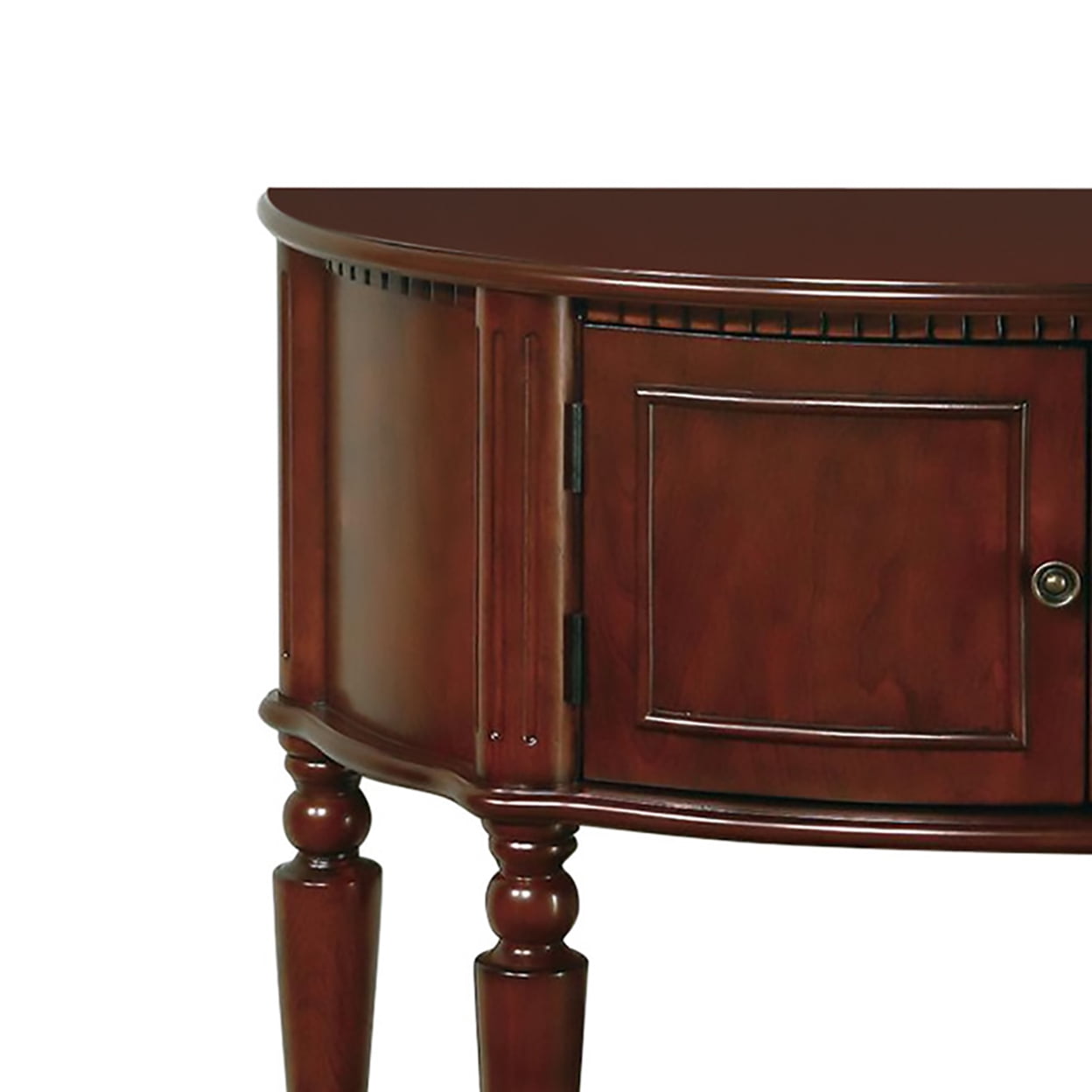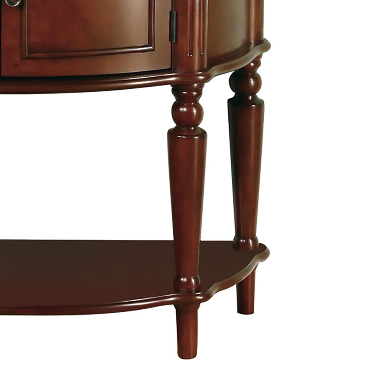 Set includes: One (1) console table Traditional style comes to the home or office with this console table Demilune shape in rich brown finish add warmth to your space Traditional turned legs add class and elegance