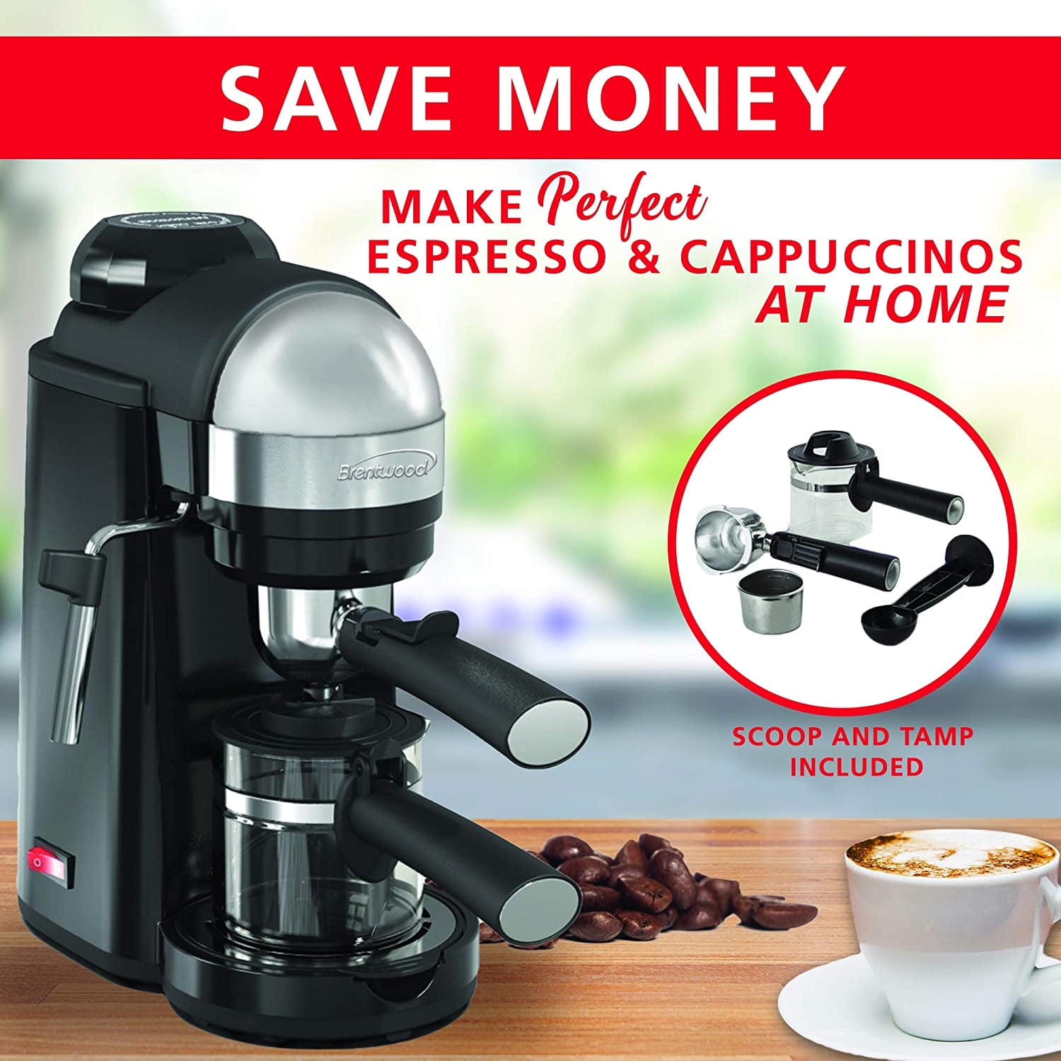 Brentwood 800 Watt Cappuccino Brewer and Espresso Maker w/ Frothing Wand, Black