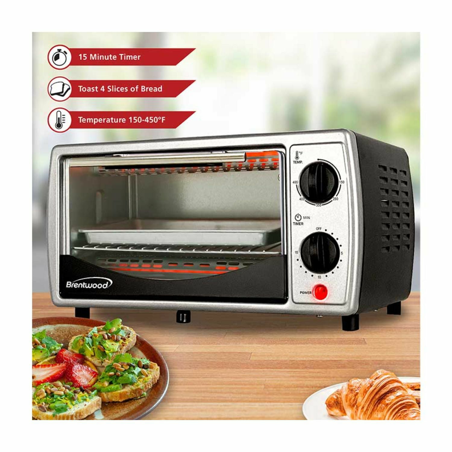 Brentwood Appliances TS-345B Stainless Steel 4 Slice Toaster Oven – Black, Silver