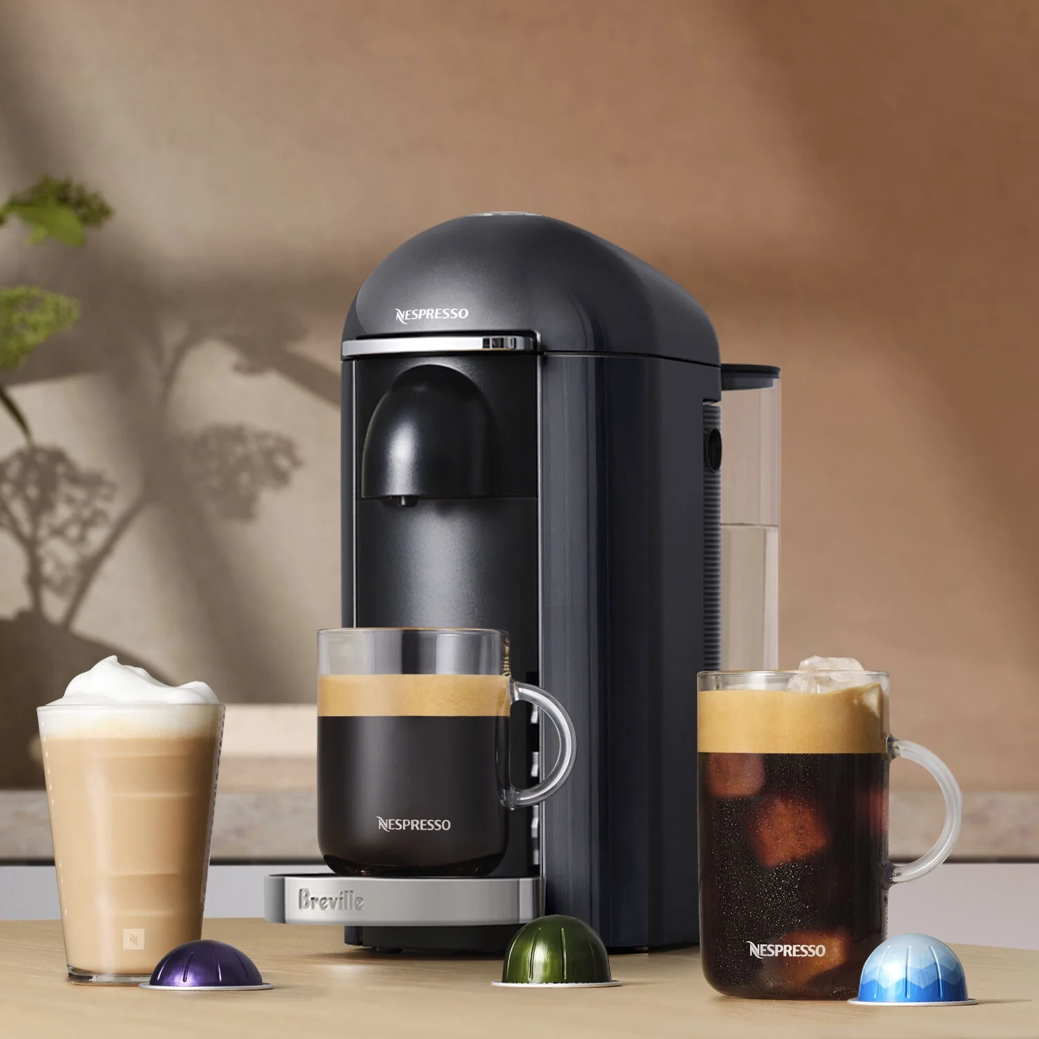 Nespresso Vertuo Plus Deluxe Coffee & Espresso Single-Serve Machine in Piano Black Single-serve machine with Centrifusion technology to gently brew both coffee and espresso Designed for Nespresso Vertuo capsules (12-capsule tasting pack includes 4 espresso capsules and 8 regular coffee capsules) Simple and convenient 1 button operation Two capsule sizes: a large one for coffee and a small one for espresso