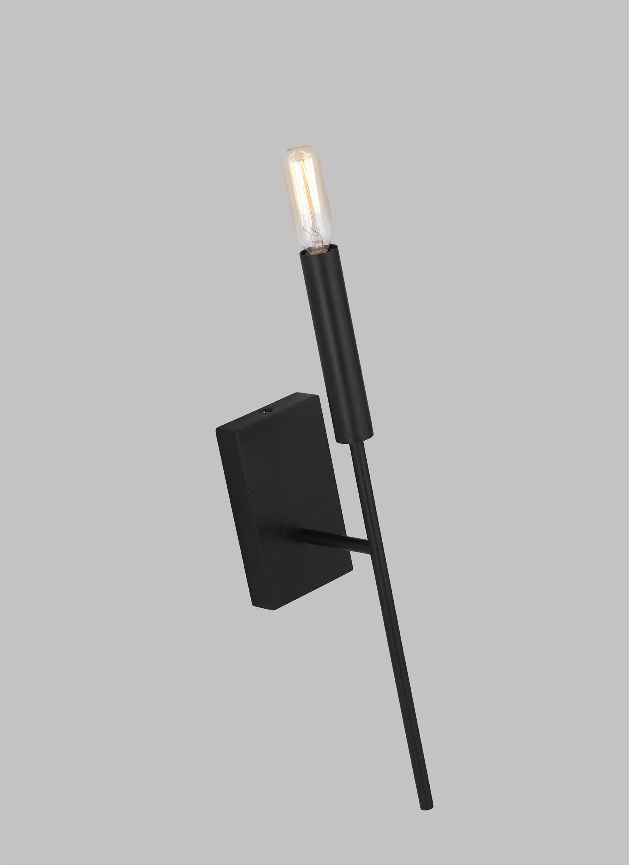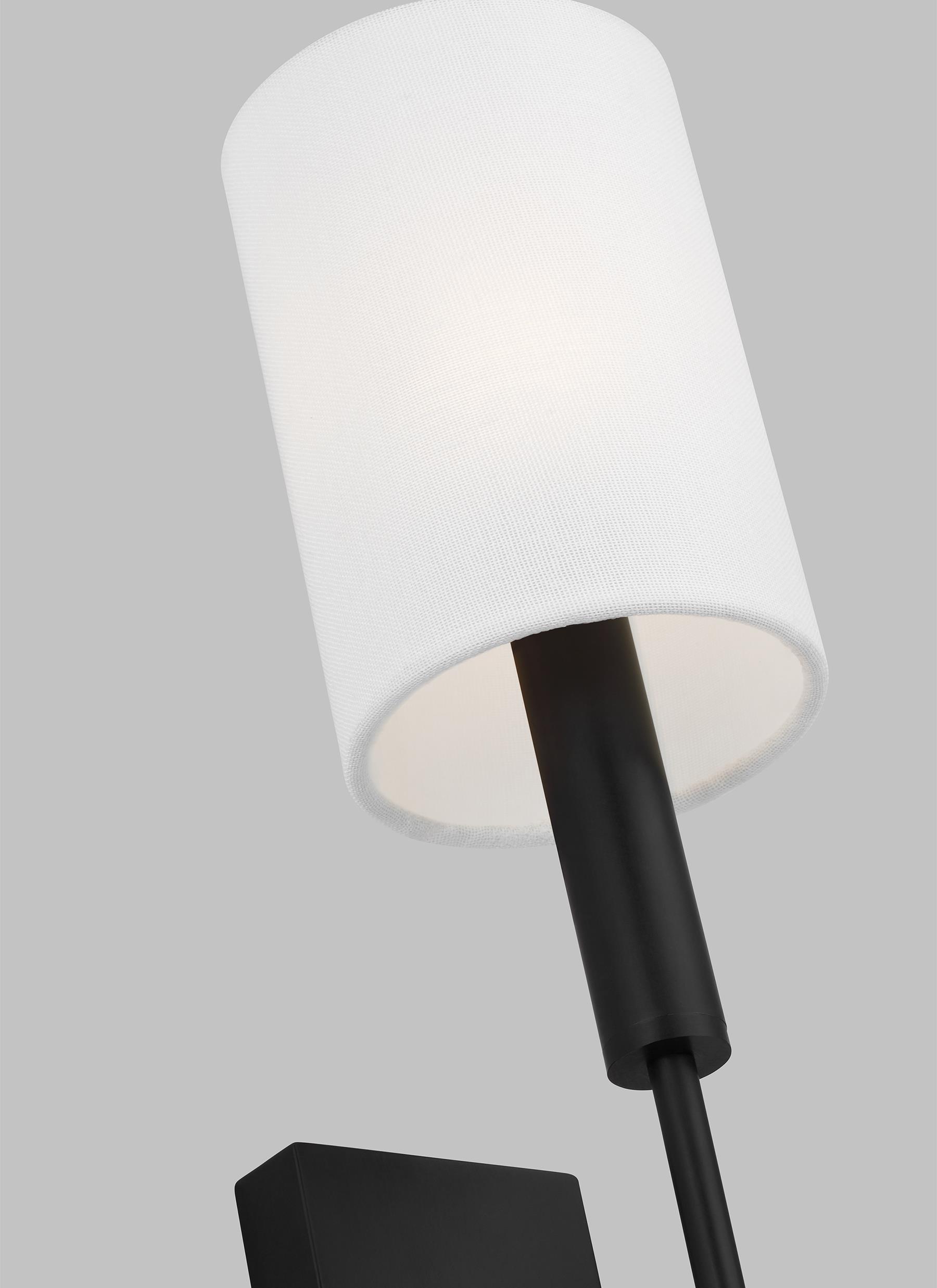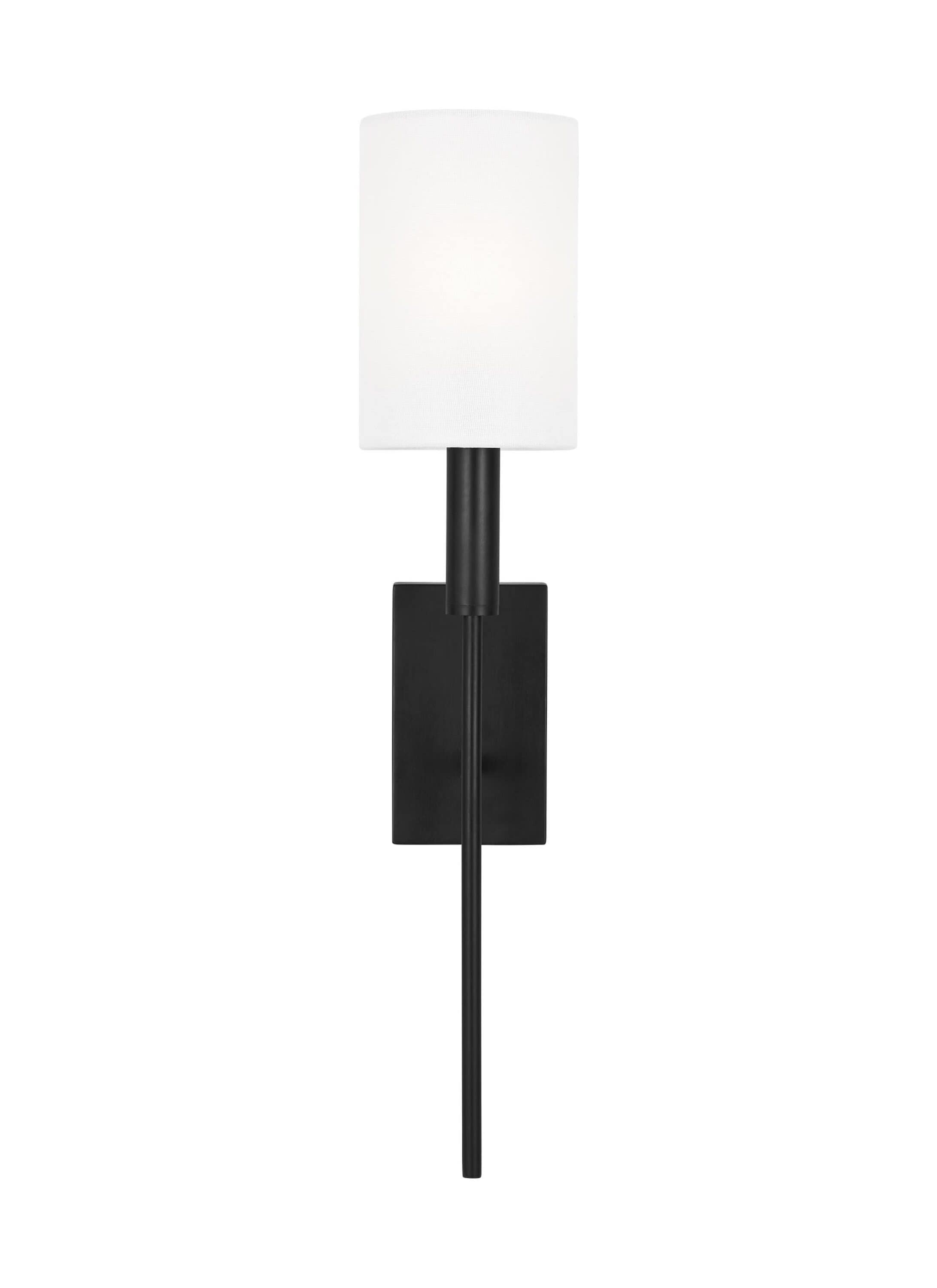 The Brianna one light wall sconce by Ellen DeGeneres in Aged Iron offers shadow-free lighting in your powder room, spa, or master bath room. Brianna’s graceful, seamless curvature and elongated tubular arms lend fluidity and modern appeal to this classic minimalist silhouette. Available in rich Aged Iron, Burnished Brass and Polished Nickel finish. Brianna wall sconces include cylindrical shades in fresh White Linen. We are expanding this top selling series by Ellen DeGeneres to include a tail sconce in three finishes.