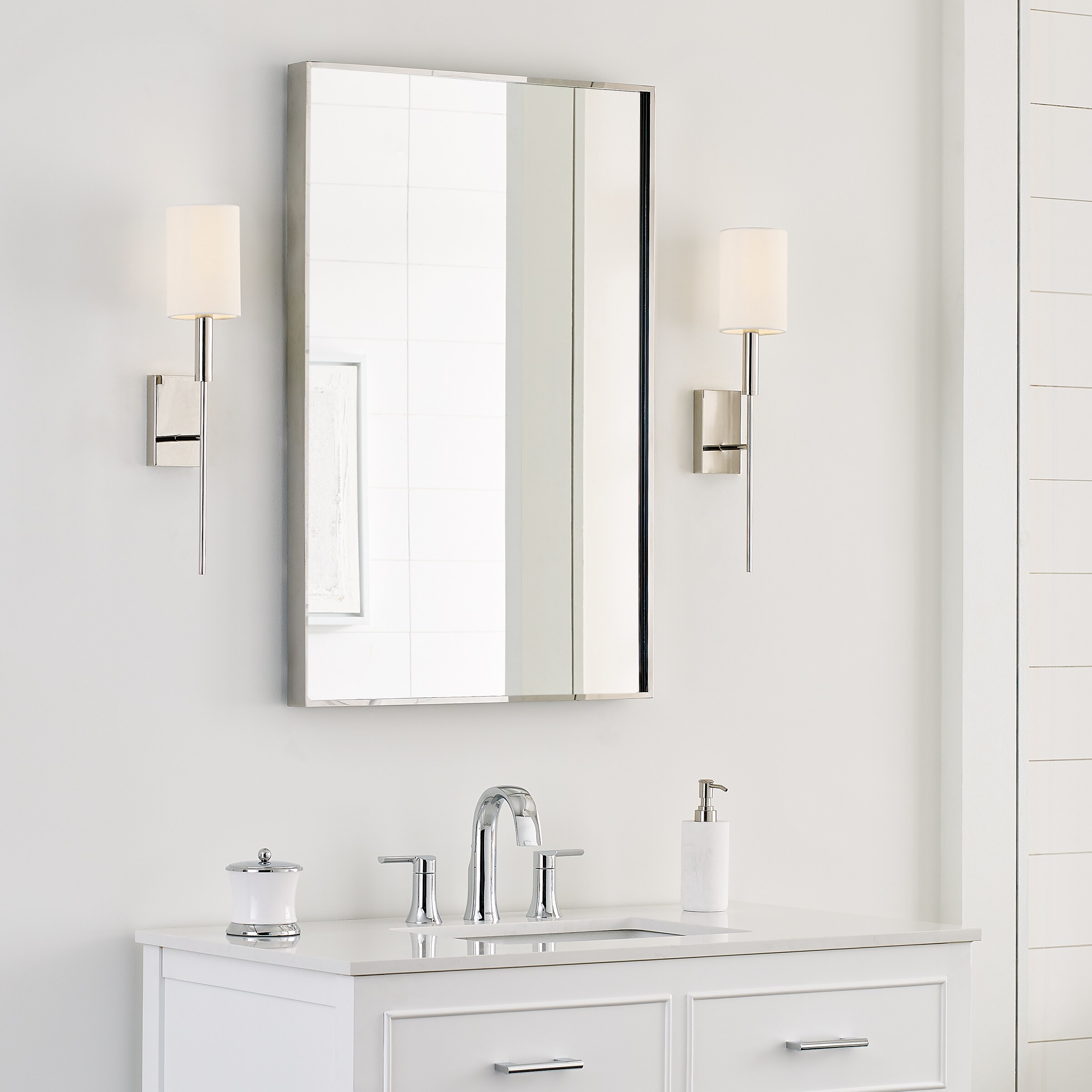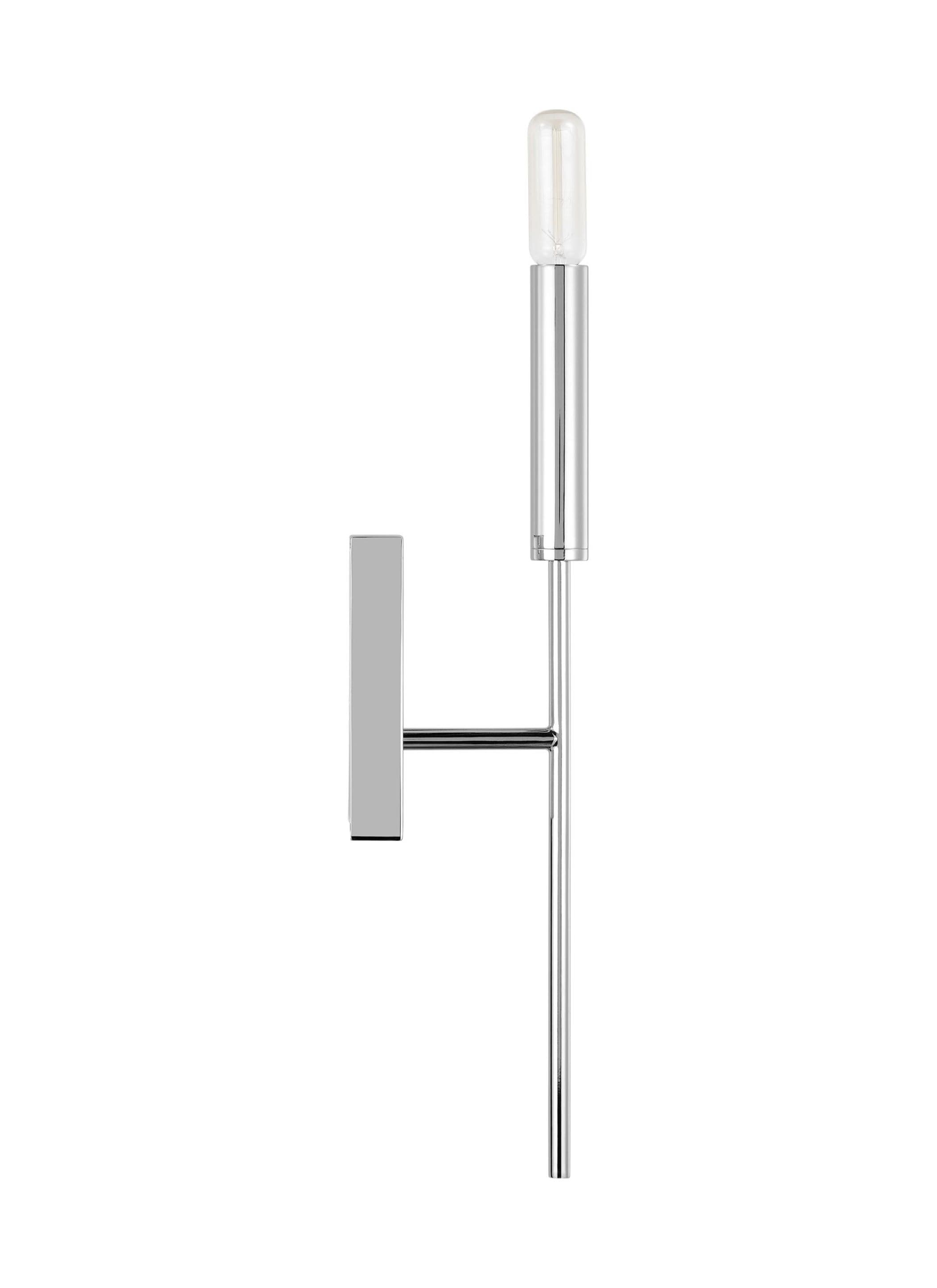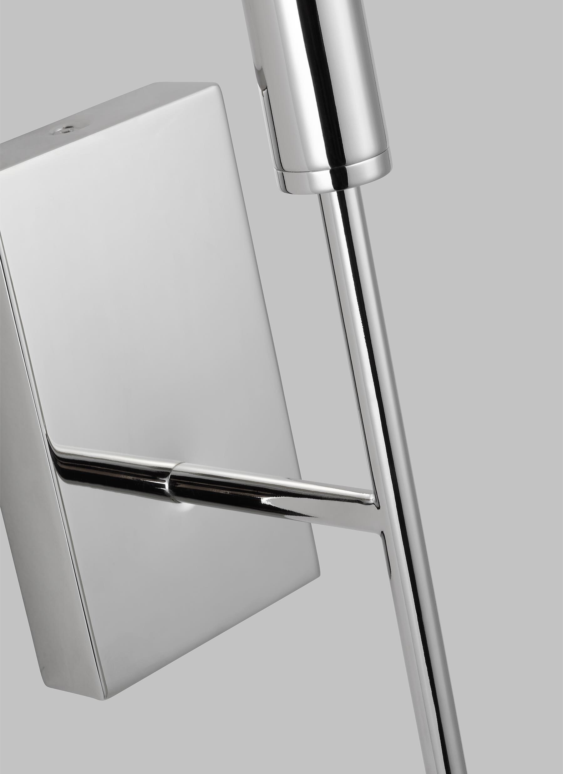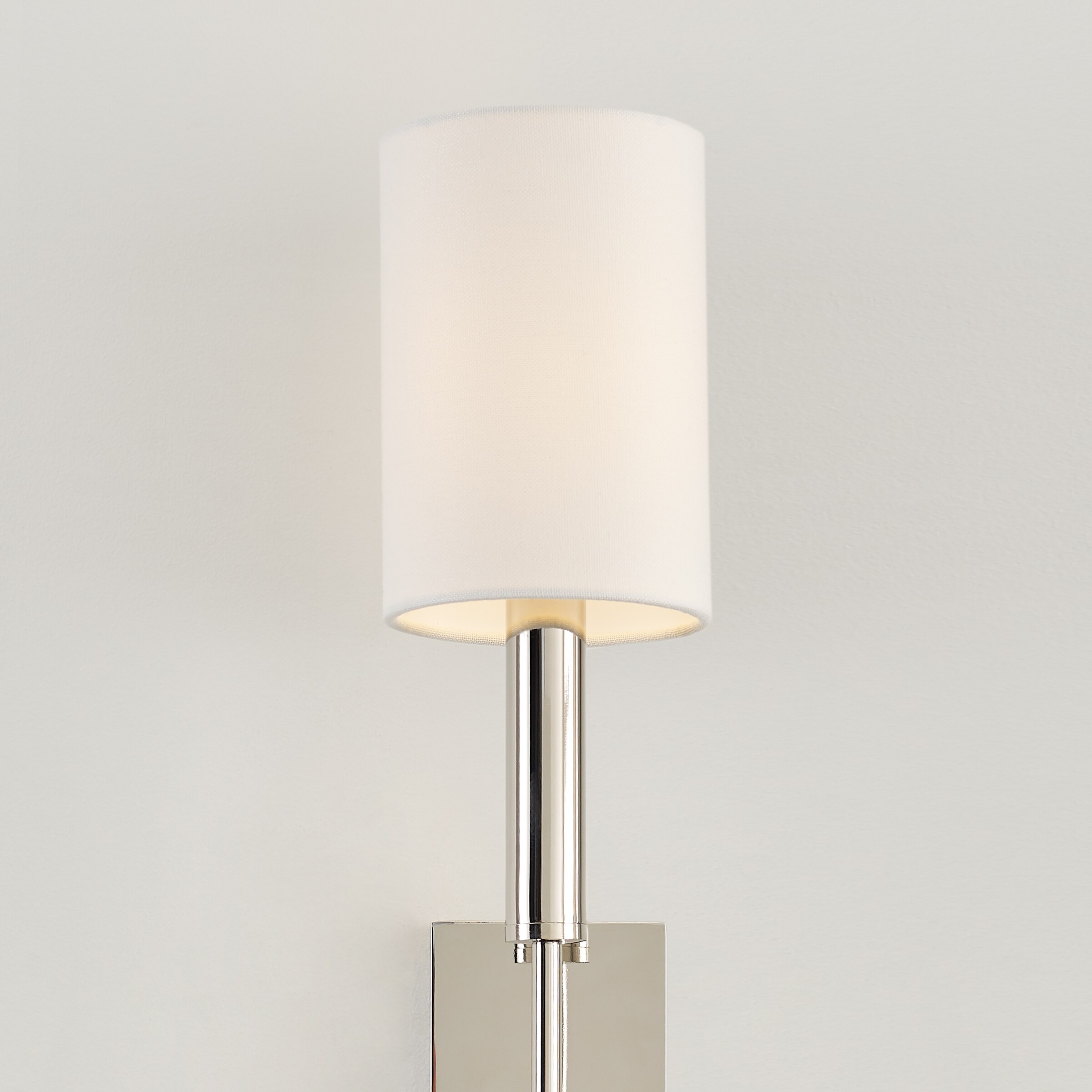 The Brianna one light wall sconce by Ellen DeGeneres in Polished Nickel offers shadow-free lighting in your powder room, spa, or master bath room. Brianna’s graceful, seamless curvature and elongated tubular arms lend fluidity and modern appeal to this classic minimalist silhouette. Available in rich Aged Iron, Burnished Brass and Polished Nickel finish. Brianna wall sconces include cylindrical shades in fresh White Linen. We are expanding this top selling series by Ellen DeGeneres to include a tail sconce in three finishes.