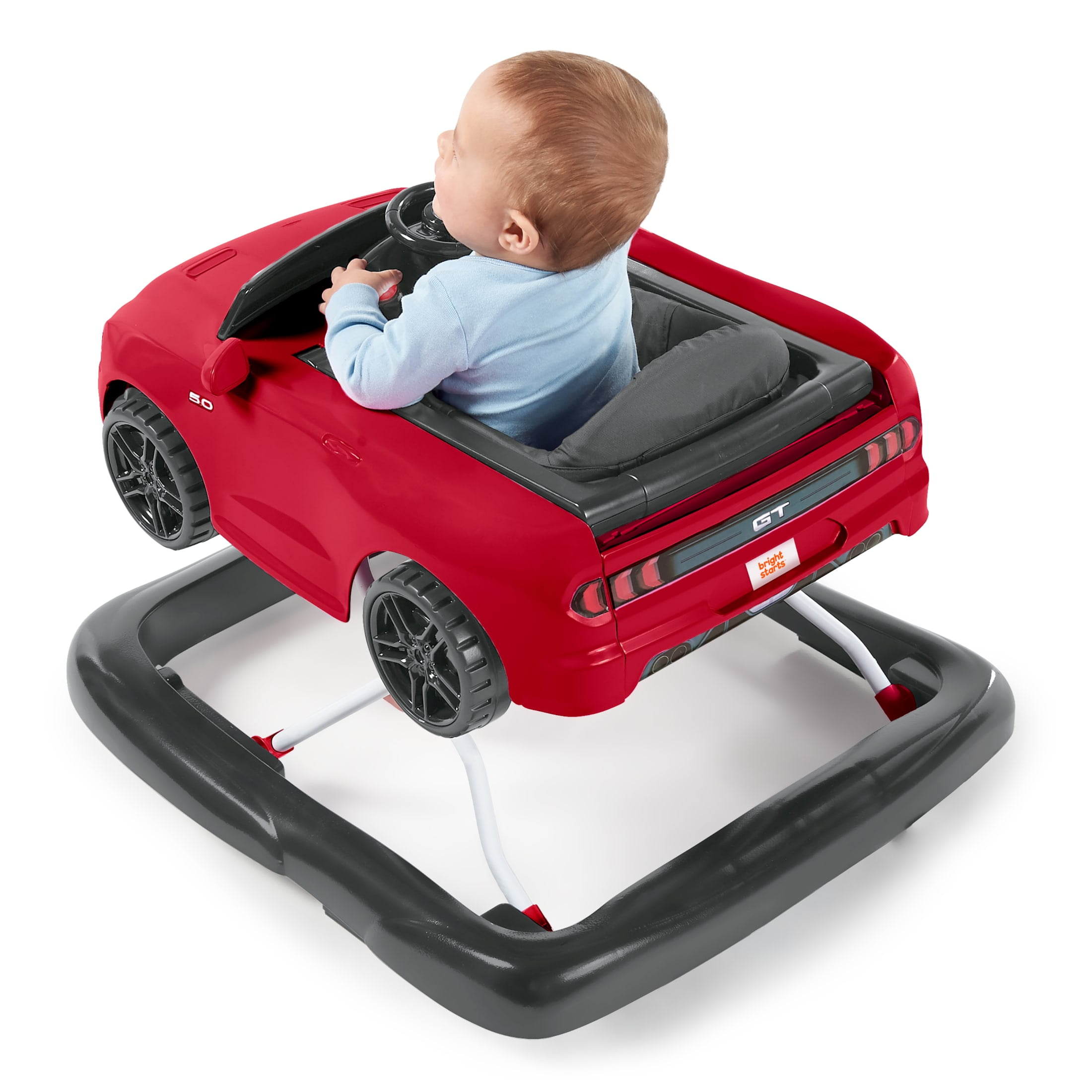 Three modes of play allow this lifelike Ford Mustang Walker to grow with unisex infant baby Two can play at once with the normal walker mode and push behind mode Safety enhanced with rubber feet Imaginative play with removable steering wheel play station featuring authentic Ford Mustang sounds & lights This bright starts baby walker with wheels can be adjusted to three different height positions