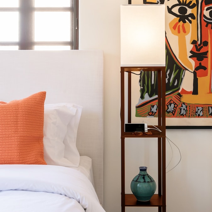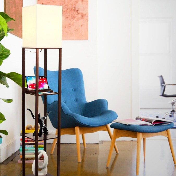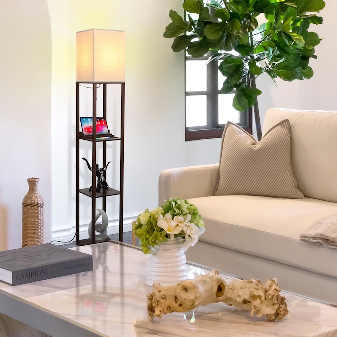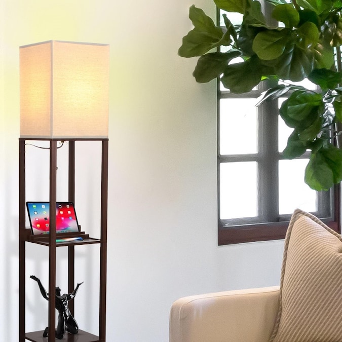 ALEXA, GOOGLE, APPLE AND SMART HOME COMPATIBLE LAMP CHARGES YOUR CELL PHONES AND LAPTOP VIA USB AND OUTLET – Turn your lamp on/off with Alexa or other smart devices. (Requires smart bulb and outlet sold separately.) 2 USB ports conveniently recharge your mobile devices including iPhones and Android devices. The shelf features a US electrical outlet to charge a laptop, tablet, iPad etc