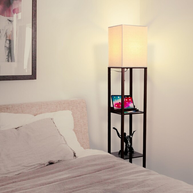 - TOWER FLOOR LAMP WITH BUILT-IN BOOKSHELVES MAKES A SPACE-SAVING SKINNY BEDSIDE TABLE OR NIGHTSTAND – Save bedroom floor space with this tall and narrow bedside table and lamp