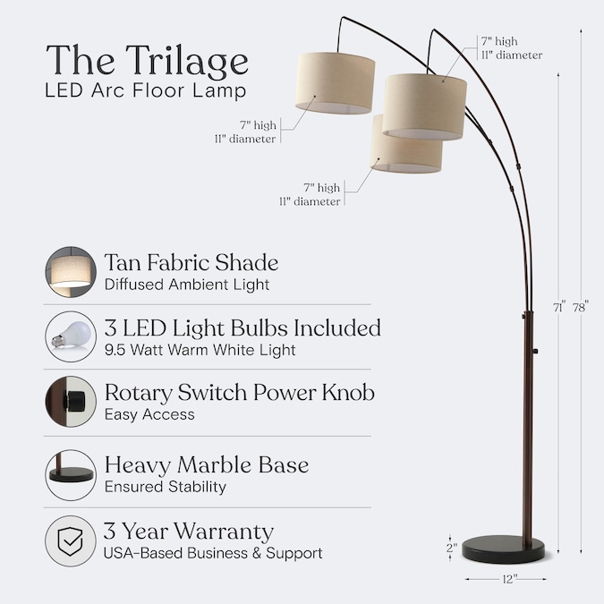 - This Lamp includes three 9.5 Watt (800 lumen) 3000K warm white LED bulbs rated to last 20 years without burning out, with average use