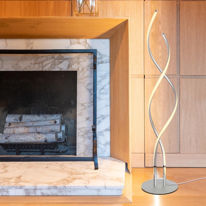 - CONTEMPORARY 2 IN 1 END TABLE LAMP AND FLOOR LAMP WITH BUILT IN DIMMER; Turn the Embrace into a cool side table lamp: unscrew the lights from the poles they stand on, and screw the lights directly to the base