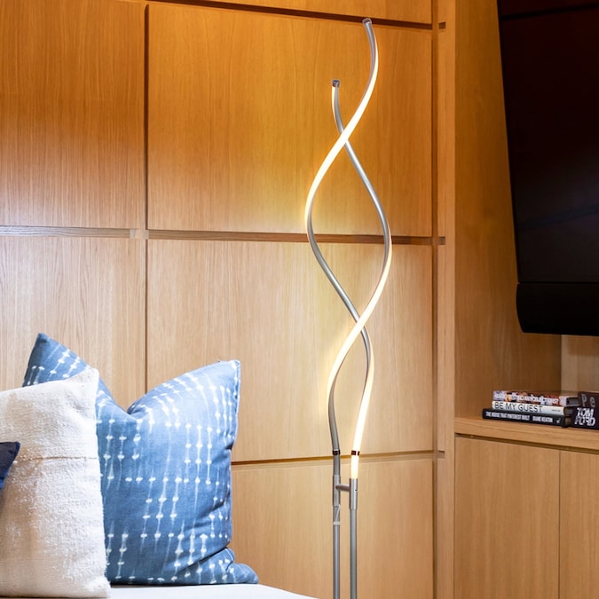 - The dimming function and versatile look allow this upright, free-standing lamp to fit beside a couch or next to a stately desk – it’ll feel equally at home in both settings