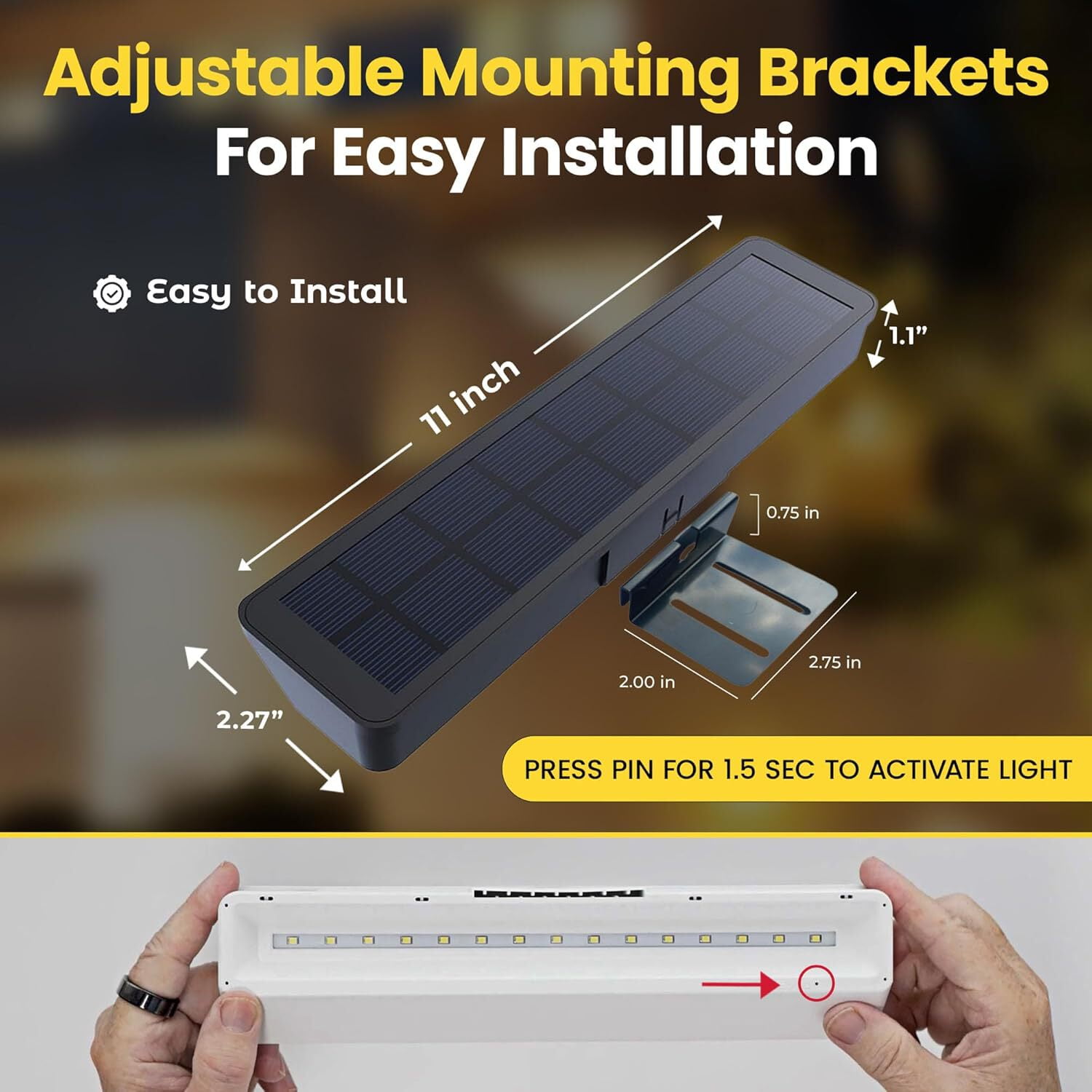 Ultra bright Solar Powered LED Lights with adjustable mounting brackets. Illuminates both sides of the sign to effectively double the amount of time your sign can be seen. Weather Resistant: Designed to withstand constant solar exposure and all temperatures. Dusk to Dawn: Automatically turns on at dusk and off at dawn, offering a maintenance-free solar-led outdoor sign lighting solution. Environmentally Friendly Lights Easy Installation: Includes 2 Rectangle White Lights with adjustable mounting brackets, along with all necessary hardware and instructions. Activate the light by pressing the button with the provided pin. Color Temperature: PURE WHITE