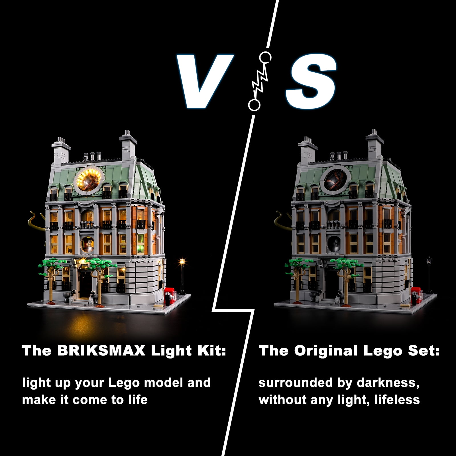 Great Compatibility: This Led lighting kit is specially designed for Lego Sanctum Sanctorum 76218 building kit model. All LEDs have a uniform light pattern and the cable connectors fit nicely together Challenging DIY Fun: BRIKSMAX provides a very surprising and challenging DIY lighting kit for model-making fans. Just light up your favorite Lego Sanctum Sanctorum Easy Installation: Comes with colored instructions and installation video (scan QR code), it is easy to install the lighting kit to your building set. No electronics knowledge required Hidden Cables Design: Our cables and dot lights are small enough to be hidden between the building model without affecting the look of your Lego 76218 set Package Included: LED light kits, user instructions, battery box(Batteries Not Included) and USB connector, all packed in a new original box Lego toys for boys, Holiday gift, Home decoration, Last minute deal for days, Toys for kids adults
