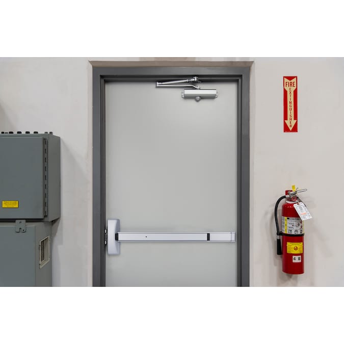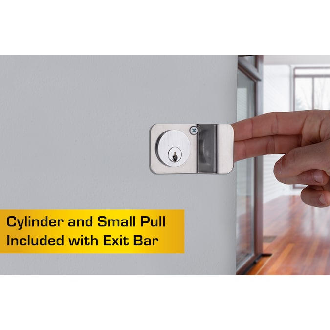 Brinks Commercial rim exit device with standard pull and cylinder is designed specifically for heavy use. It is versatile in its application as it can be installed in a multitude of ways and door facings. This exit device includes everything needed to install and use, including the rim cylinder and a small steel pull plate.