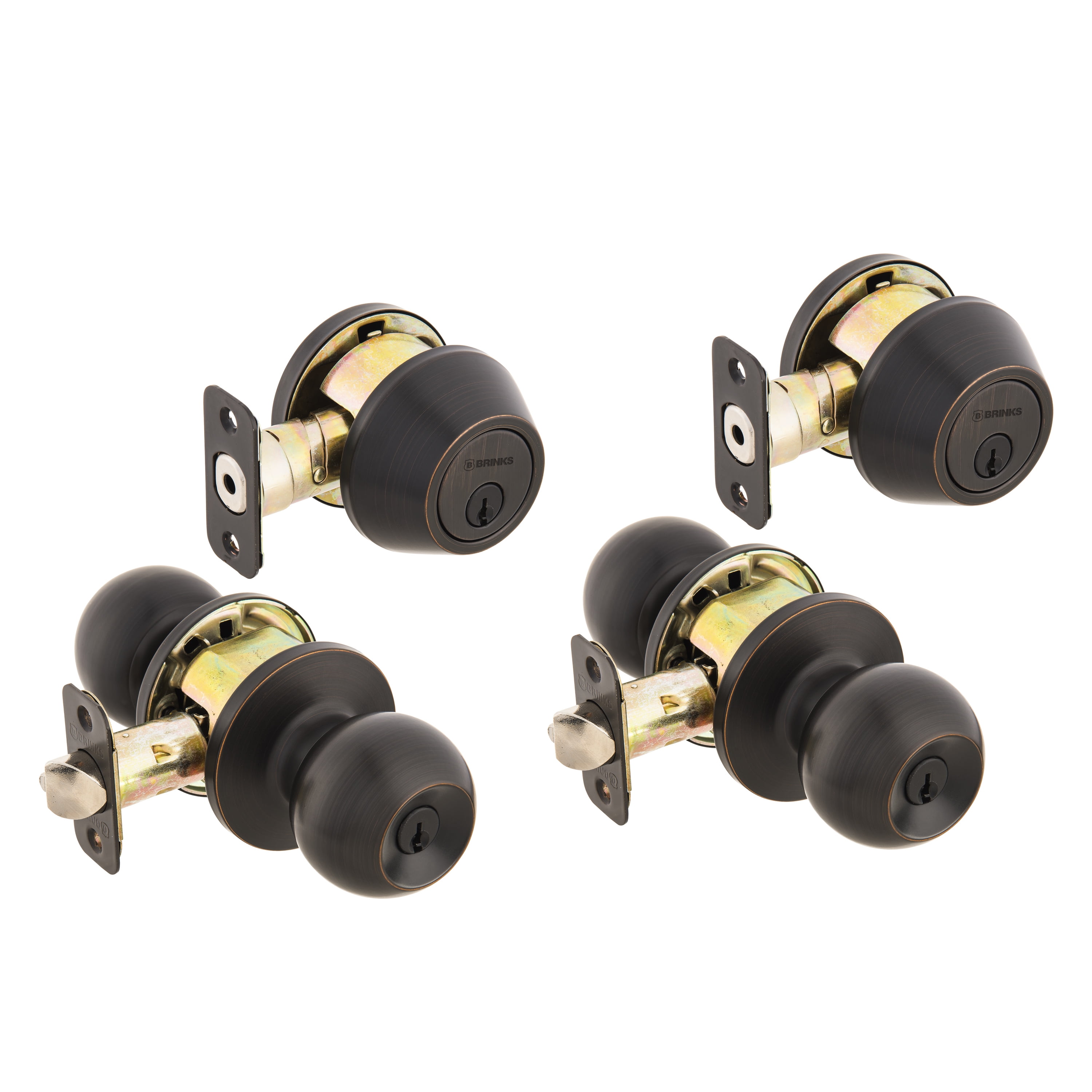 Brinks Keyed Entry Classic Ball Style Doorknob and Deadbolt Combo Twin pack, Tuscan Bronze Finish