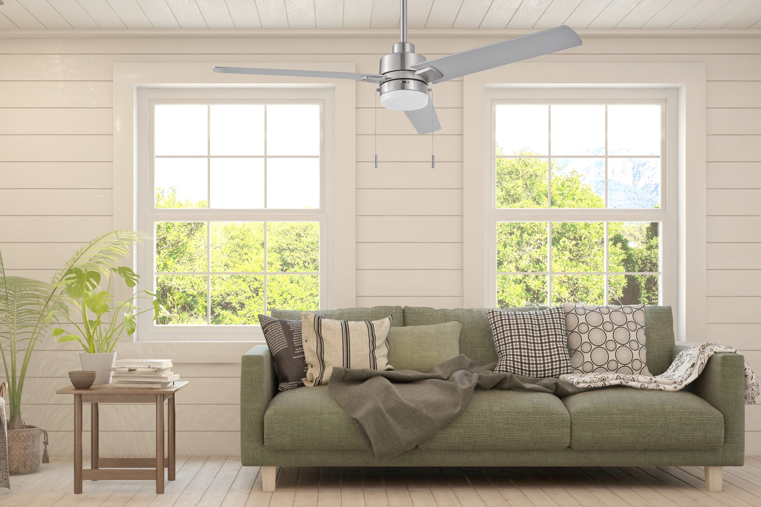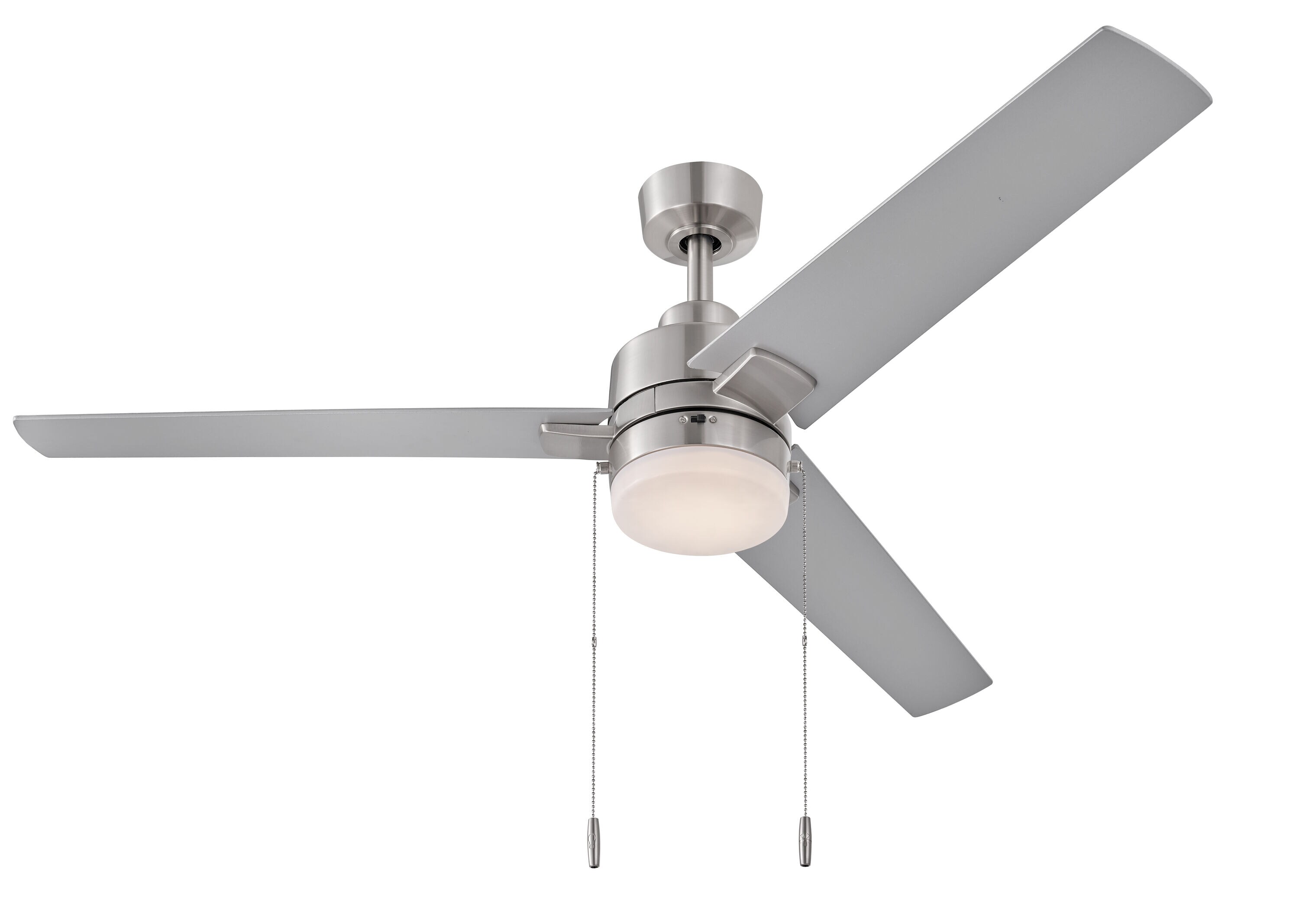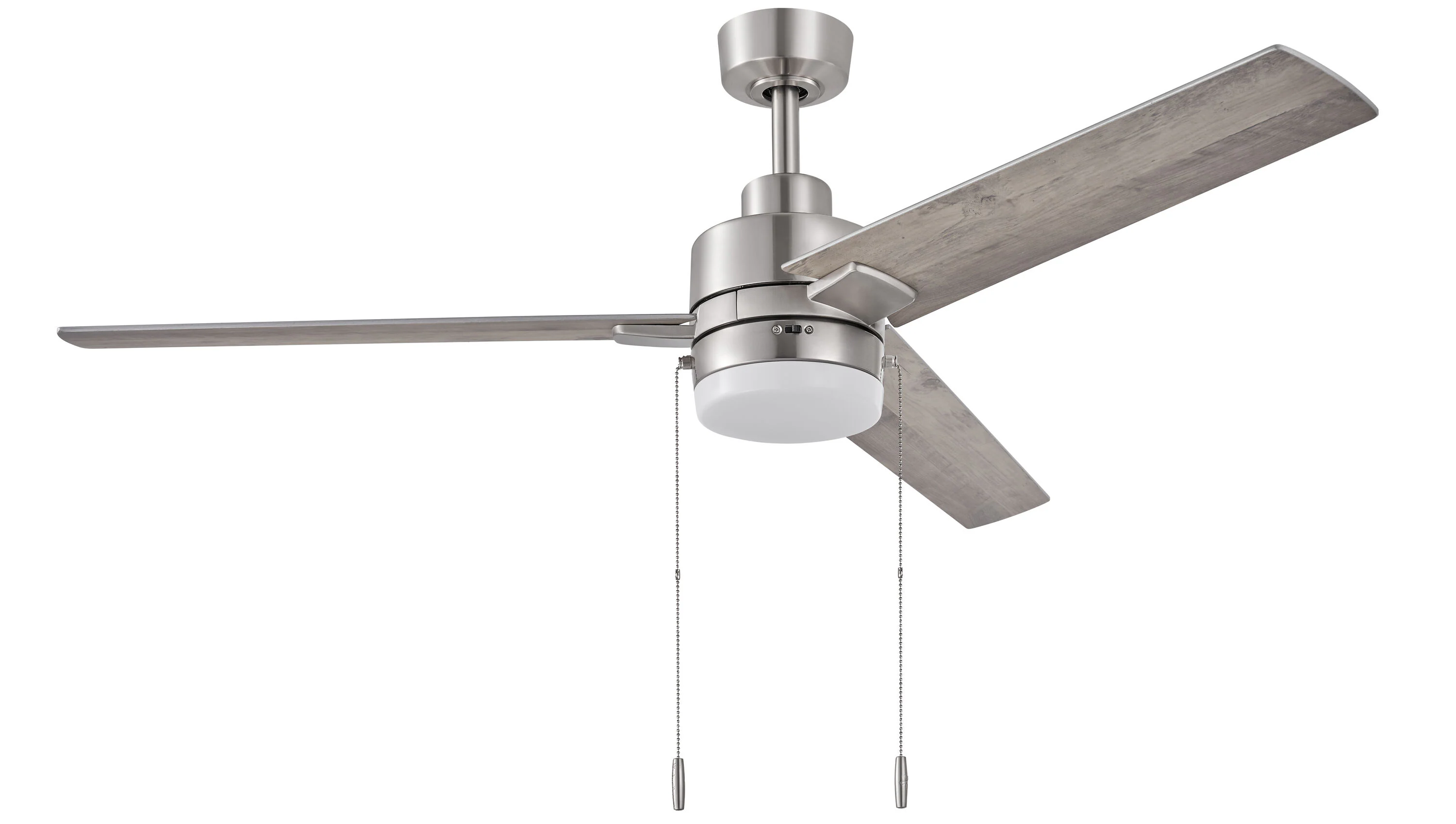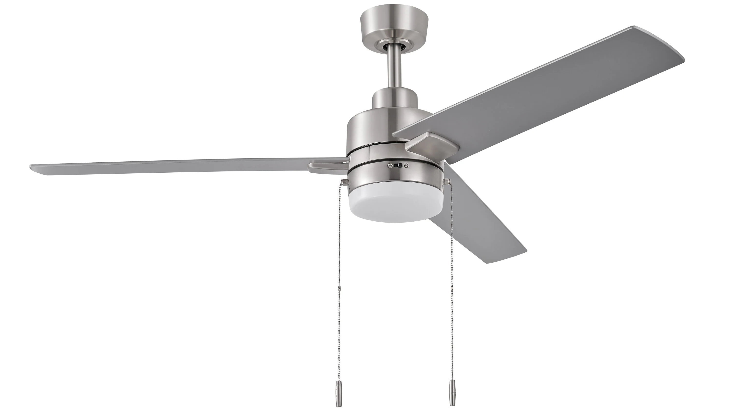 The Harbor Breeze Brinson is a 52-inch brushed nickel pull-chain ceiling fan with integrated LED light. The 3 reversible blades are designed with easy attach blades for simple installation. It’s the perfect size for any indoor room size up to 400-sqft. With its three-speed reversible motor, it will provide comforting air circulation year-round. Harbor Breeze ceiling fans provide style, function, and illumination to help make your house a home.