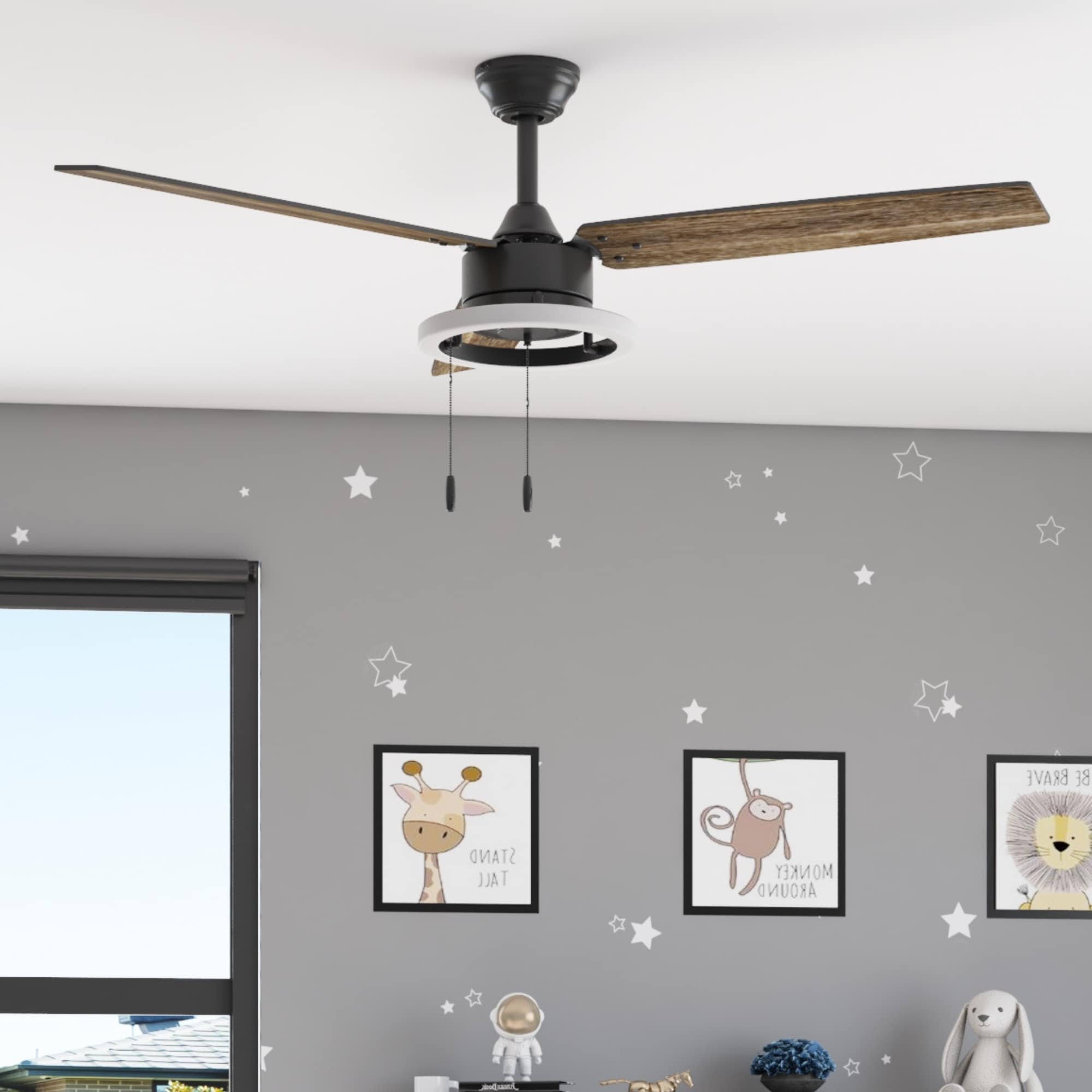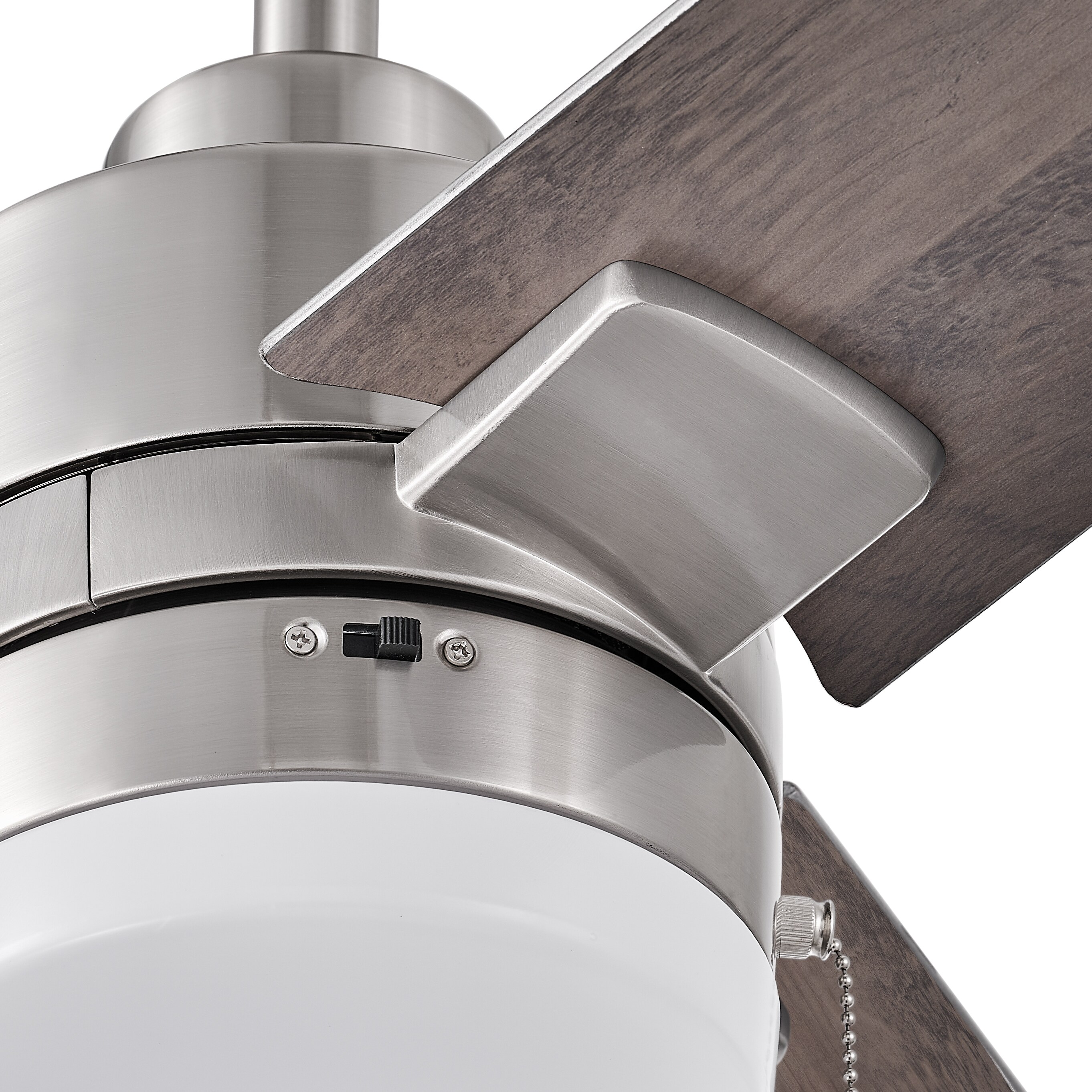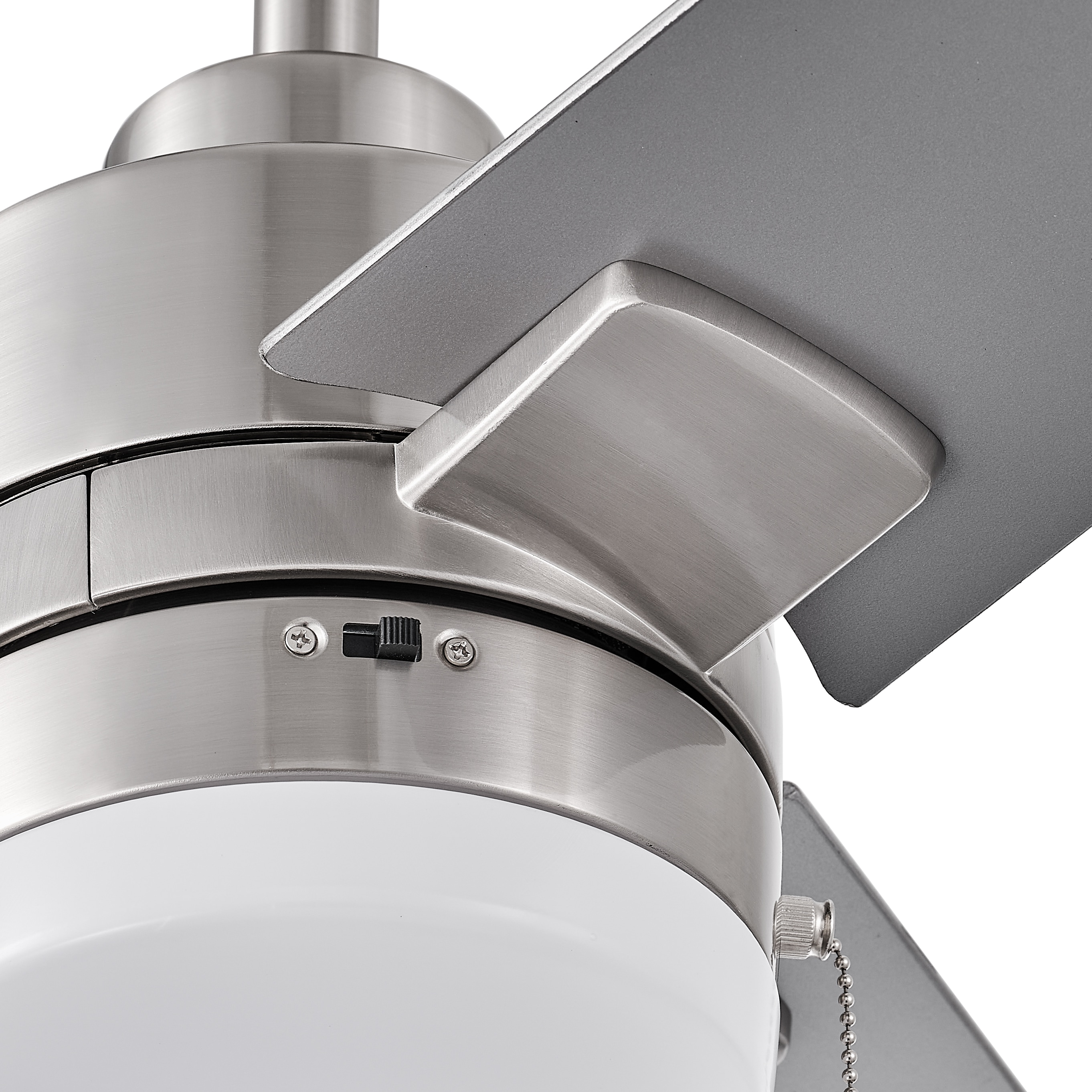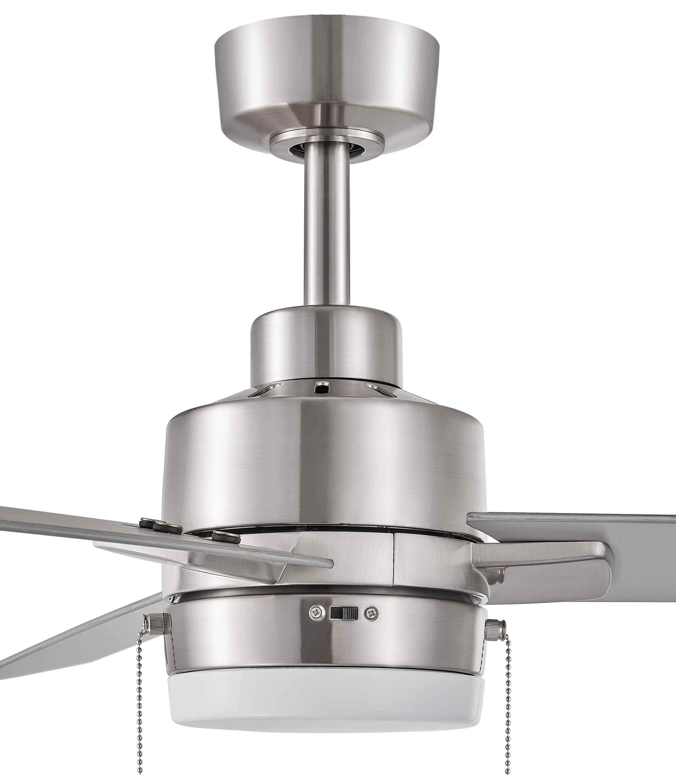 The Harbor Breeze Brinson is a 52-inch brushed nickel pull-chain ceiling fan with integrated LED light. The 3 reversible blades are designed with easy attach blades for simple installation. It’s the perfect size for any indoor room size up to 400-sqft. With its three-speed reversible motor, it will provide comforting air circulation year-round. Harbor Breeze ceiling fans provide style, function, and illumination to help make your house a home.