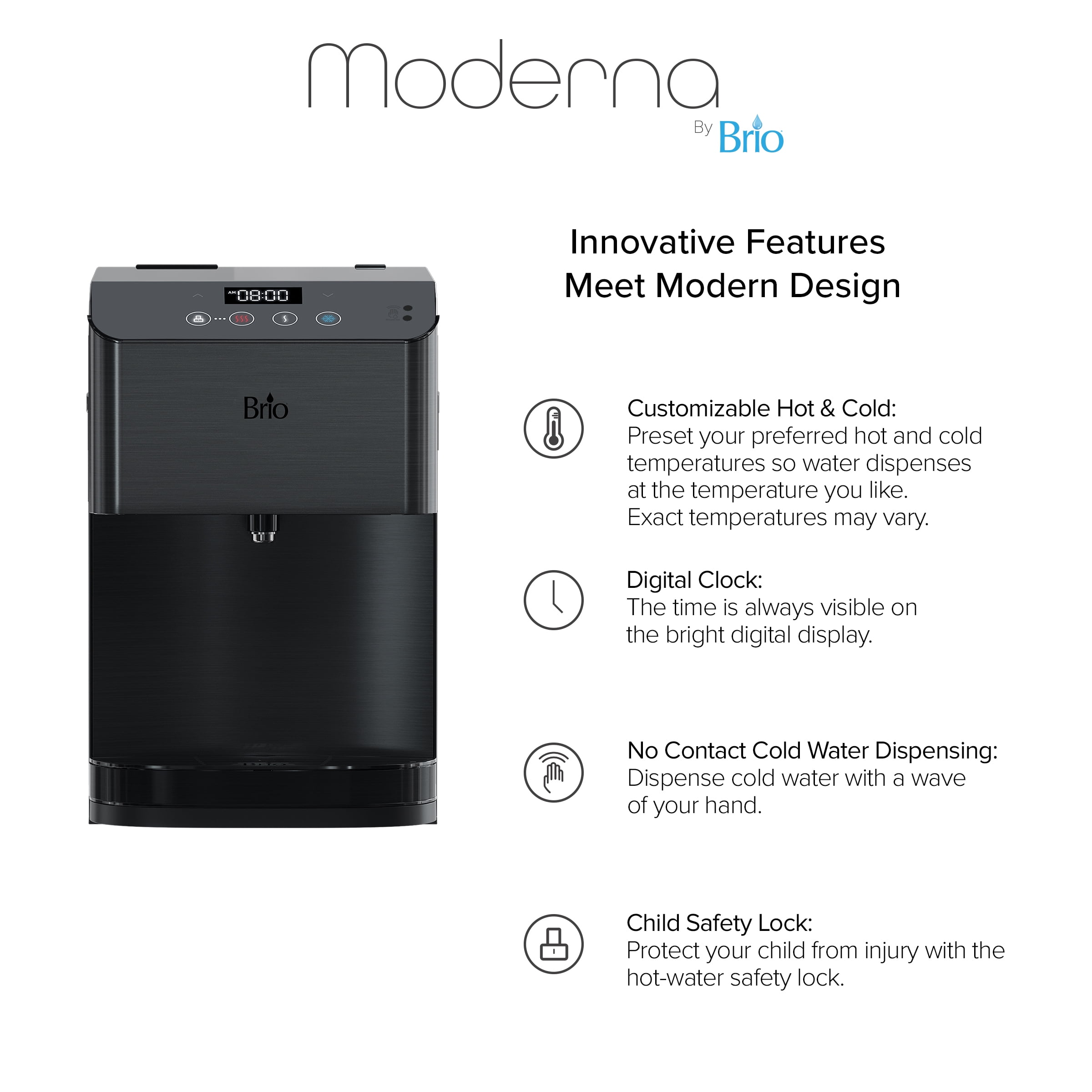Brio 700 Series Moderna Touchless 3-Stage Filtration Water Dispenser, Connects to your water line, Height 19.3″