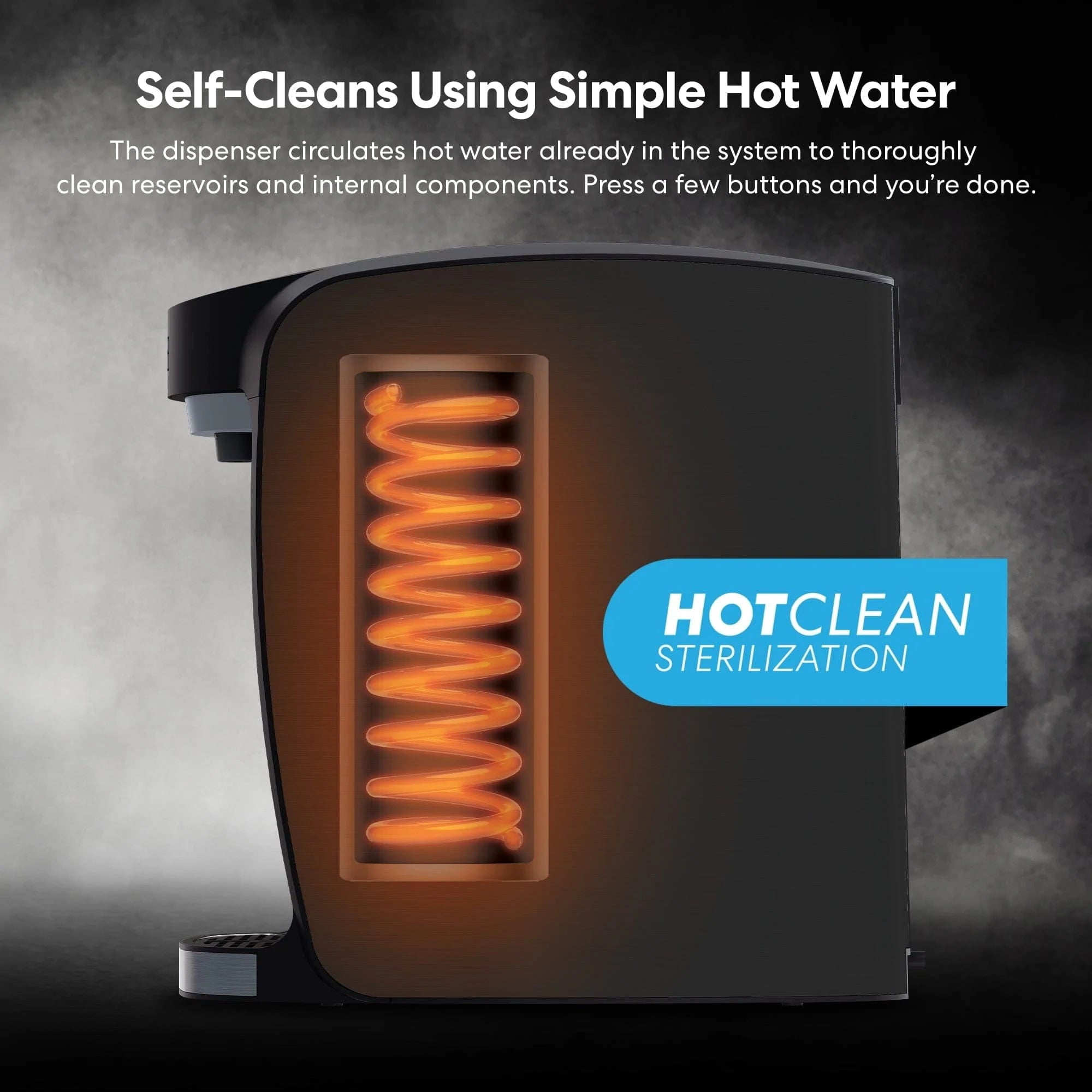 2-stage filtration: eliminates dust, particles, rust, undesirable tastes, odors, colors, and more Large dispense height: 11” height makes filling and refilling larger water bottles and pitchers easier than ever before Fast dispensing: equipped with a larger solenoid valve – fill bottles, cups, and pitchers 2x faster Hot clean: cooler circulates hot water to clean reservoirs and internals at the touch of a button Tri-temperature: dispenses hot, cold, or room temperature water on demand