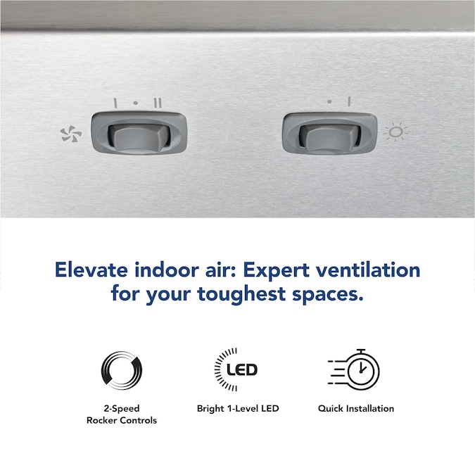 - Hidden on/off rocker switches control two blower speeds and one light level